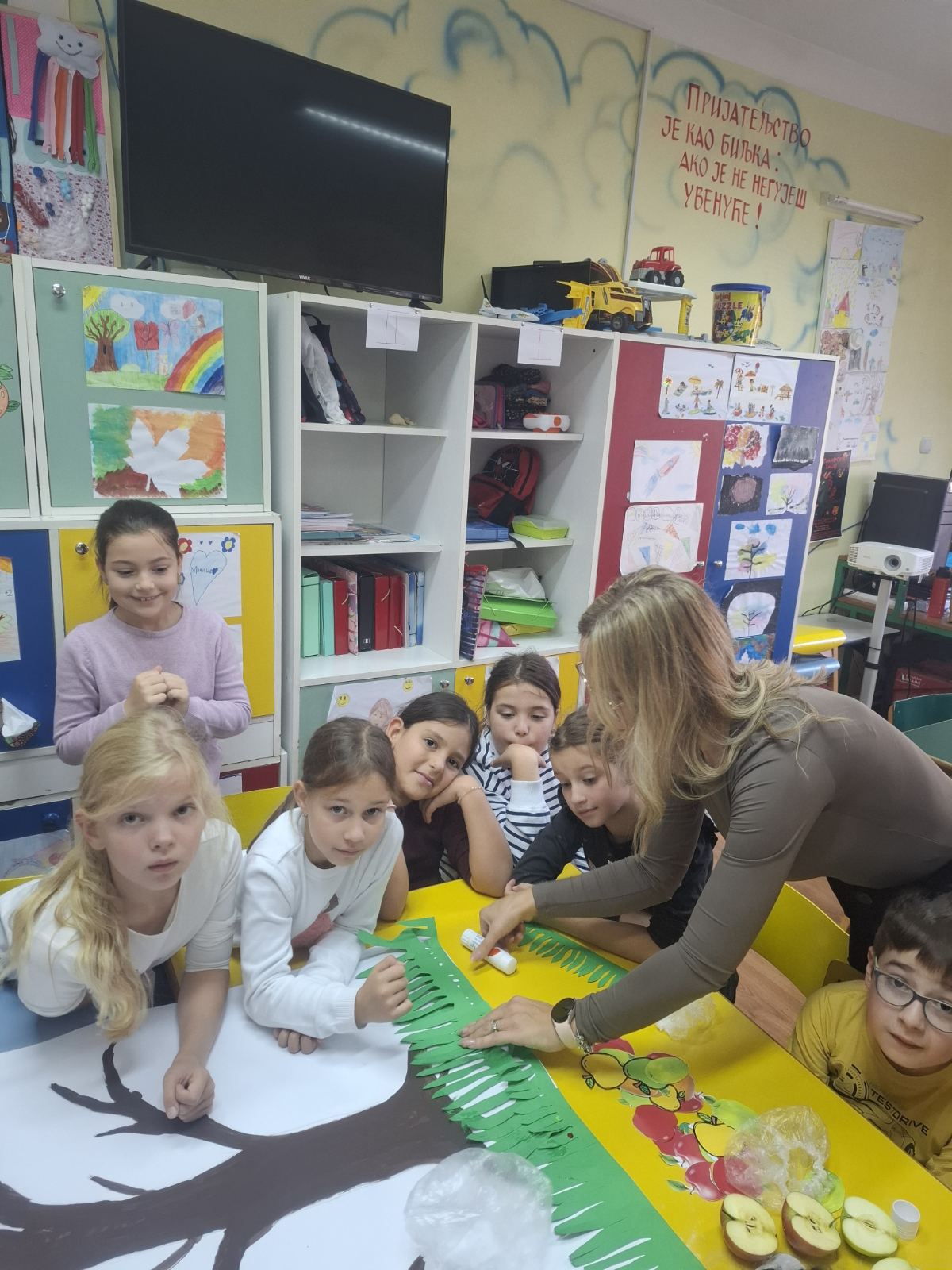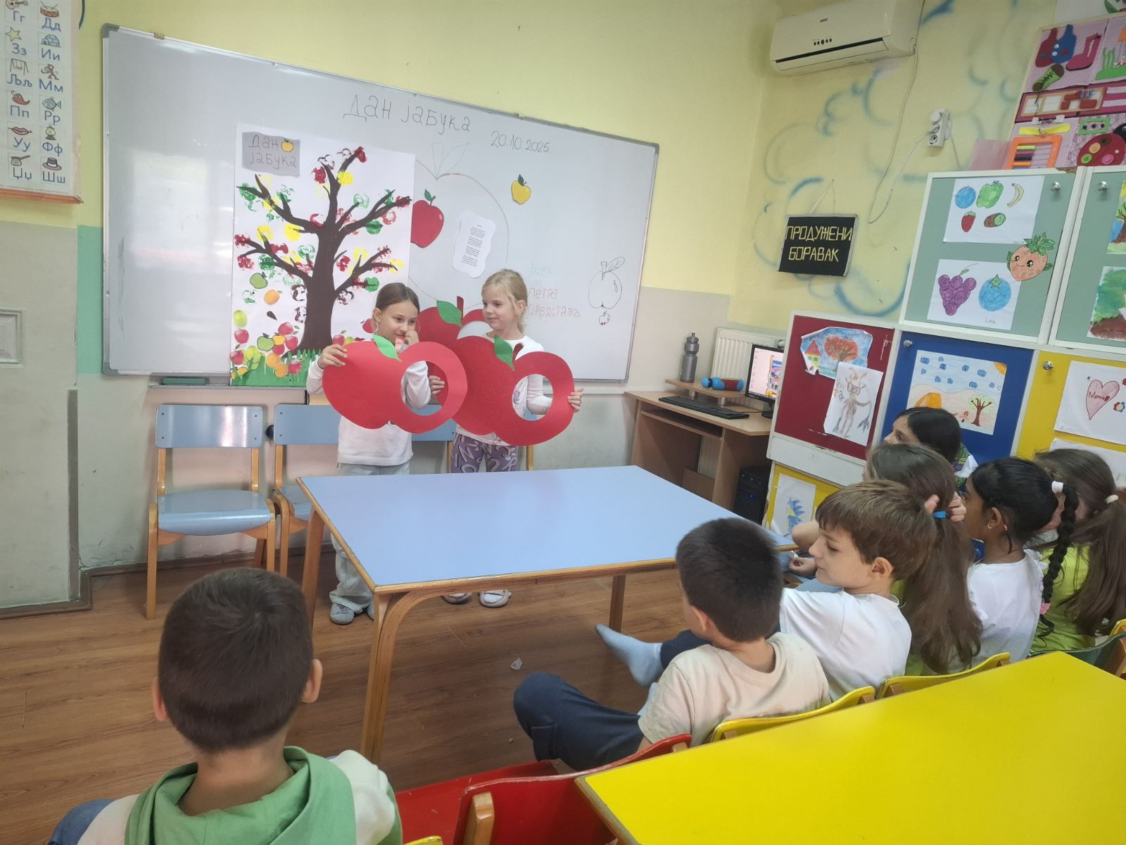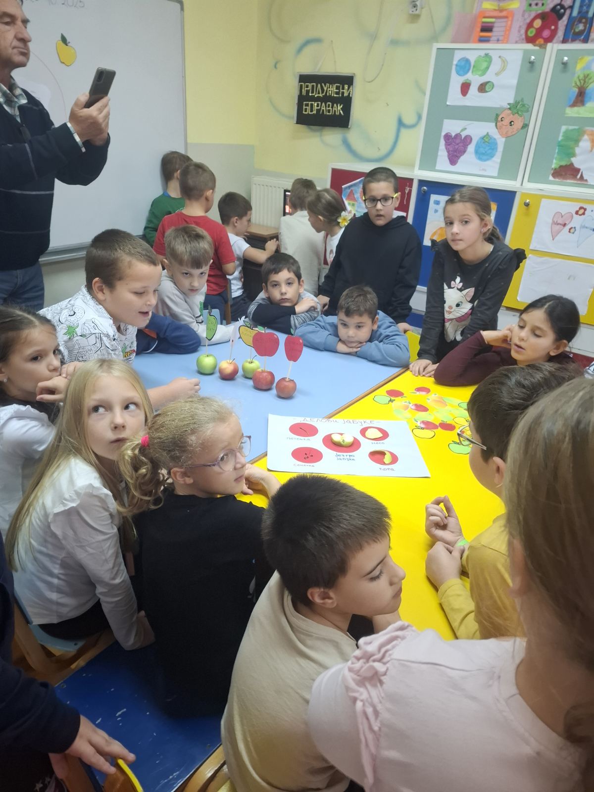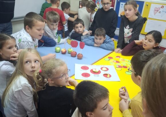 Данас смо у продуженом боравку обележили Дан јабука кроз креативне активности и заједничко дружење. Деца су правила отиске са јабукама и уживала у слатком изненађењу, лењој пити са јабукама, и свежим јабукама. Дан смо завршили представом коју су сами ученици осмислили, како би указали на значај јабука за здравље и свакодневицу.