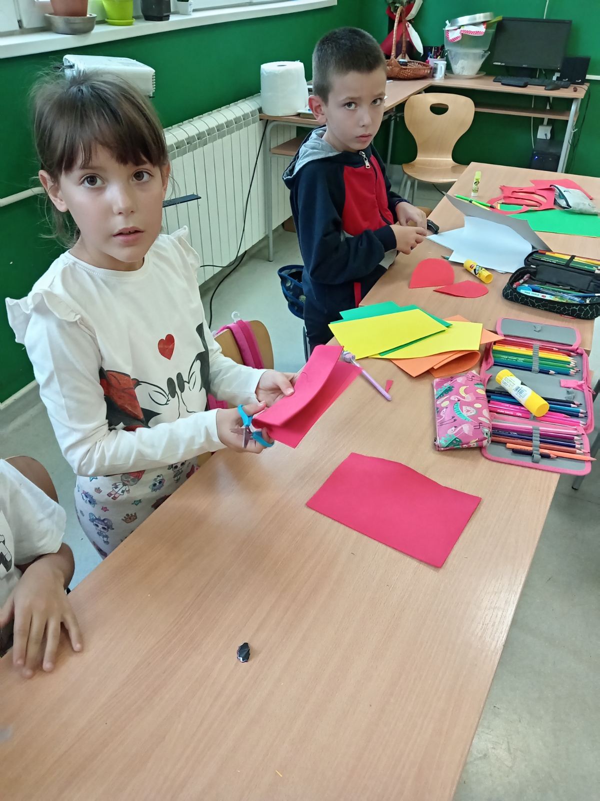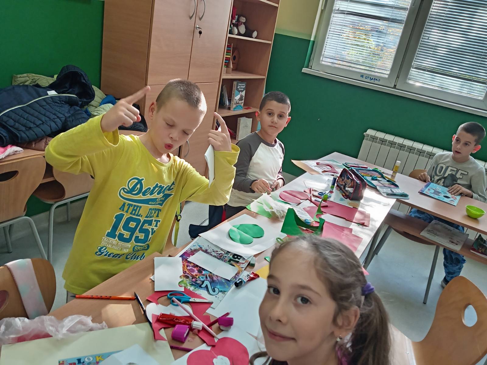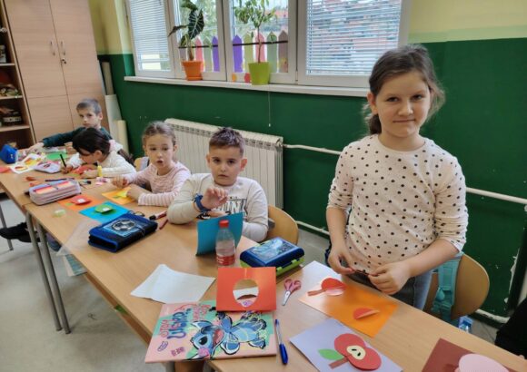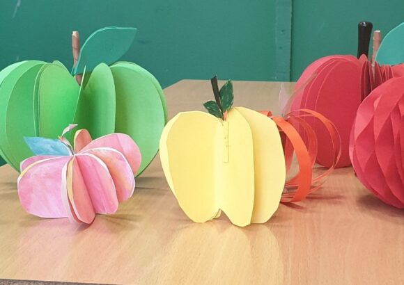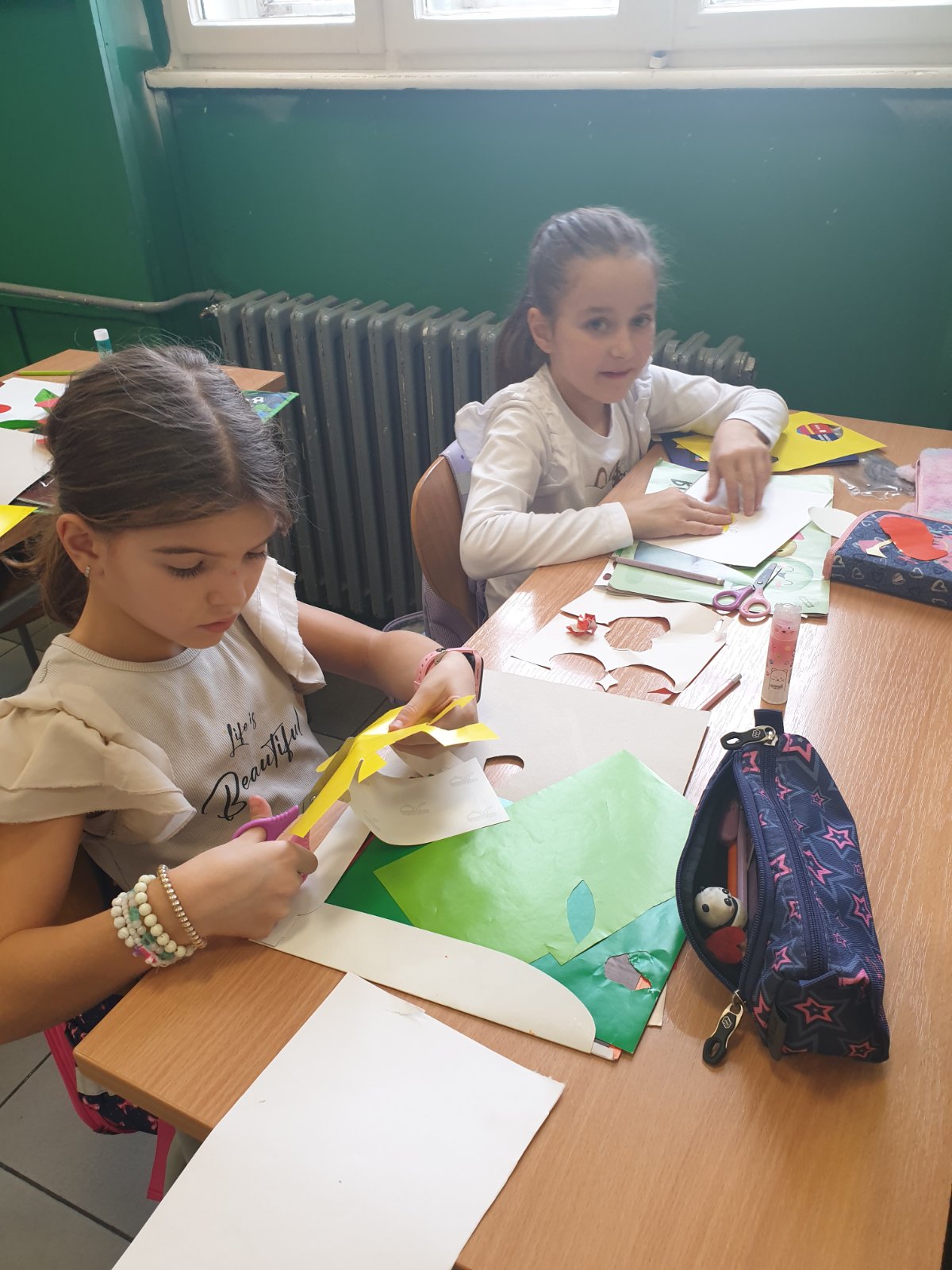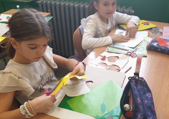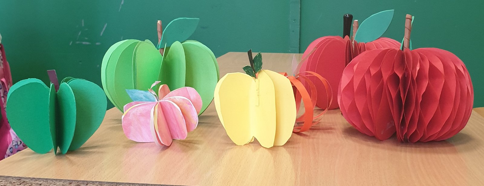 На часу ликовне културе, у петак, били су изузетно креативни,лепили,правили 3 Д јабуку и тако украсили паное у учионицама и ходнику.