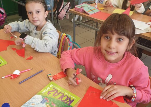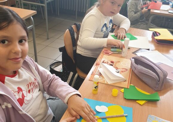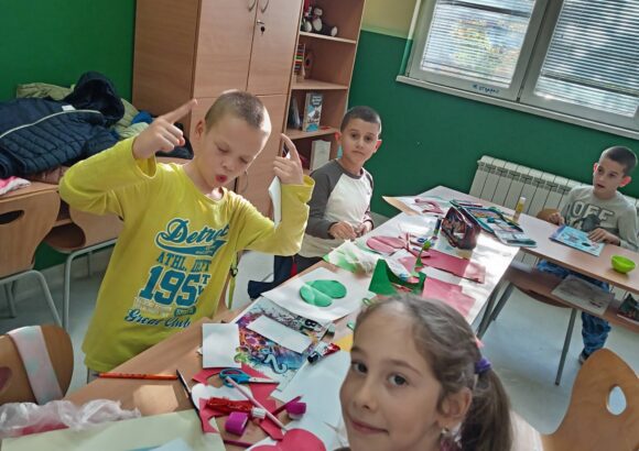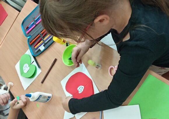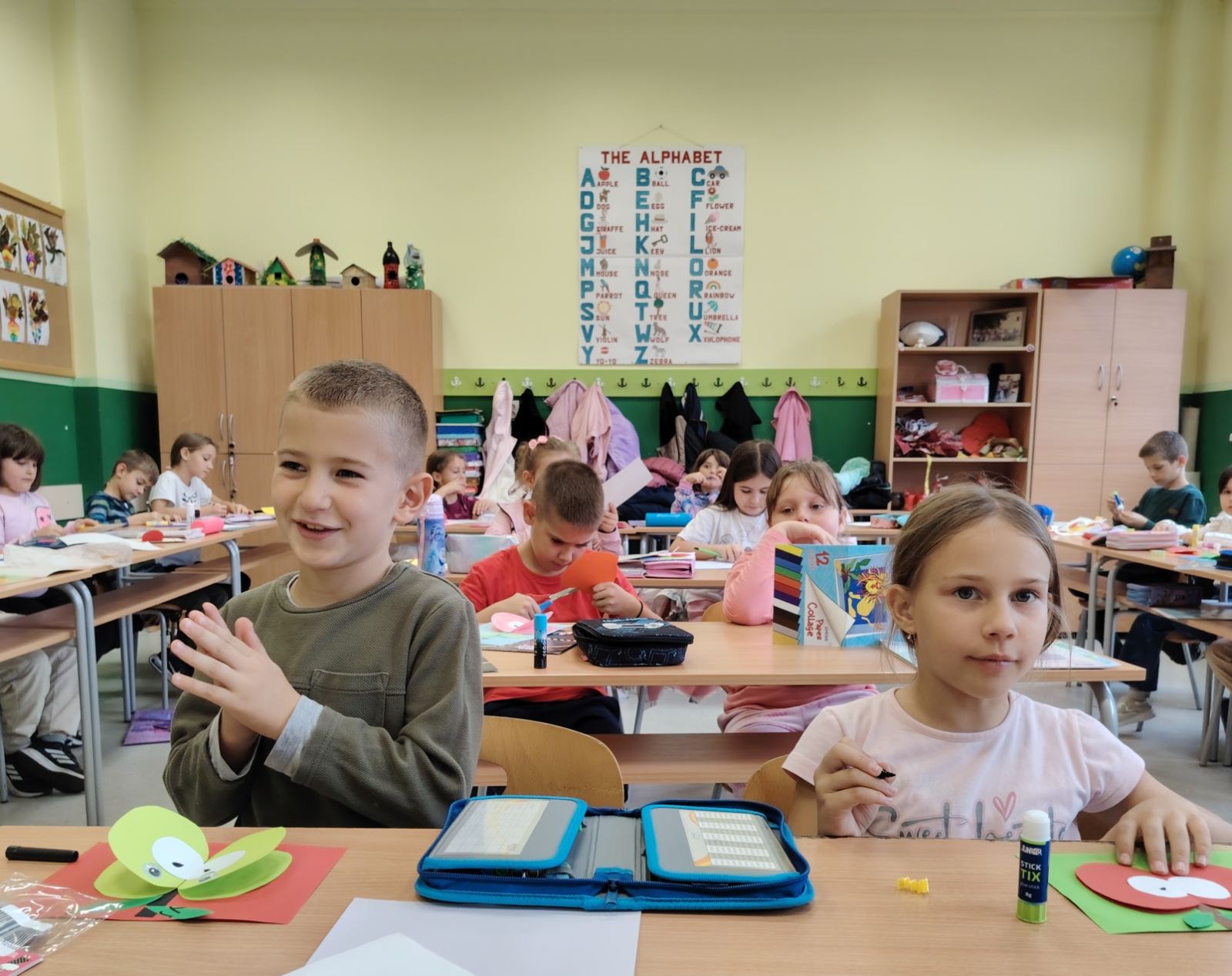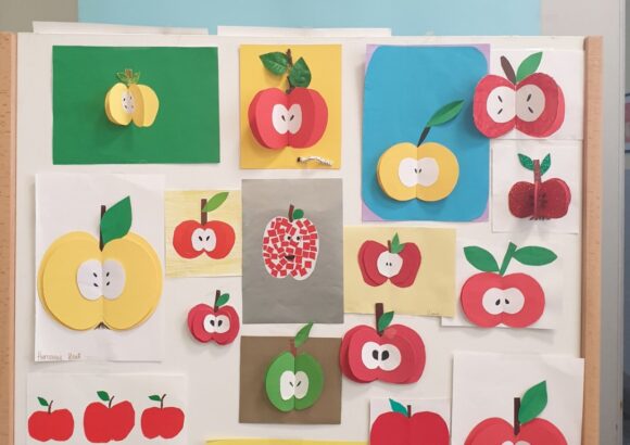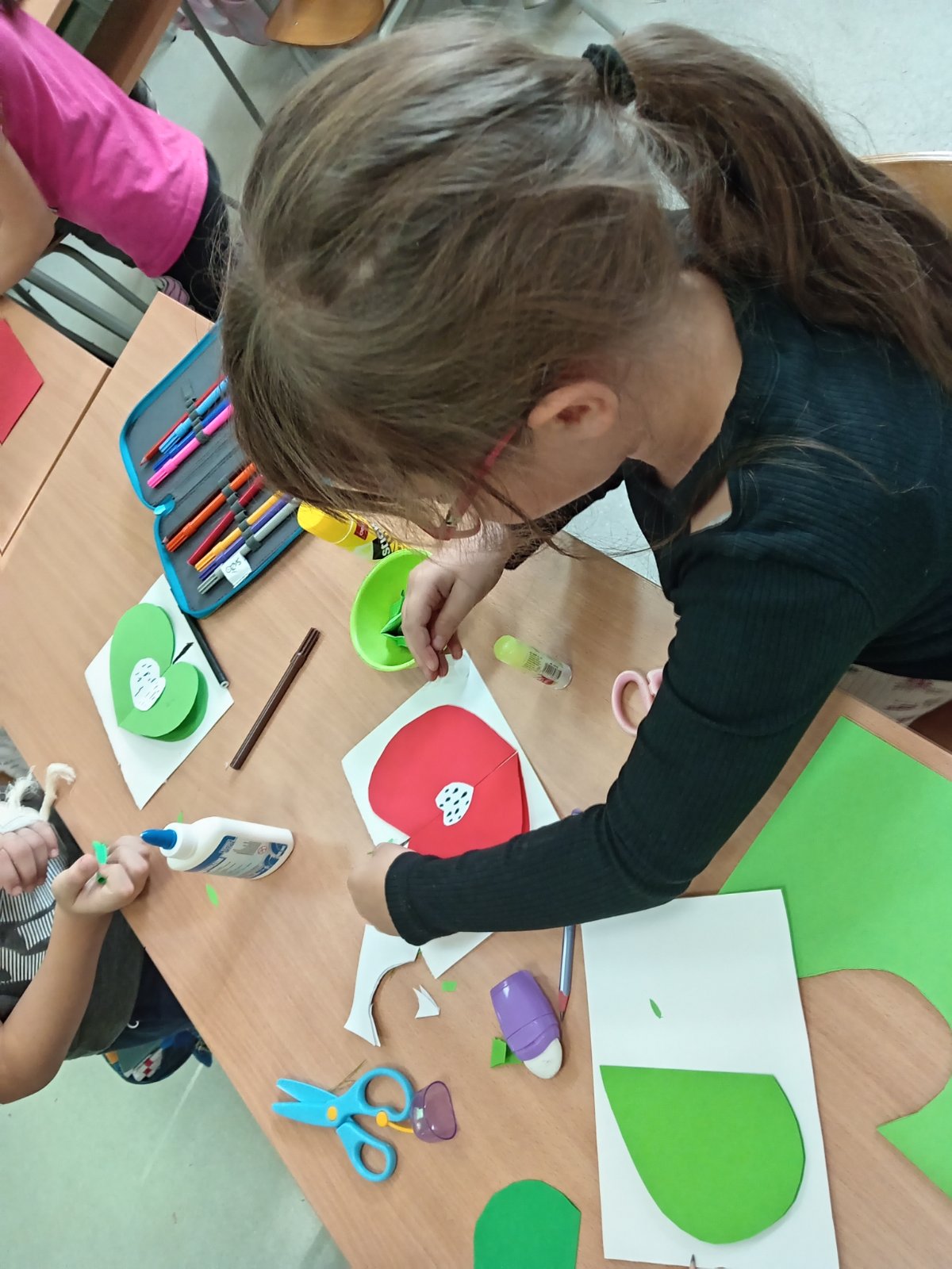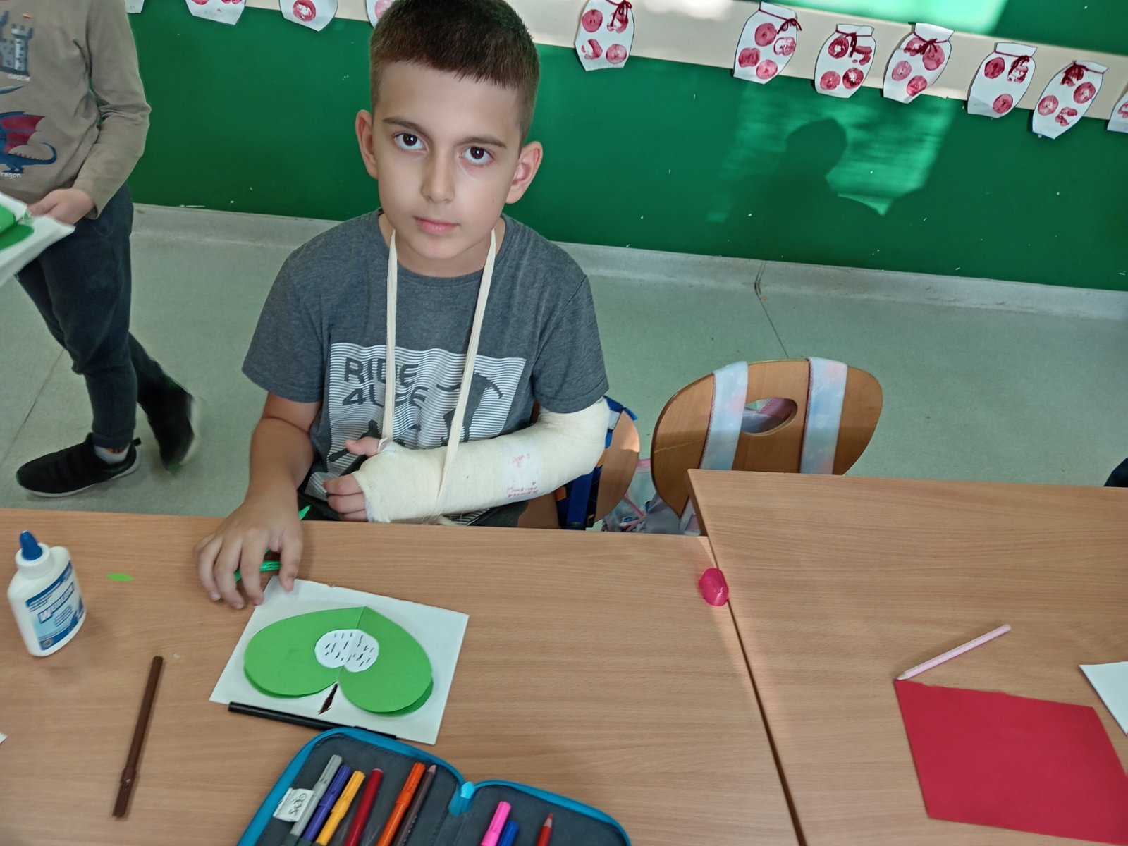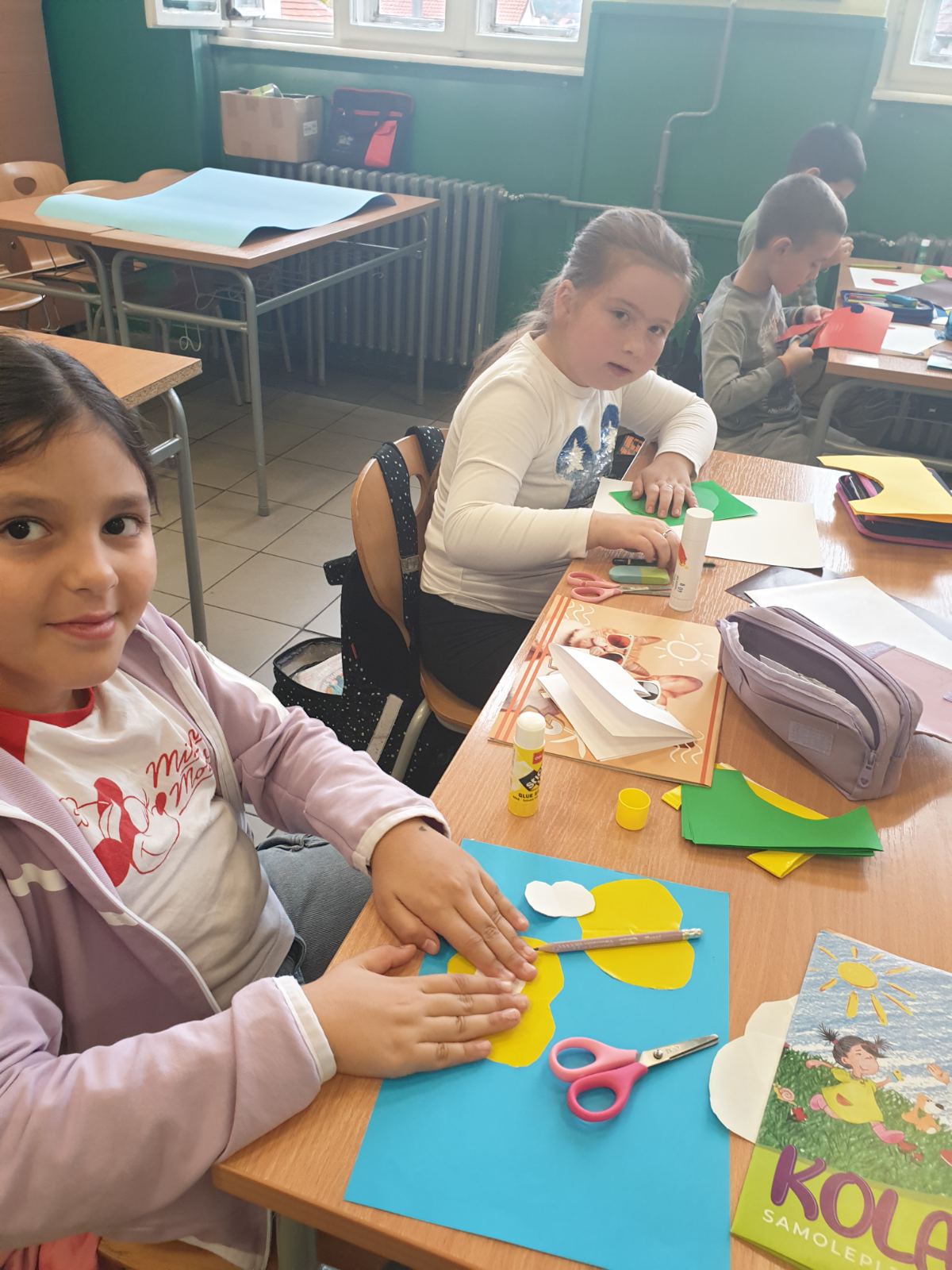 На часу ликовне културе, у петак, били су изузетно креативни,лепили,правили 3 Д јабуку и тако украсили паное у учионицама и ходнику.