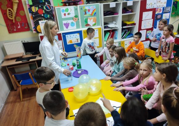 Данас смо у продуженом боравку обележили Дан науке. Активности су започеле презентацијом о науци и познатим научницима, уз разговор о томе како су њихова открића утицала на свет око нас.