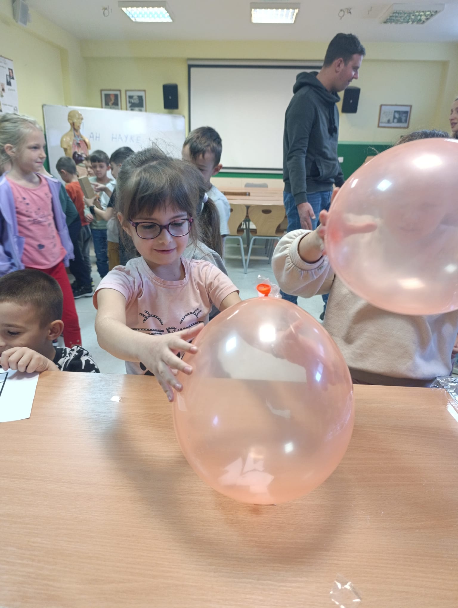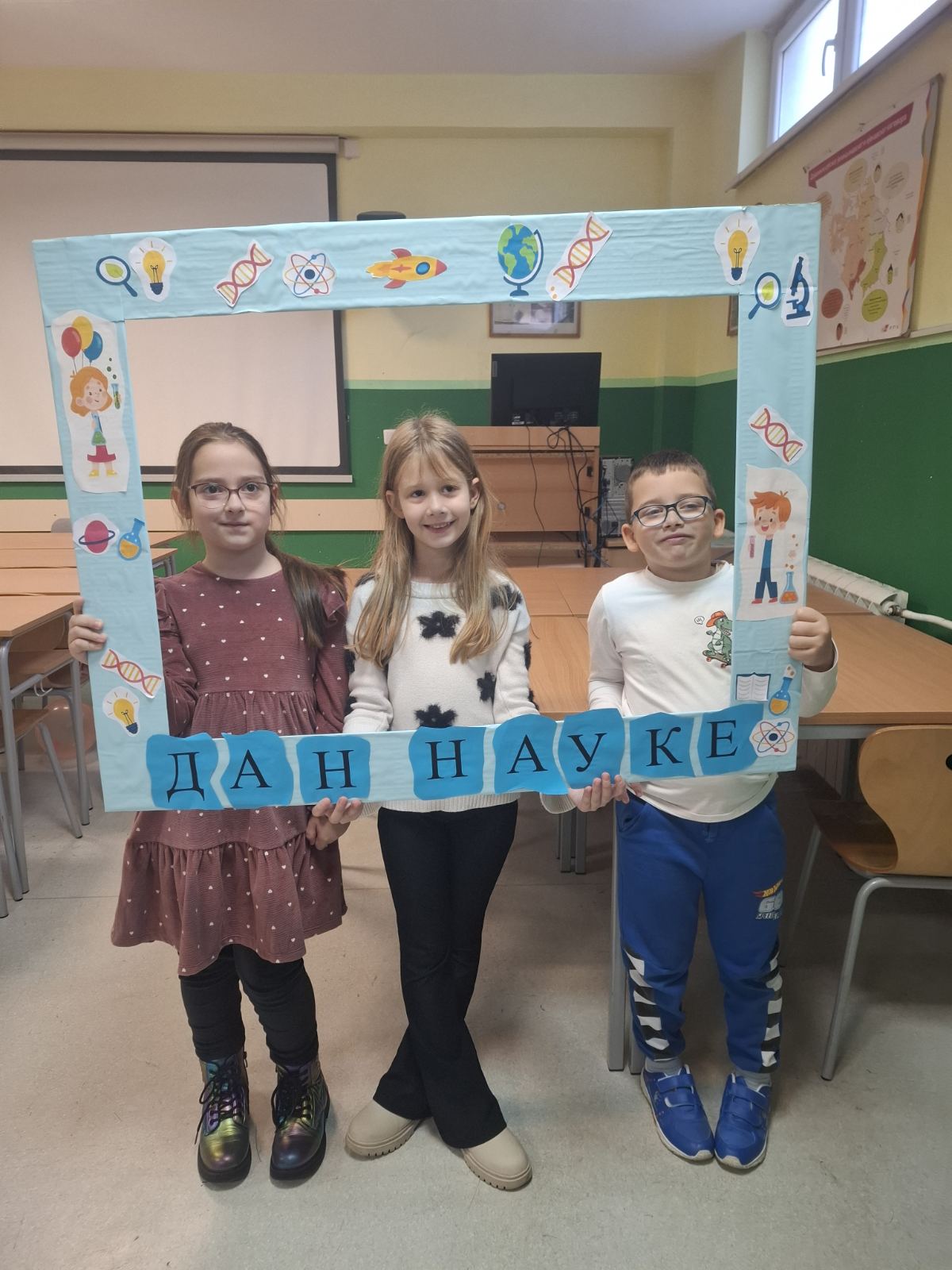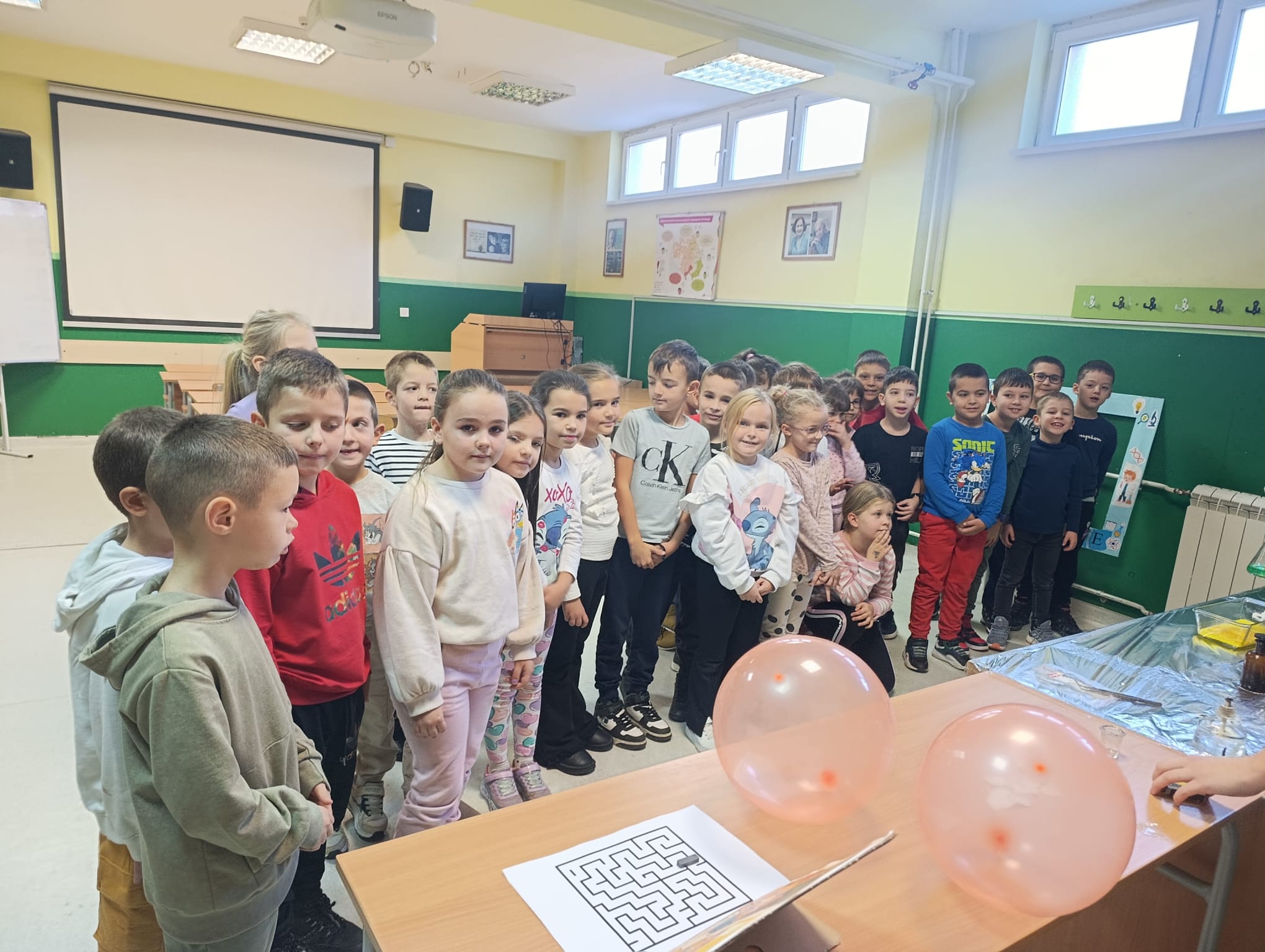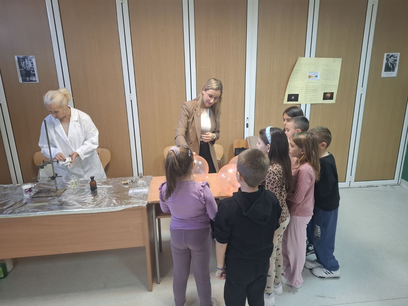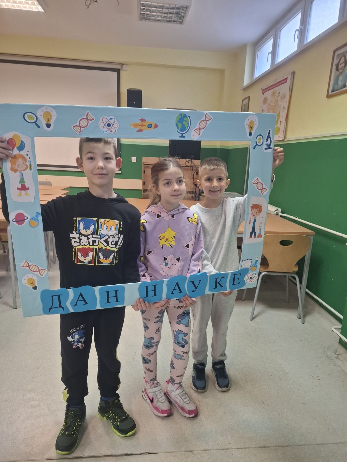 У нашој школи обележили смо Дан науке кроз занимљиве активности за све ученике. Са млађим разредима извођени су узбудљиви експерименти: палили смо магнезијум, правили слонову пасту, чаробно млеко, балон који се сам надувава, лаву у чаши, наелектрисали балоне и померали магнете кроз лавиринт. Деца су такође разгледала изложбу модела направљених од рециклираних материјала: ауто, анемометар, роботску руку, фиксни телефон од картона, као и клатно, перископ, микроскоп и анатомски модел људског тела. Уз велико стрпљење и ангажовање, ученици старијих разреда су демонстрирали рад инструмената и макета, одговарајући на питања млађих и подстичући њихову радозналост. Деца су показала велико интересовање и жељу за извођењем експеримената и разгледањем макета. Све је било забавно, поучно и подстицало дечју радозналост.