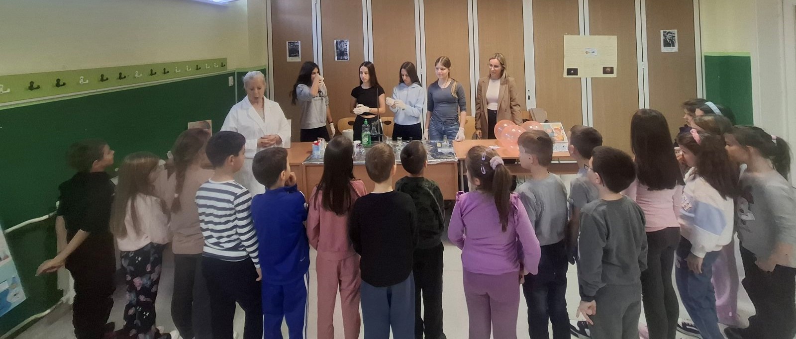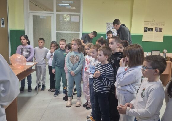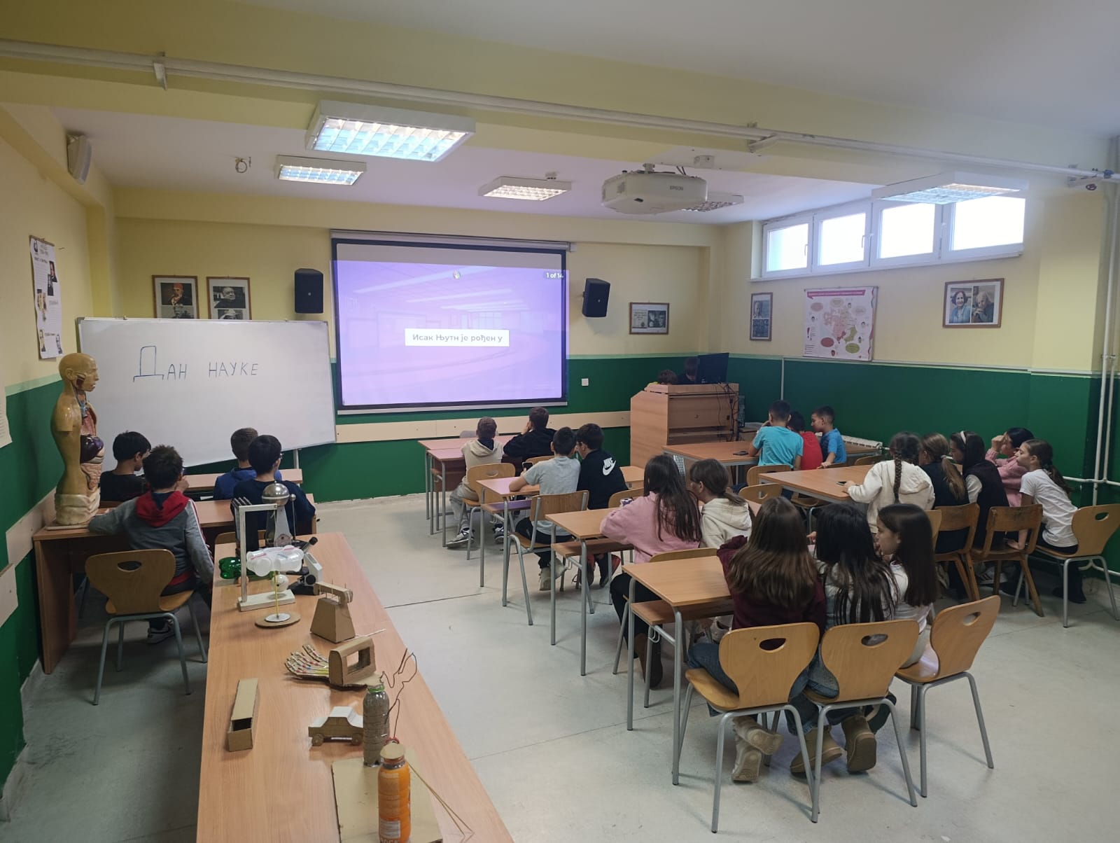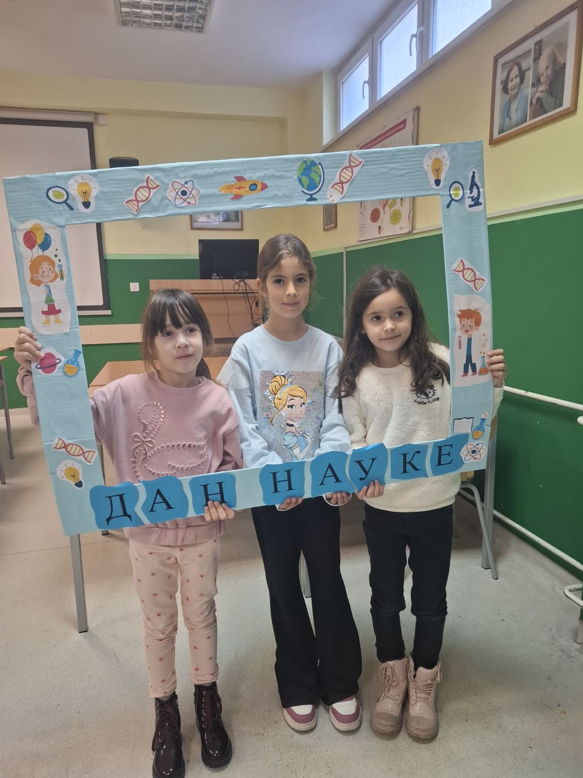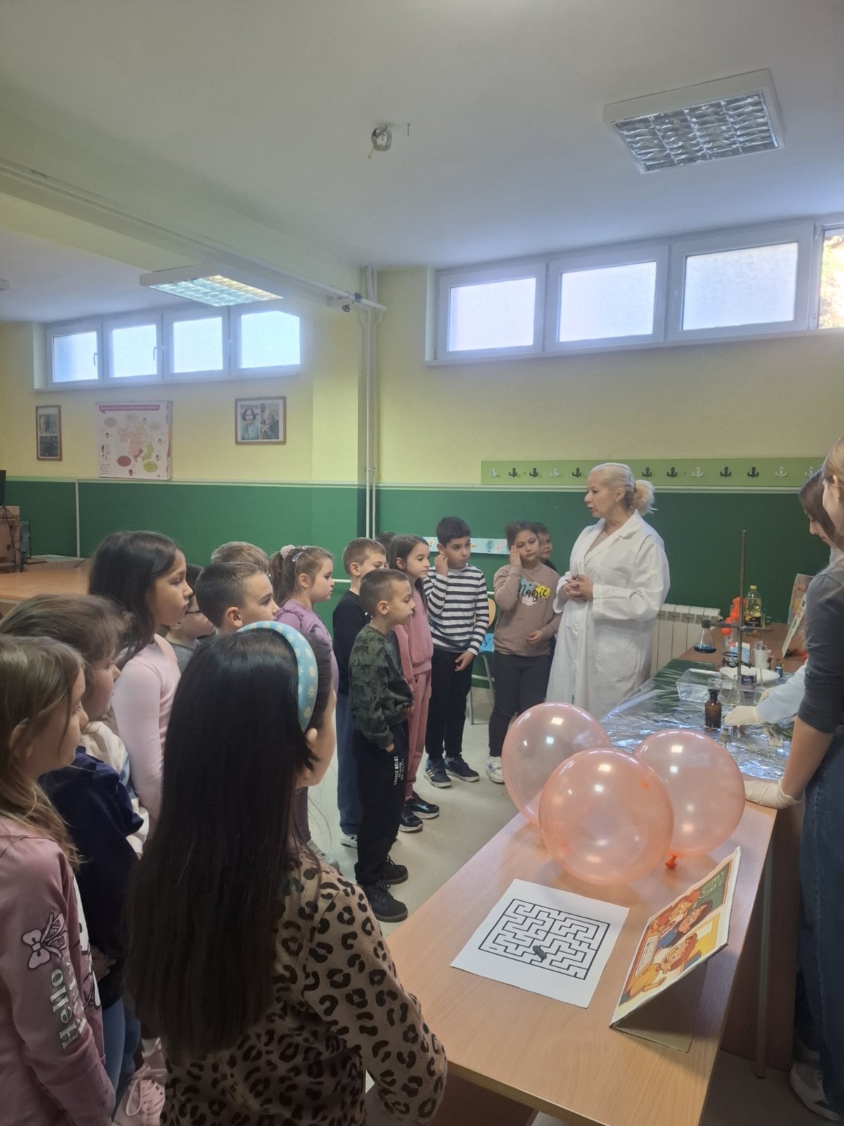 У нашој школи обележили смо Дан науке кроз занимљиве активности за све ученике. Са млађим разредима извођени су узбудљиви експерименти: палили смо магнезијум, правили слонову пасту, чаробно млеко, балон који се сам надувава, лаву у чаши, наелектрисали балоне и померали магнете кроз лавиринт. Деца су такође разгледала изложбу модела направљених од рециклираних материјала: ауто, анемометар, роботску руку, фиксни телефон од картона, као и клатно, перископ, микроскоп и анатомски модел људског тела. Уз велико стрпљење и ангажовање, ученици старијих разреда су демонстрирали рад инструмената и макета, одговарајући на питања млађих и подстичући њихову радозналост. Деца су показала велико интересовање и жељу за извођењем експеримената и разгледањем макета. Све је било забавно, поучно и подстицало дечју радозналост.
