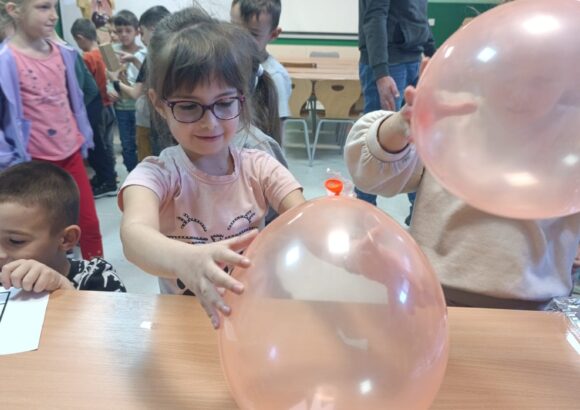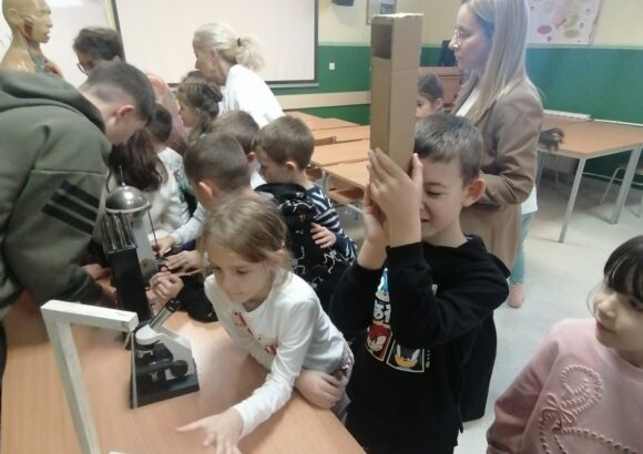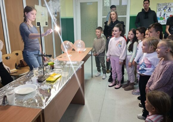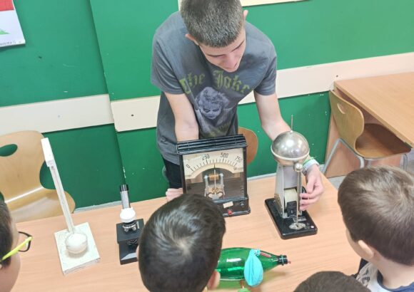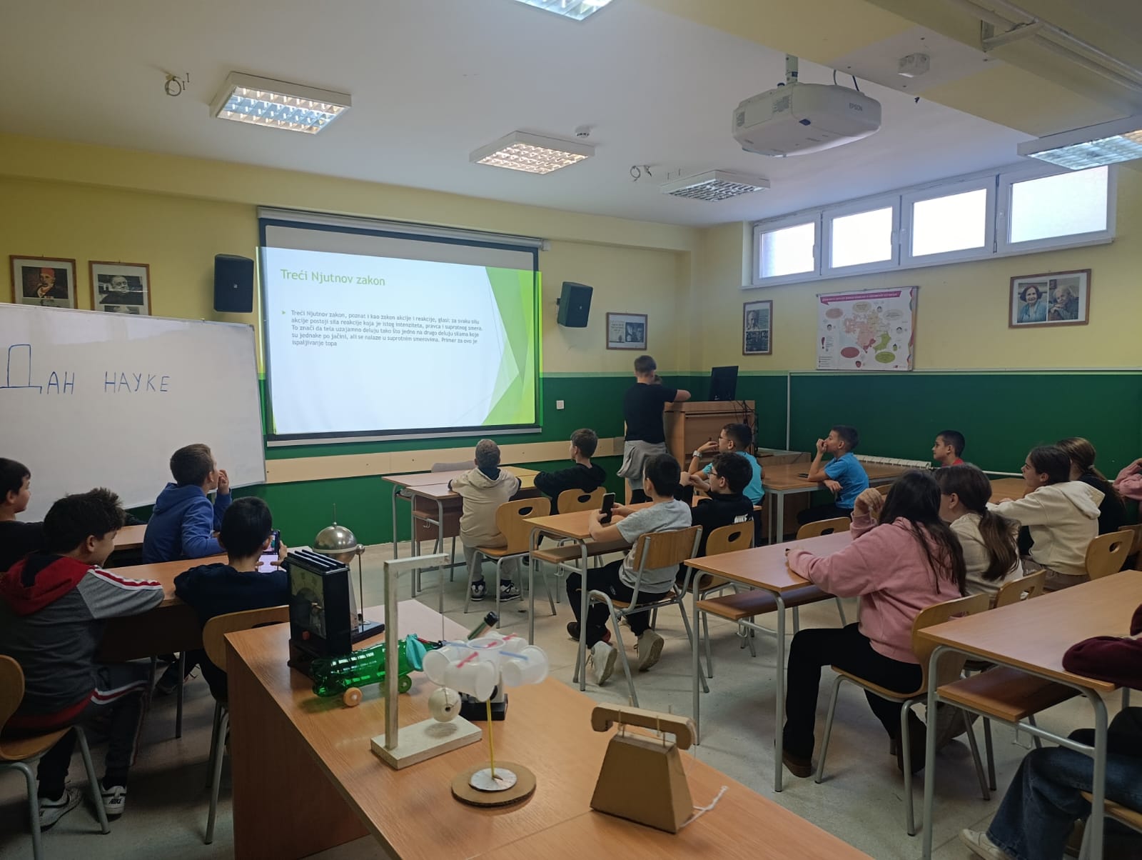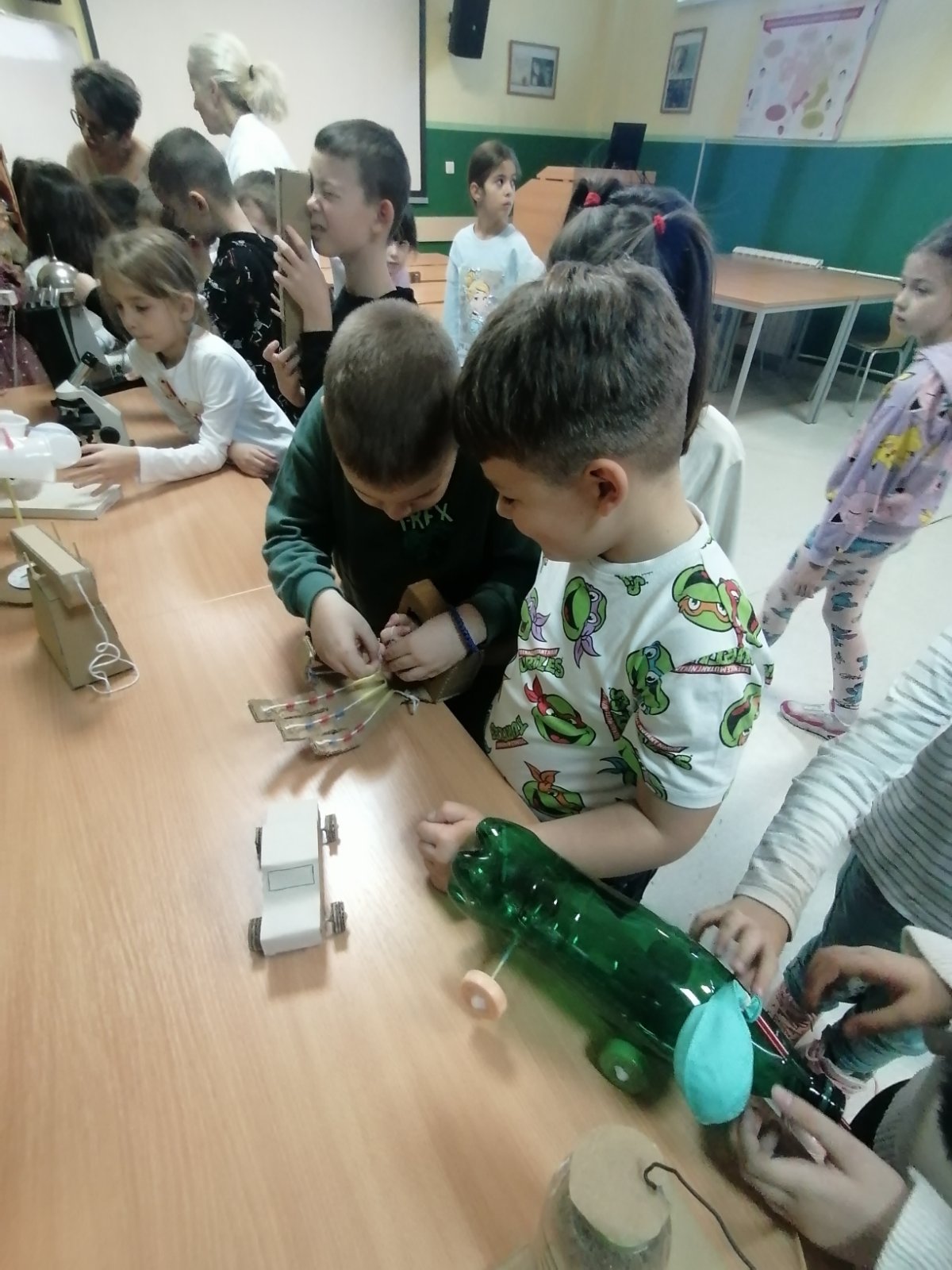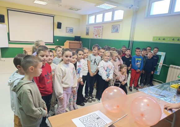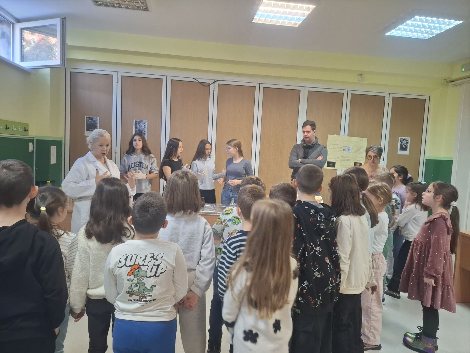 У нашој школи обележили смо Дан науке кроз занимљиве активности за све ученике. Са млађим разредима извођени су узбудљиви експерименти: палили смо магнезијум, правили слонову пасту, чаробно млеко, балон који се сам надувава, лаву у чаши, наелектрисали балоне и померали магнете кроз лавиринт. Деца су такође разгледала изложбу модела направљених од рециклираних материјала: ауто, анемометар, роботску руку, фиксни телефон од картона, као и клатно, перископ, микроскоп и анатомски модел људског тела. Уз велико стрпљење и ангажовање, ученици старијих разреда су демонстрирали рад инструмената и макета, одговарајући на питања млађих и подстичући њихову радозналост. Деца су показала велико интересовање и жељу за извођењем експеримената и разгледањем макета. Све је било забавно, поучно и подстицало дечју радозналост.