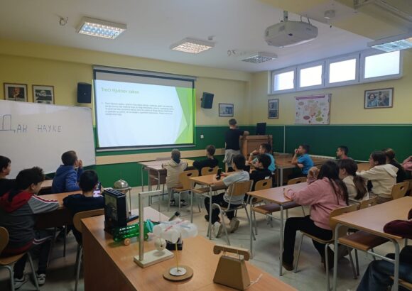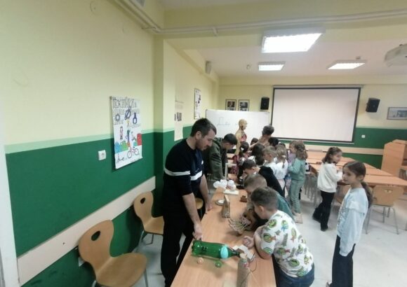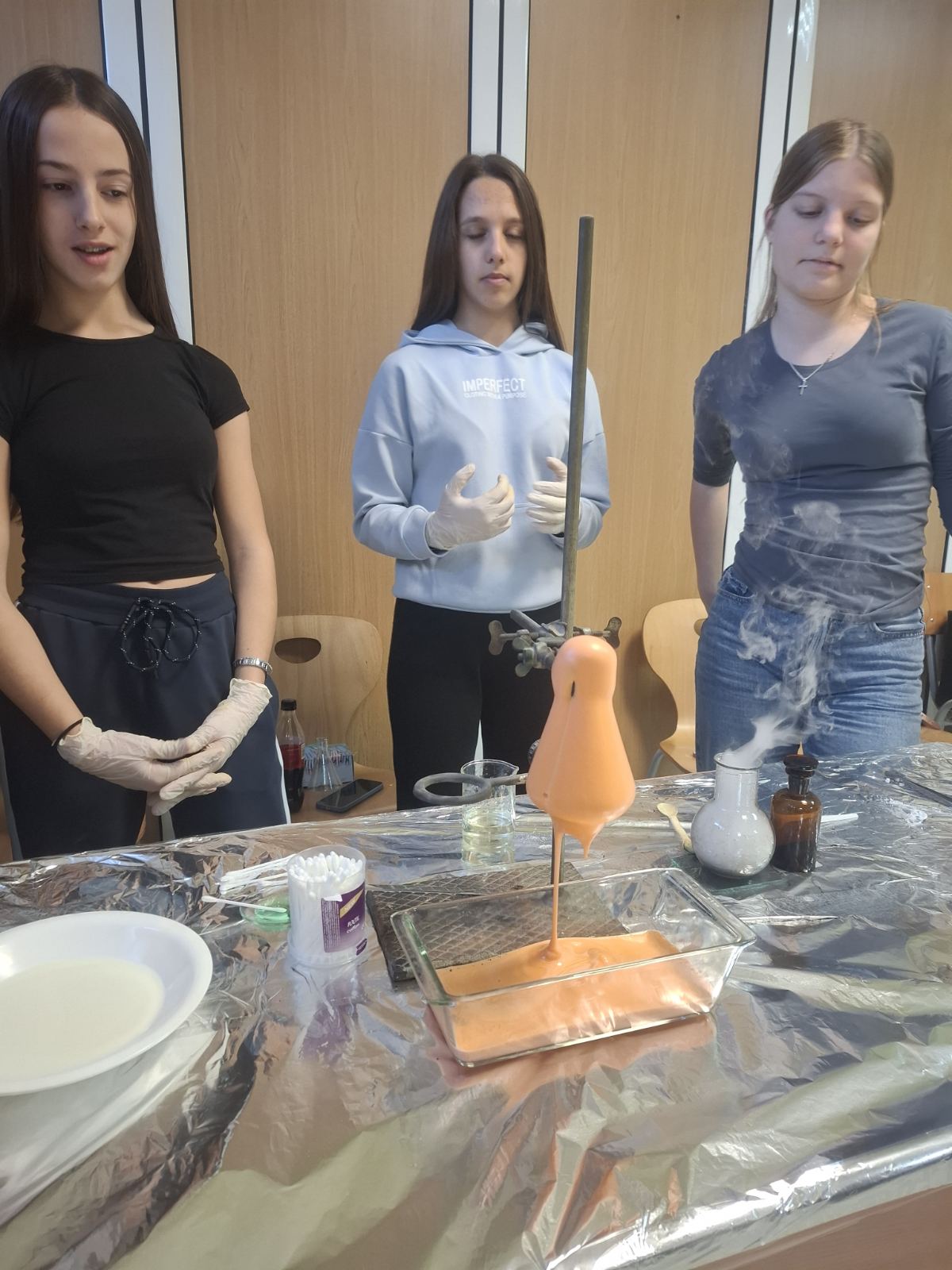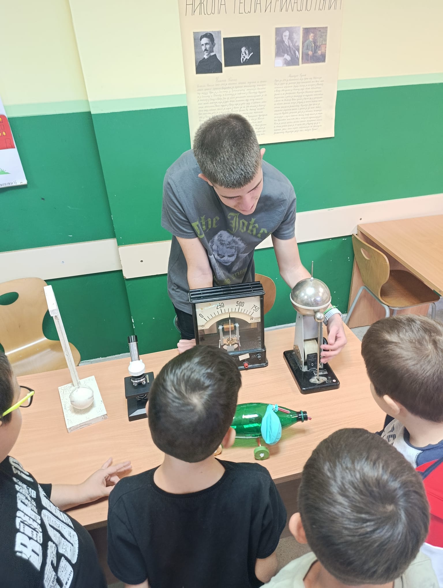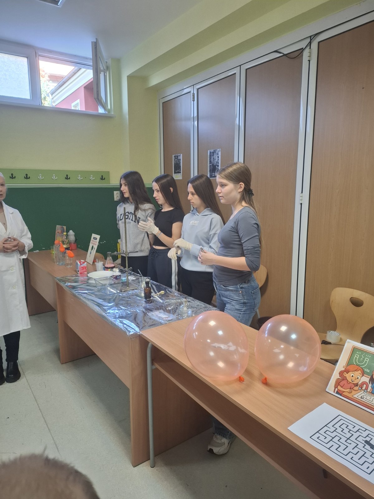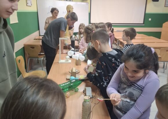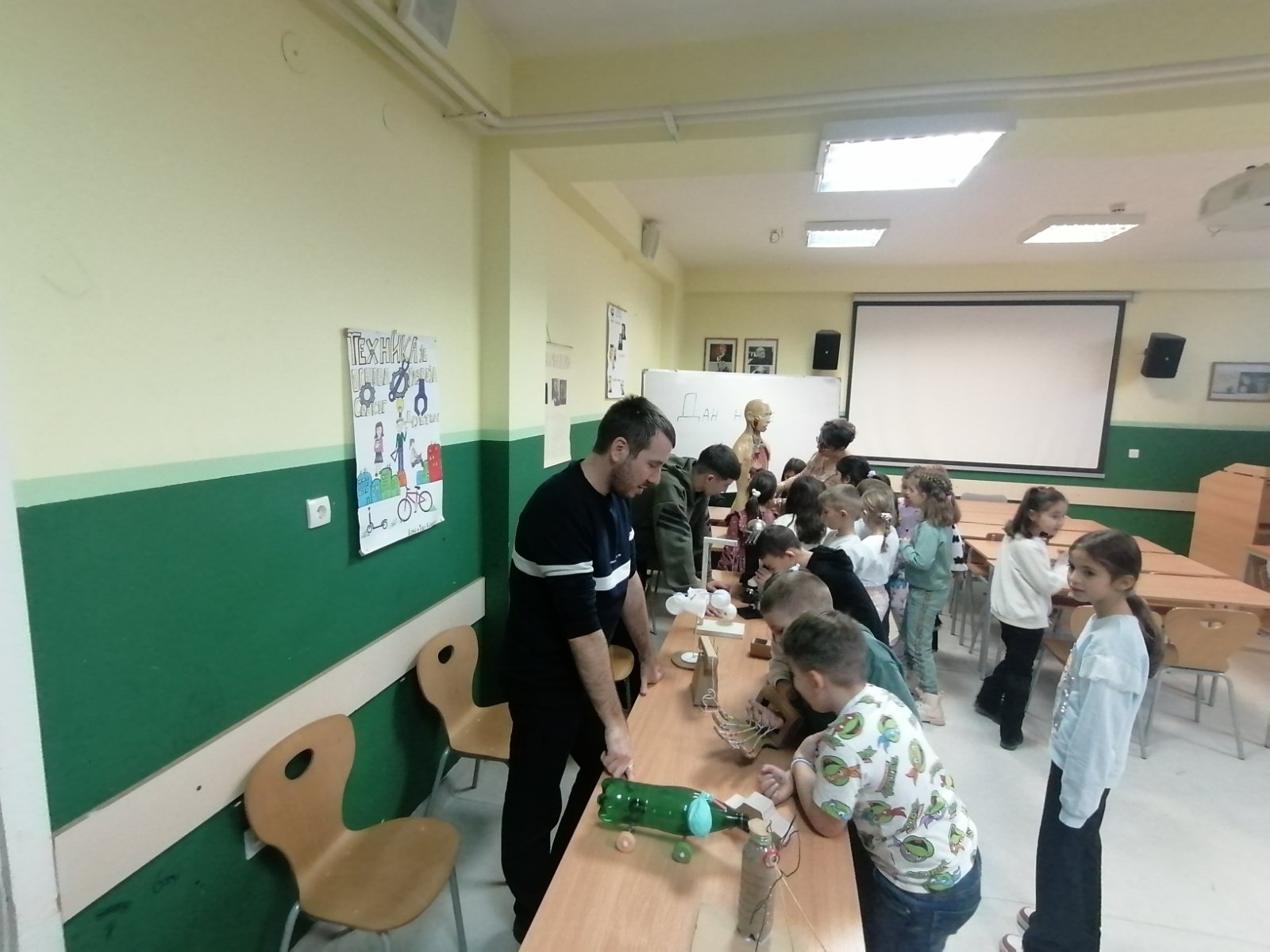 У нашој школи обележили смо Дан науке кроз занимљиве активности за све ученике. Са млађим разредима извођени су узбудљиви експерименти: палили смо магнезијум, правили слонову пасту, чаробно млеко, балон који се сам надувава, лаву у чаши, наелектрисали балоне и померали магнете кроз лавиринт. Деца су такође разгледала изложбу модела направљених од рециклираних материјала: ауто, анемометар, роботску руку, фиксни телефон од картона, као и клатно, перископ, микроскоп и анатомски модел људског тела. Уз велико стрпљење и ангажовање, ученици старијих разреда су демонстрирали рад инструмената и макета, одговарајући на питања млађих и подстичући њихову радозналост. Деца су показала велико интересовање и жељу за извођењем експеримената и разгледањем макета. Све је било забавно, поучно и подстицало дечју радозналост.
