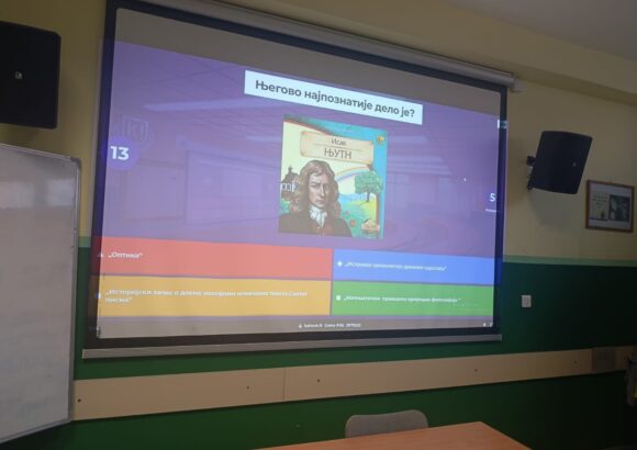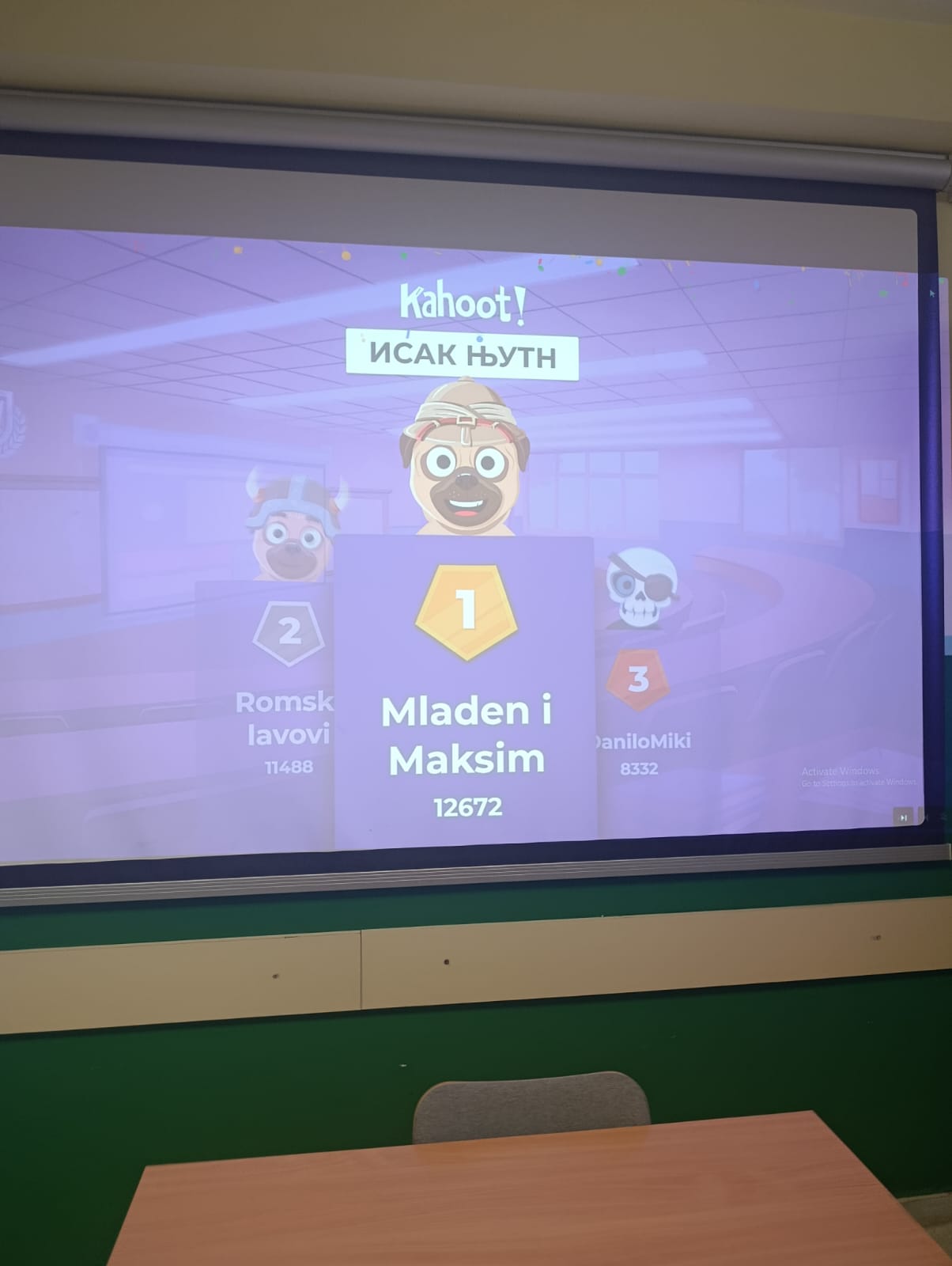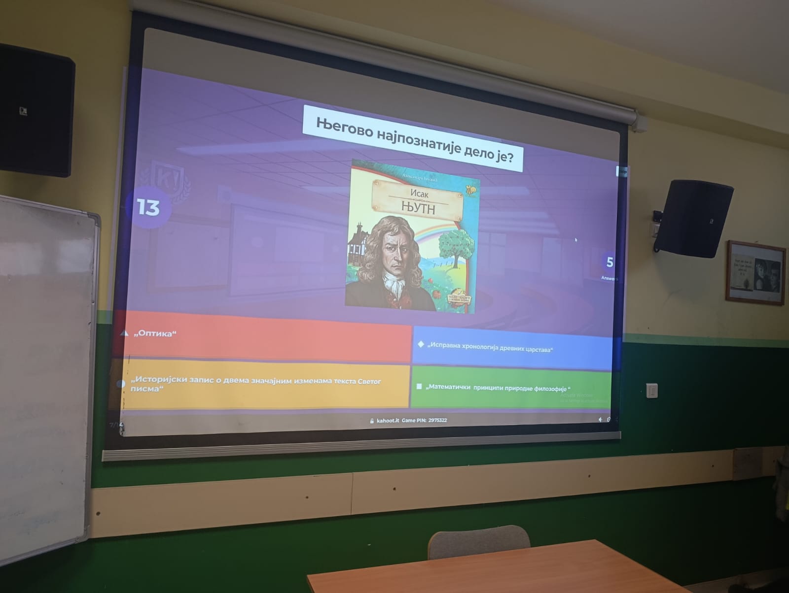 У оквиру програма, ученици старијих разреда су гледали презентацију о Исаку Њутну и разговарали о његовим открићима. Након тога су учествовали у квизу Kahoot, где су показали своје знање, брзину размишљања и такмичарски дух.
