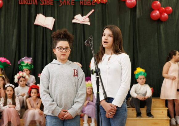 На самом почетку, гости су уживали у приредби припремљеној у њихову част, коју су осмислиле учитељице садашњег четвртог разреда уз подршку школског малог хора, уносећи радост и свечану атмосферу међу све присутне.