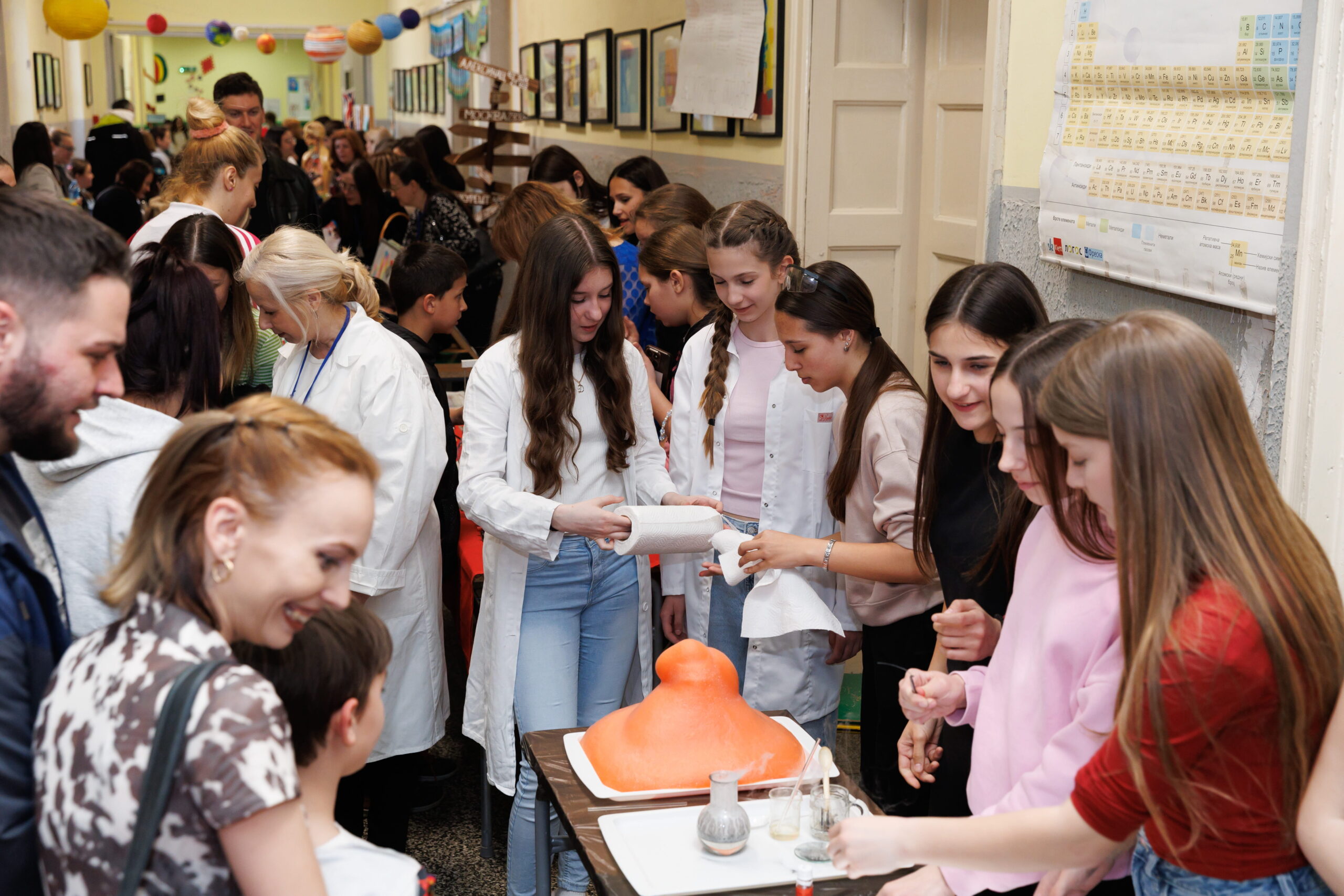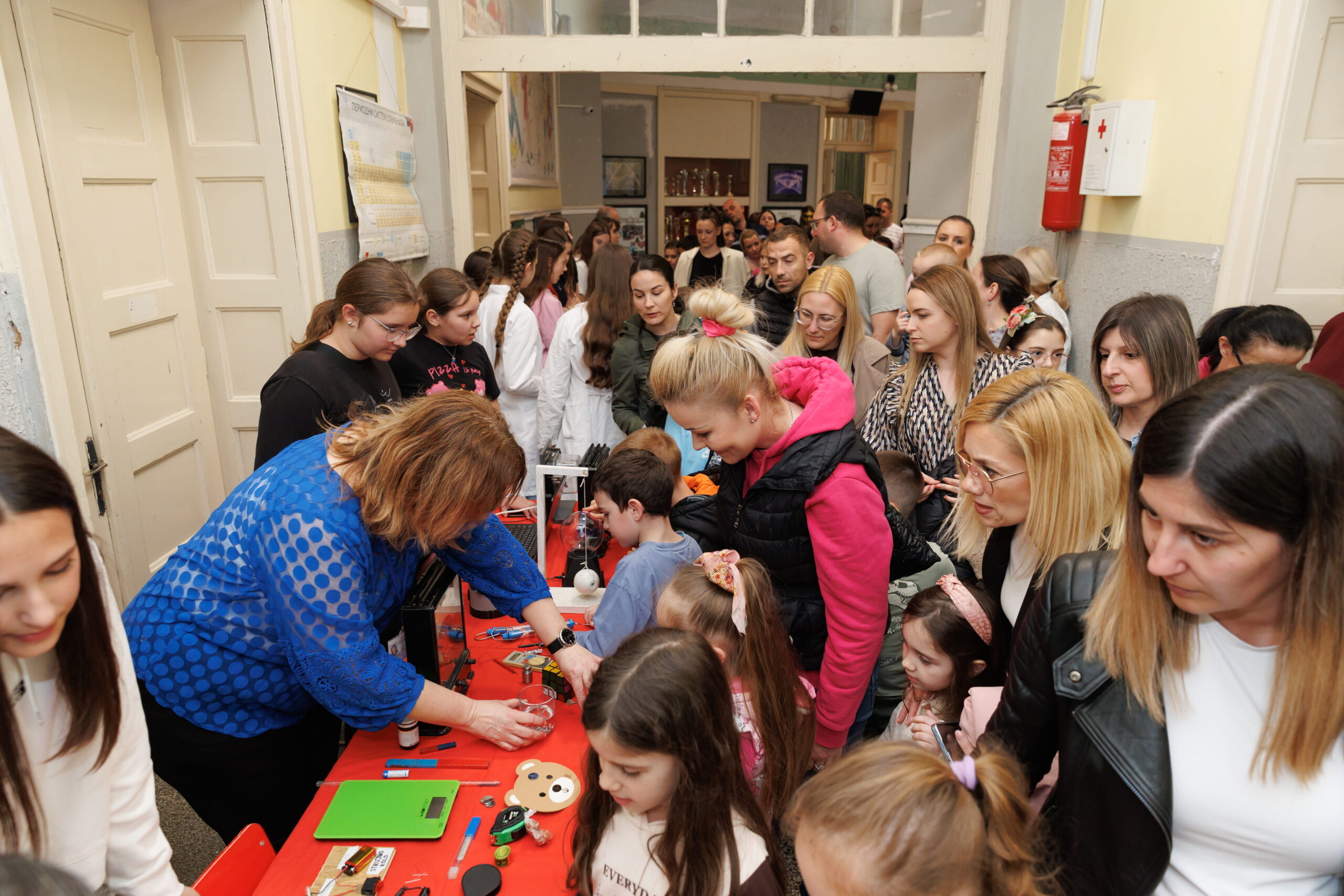 Након тога, уследио је обилазак школе, током којег су будући прваци имали прилику да завире у учионице и упознају свој будући школски простор. Посебну пажњу привукли су штандови предметне наставе од 5. до 8. разреда, где су ученици представили део свог рада и кроз занимљиве активности приближили школу најмлађима. Са великим интересовањем праћени су и експерименти младих „научника“, који су на занимљив начин откривали чаролију науке.