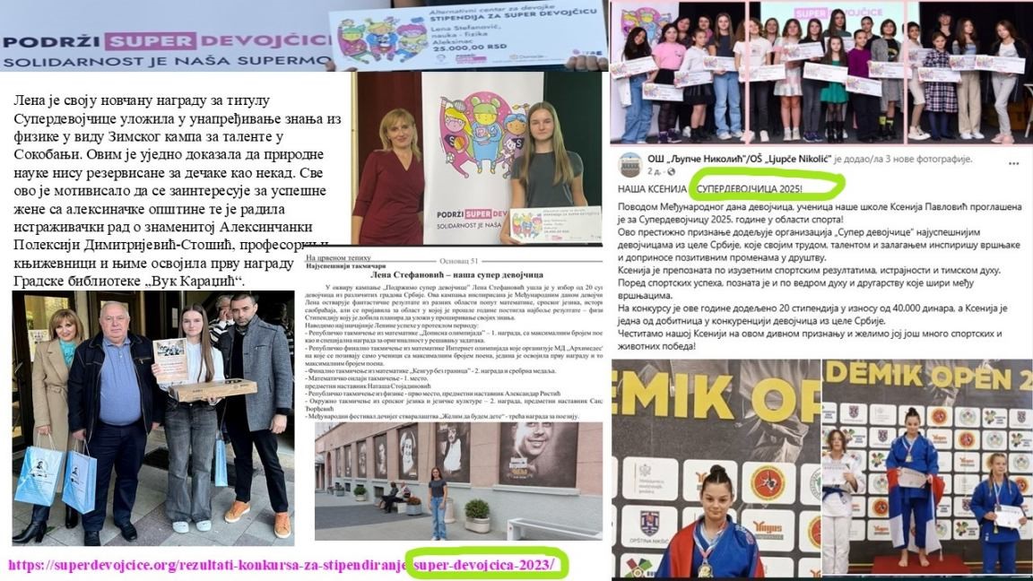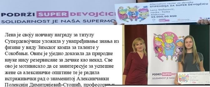 У оквиру Еразмус дана и обележавања Међународног дана девојчица, чланови Тима за пројекте промовисали су добитнице стипендија у оквиру кампање  „Подржи СУПЕР девојчице“. Ученице наше школе су већ другу годину за редом добитнице ове стипендије. Наше супер девојчице су Лена Стефановић, добитница стипендије за 2024. годину и Ксенија Павловић, добитница стипендије за 2025. годину.