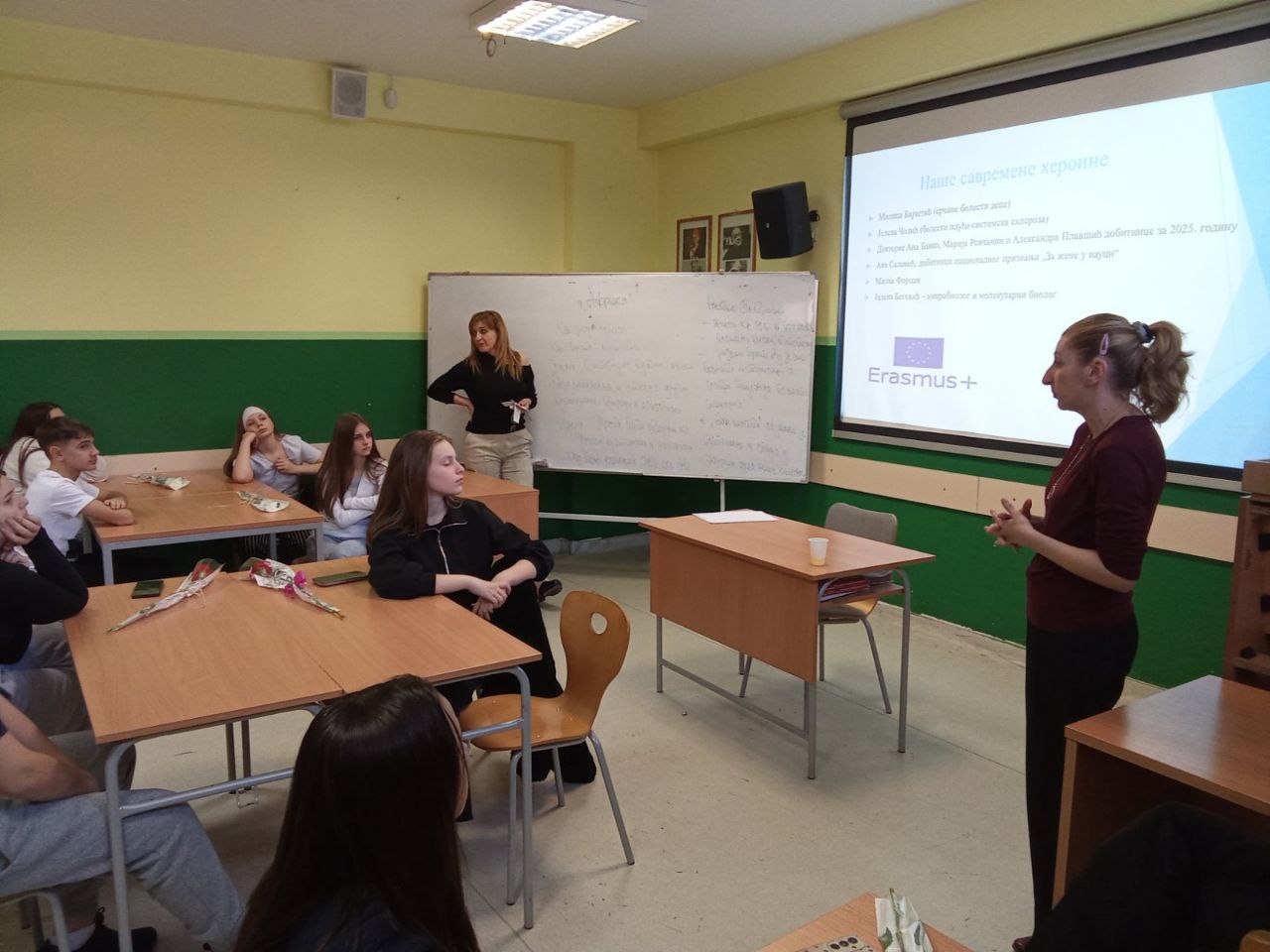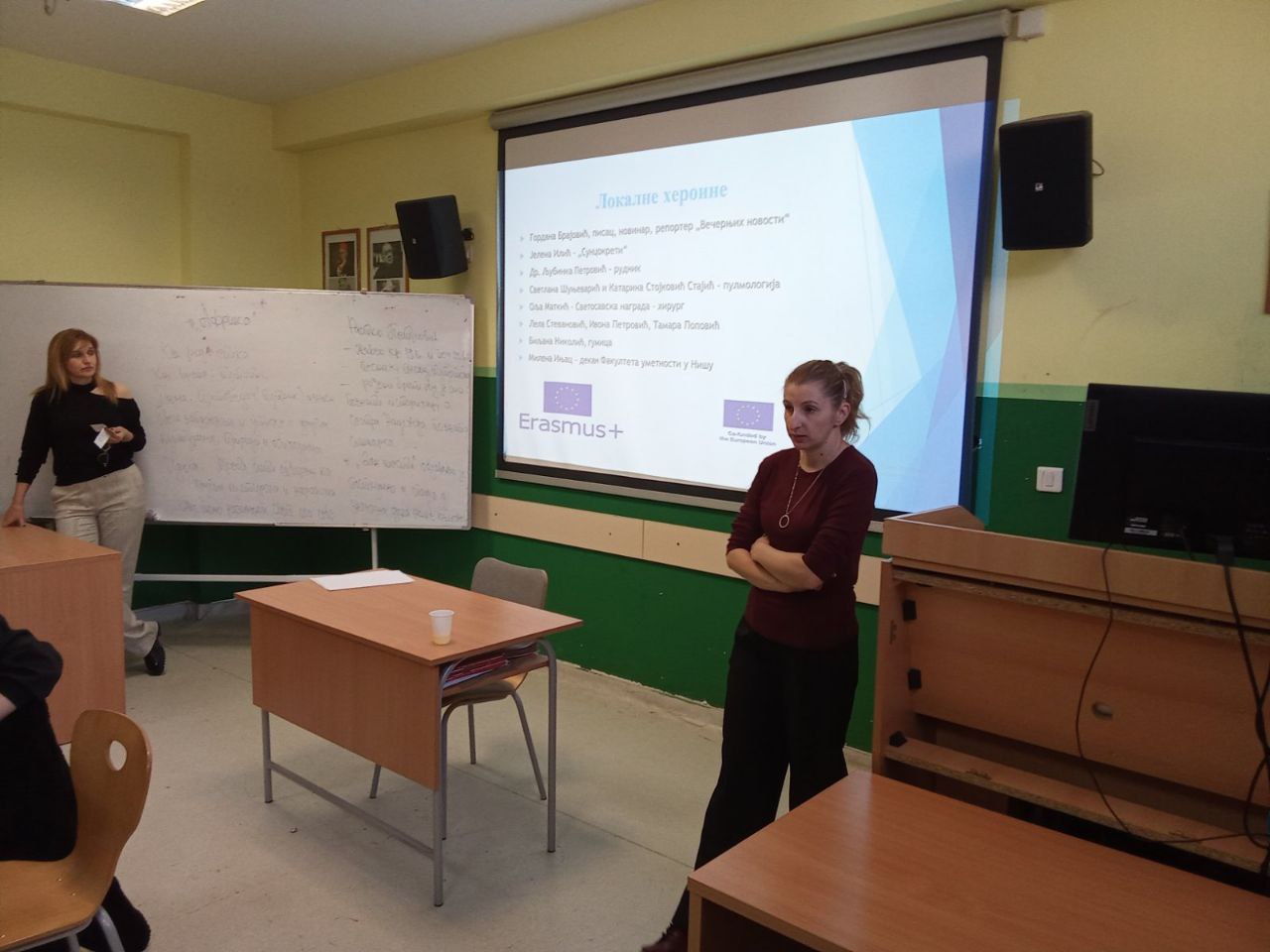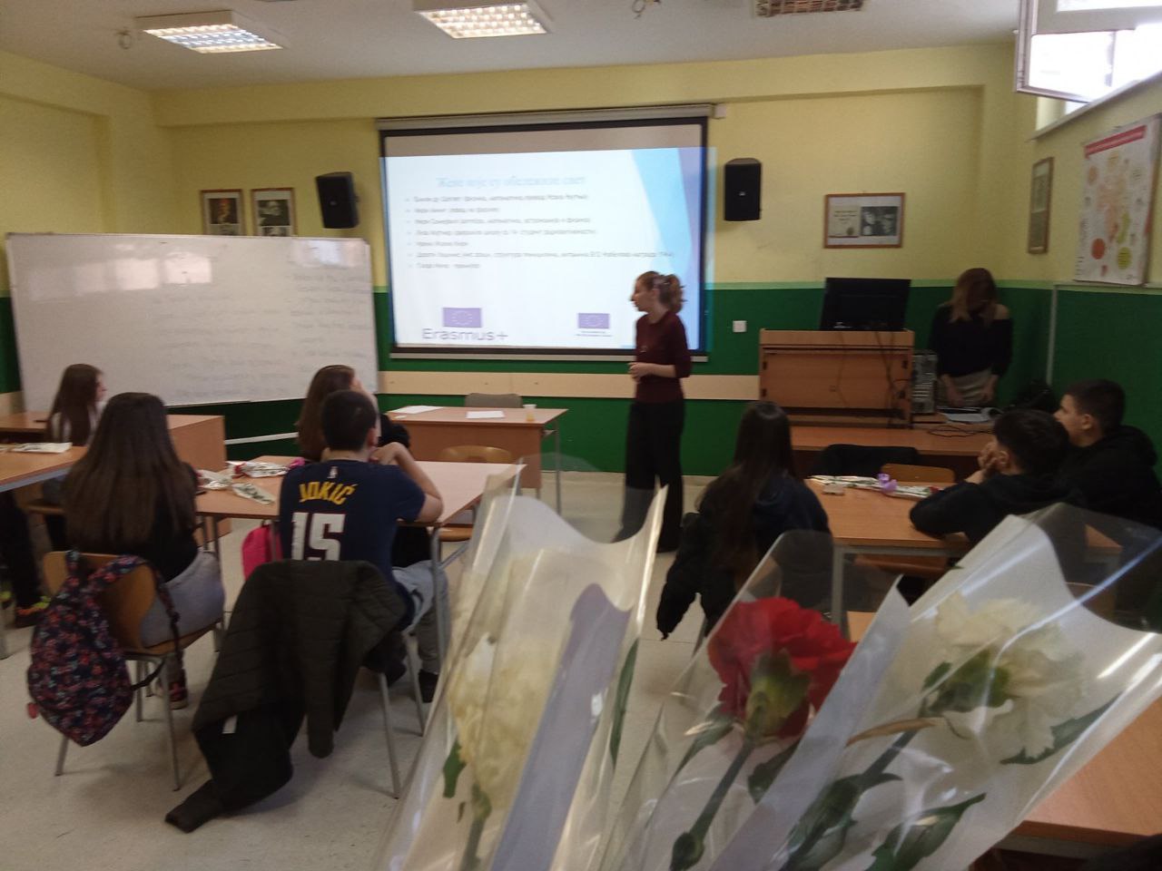 Кроз презентацију ученици су се упознали са историјатом обележавања Дана жена, као и са женама које су покренуле значајне друштвене промене. Посебна пажња посвећена је мање познатим, али изузетно значајним женама чији су успеси блиски и инспиративни младима. Разговарало се о положају жена кроз време и традицију, кроз уметност, али и у модерној кинематографији. Поменуте су и жене које су дале велики допринос развоју науке и друштва у нашој земљи као и о онима које су тренутно кандидати за најпрестижније награде у области научних и медицинских достигнућа.