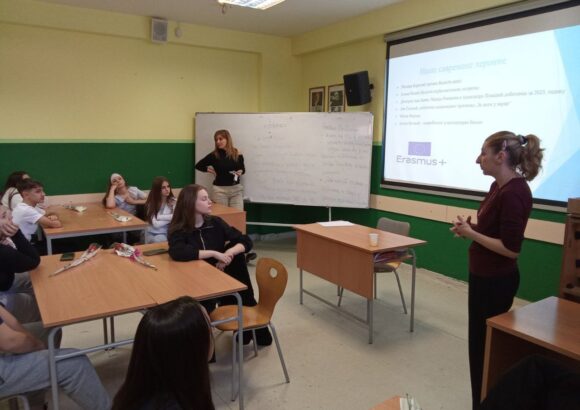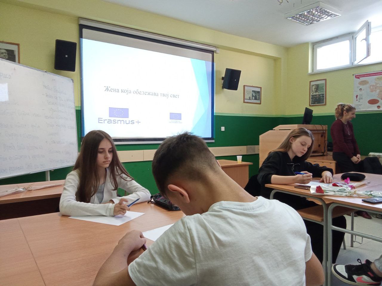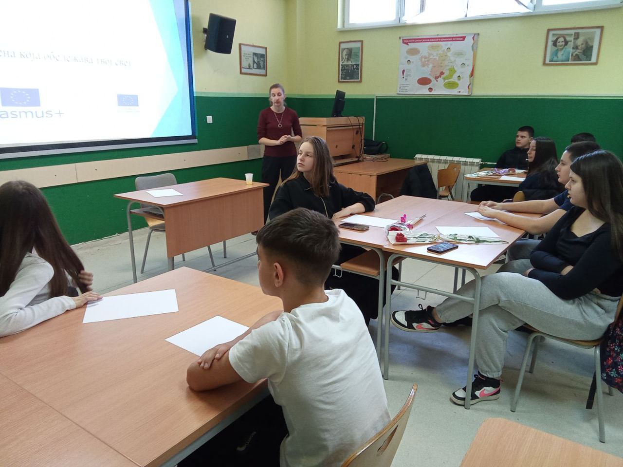 Чланови Тима су са ученицима одабраним за учешће у мобилности кроз предавање и радионице разговарали и размењивали мишљења о положају жена и девојчица у друштву.