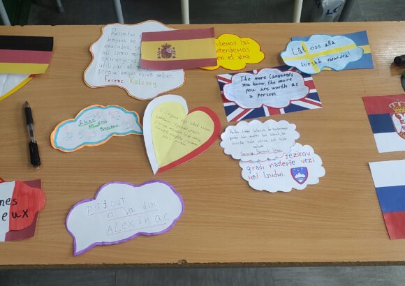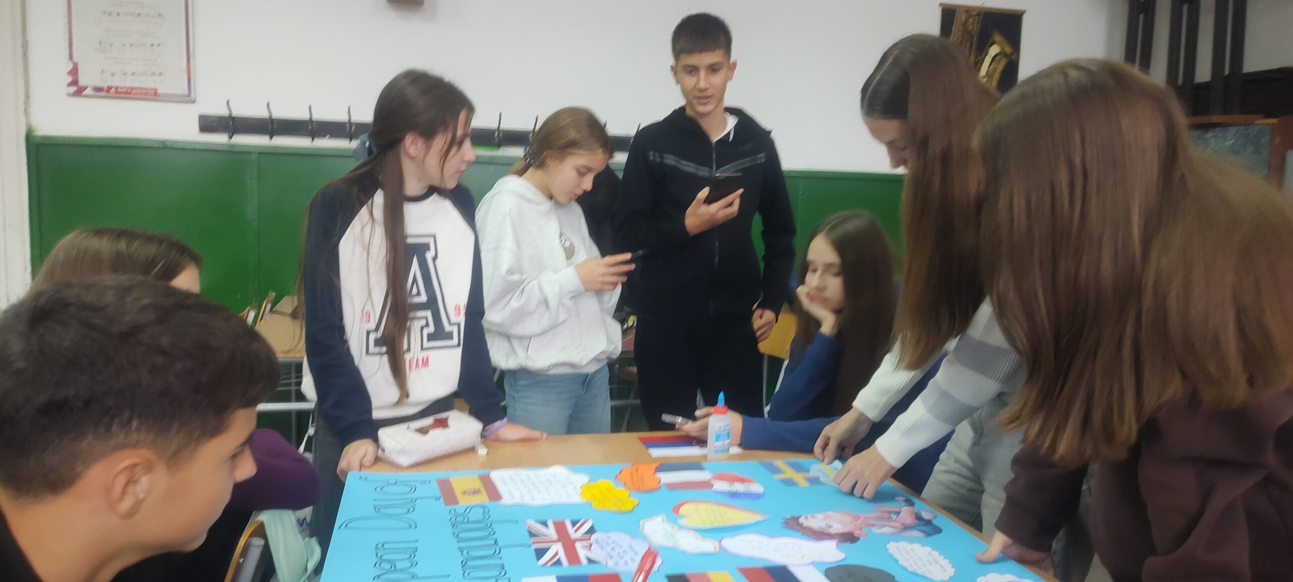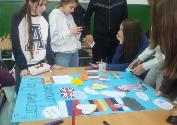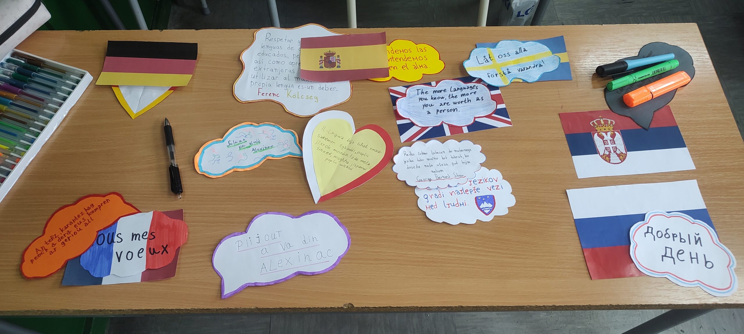 Европски дан језика обележен је кроз различите активности у нашој школи у петак 26.09.2025. Ученици четвртог разреда посетили су часове француског језика код наставница Ангелине Митровић и Гордане Миљковић где су кроз презентацију учили о малим језицима у Европи и глумили у кратким дијалозима на тим језицима а своја нова сазнања проверили путем Kahoot квиза. Ученици првог разреда у издвојеном одељењу у селу Краљеву су на часовима енглеског језика бојили заставе и проналазили сличности међу њима. На часовима енглеског језика са наставницом Снежаном Ракић ученици осмог разреда су правили постере са рецептима традиционалних слаткиша из Србије, Енглеске и Француске. Ученички парламент је направио постер који илуструје мото „Језици отварају срцe и ум!”.