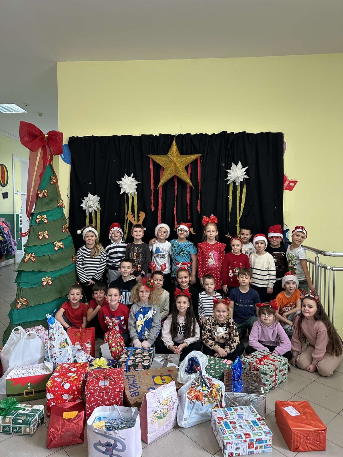 Ученици првог разреда наше школе су се, сада већ традиционално, одазвали позиву удружења „Кошница“ да учествују у хуманитарној акцији прикупљања новогодишњих пакетића за болесну и угрожену децу.