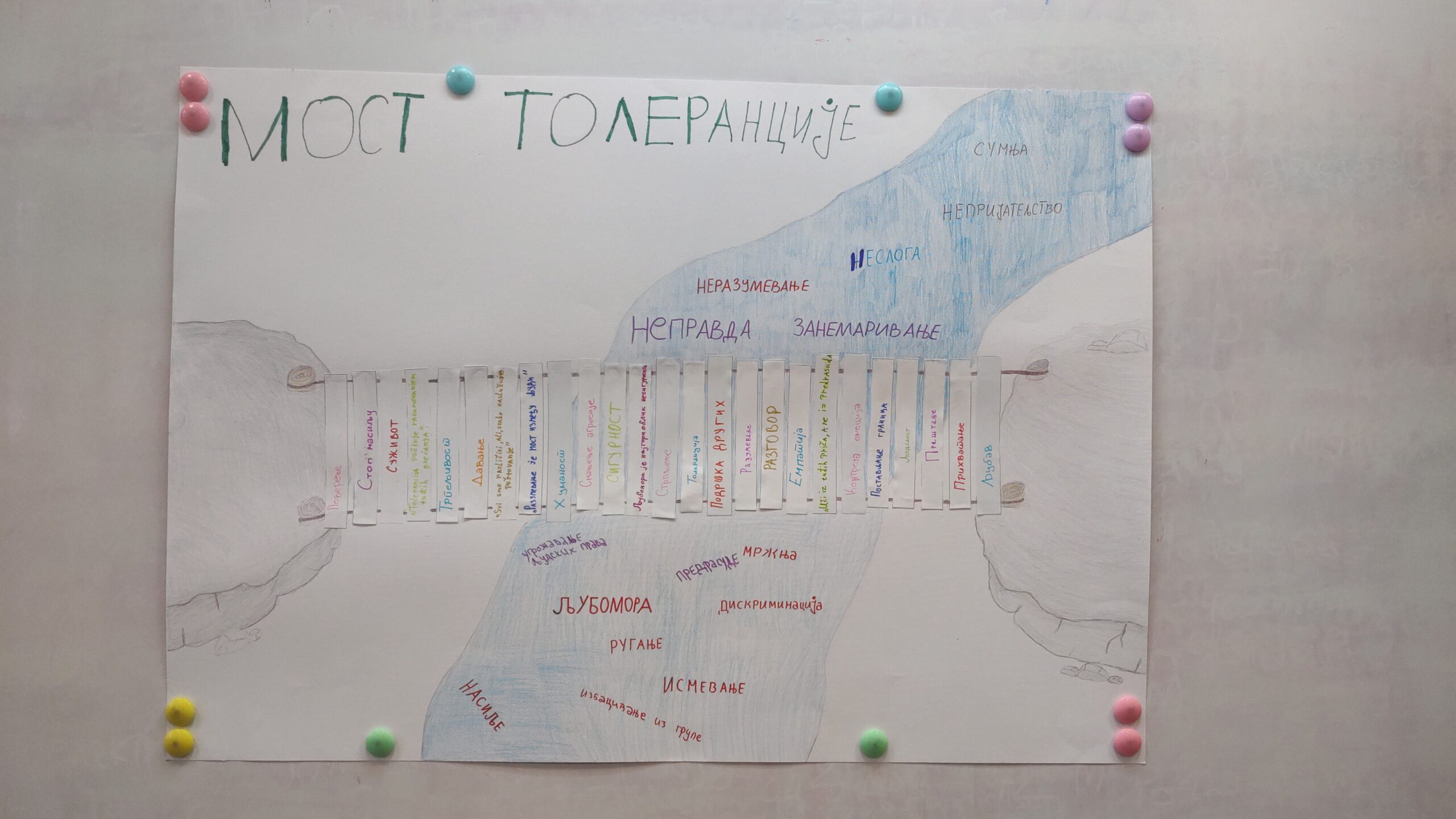 Ова радионица подстакла је ученике да размене мишљења, саслушају једни друге и уоче колико је важно да у свакодневном школском животу градимо „мостове“, а не „зидове“. Рад ученика показао је да толеранција није само појам са папира, већ нешто што се учи, негује и живи – у учионици, на одмору и у сваком међусобном сусрету.