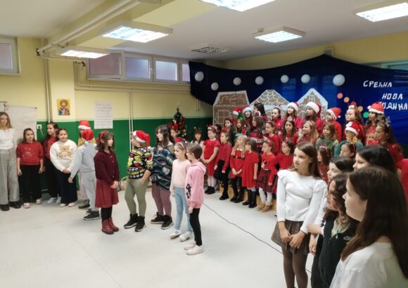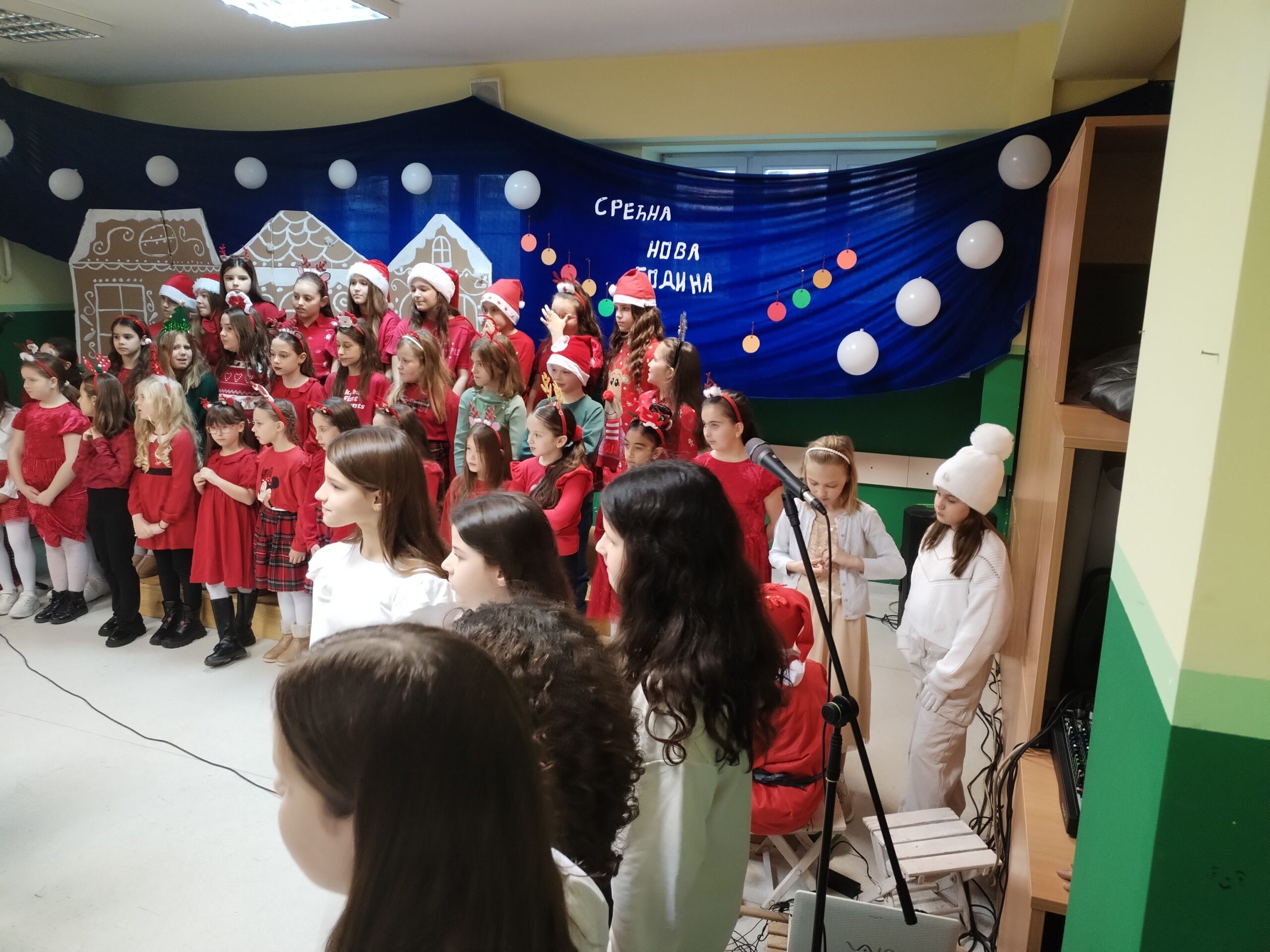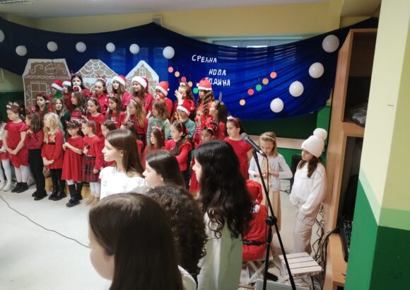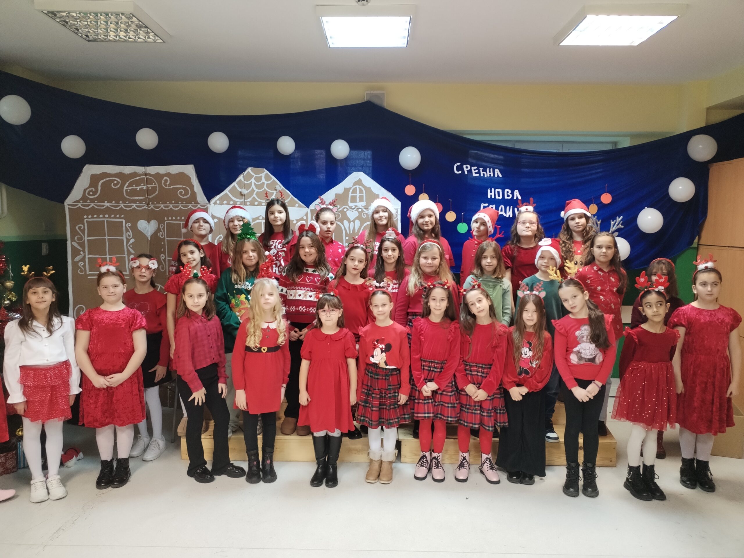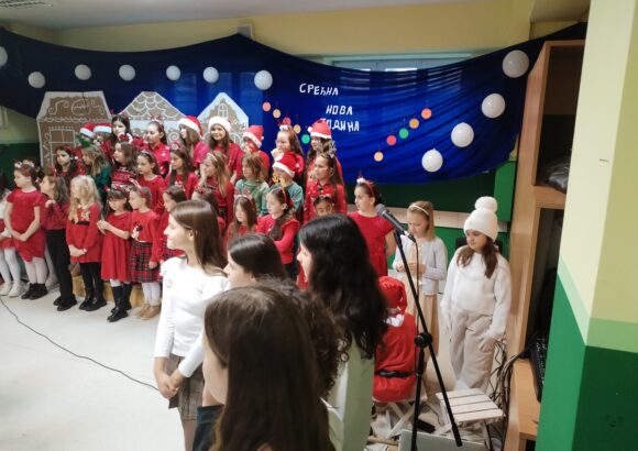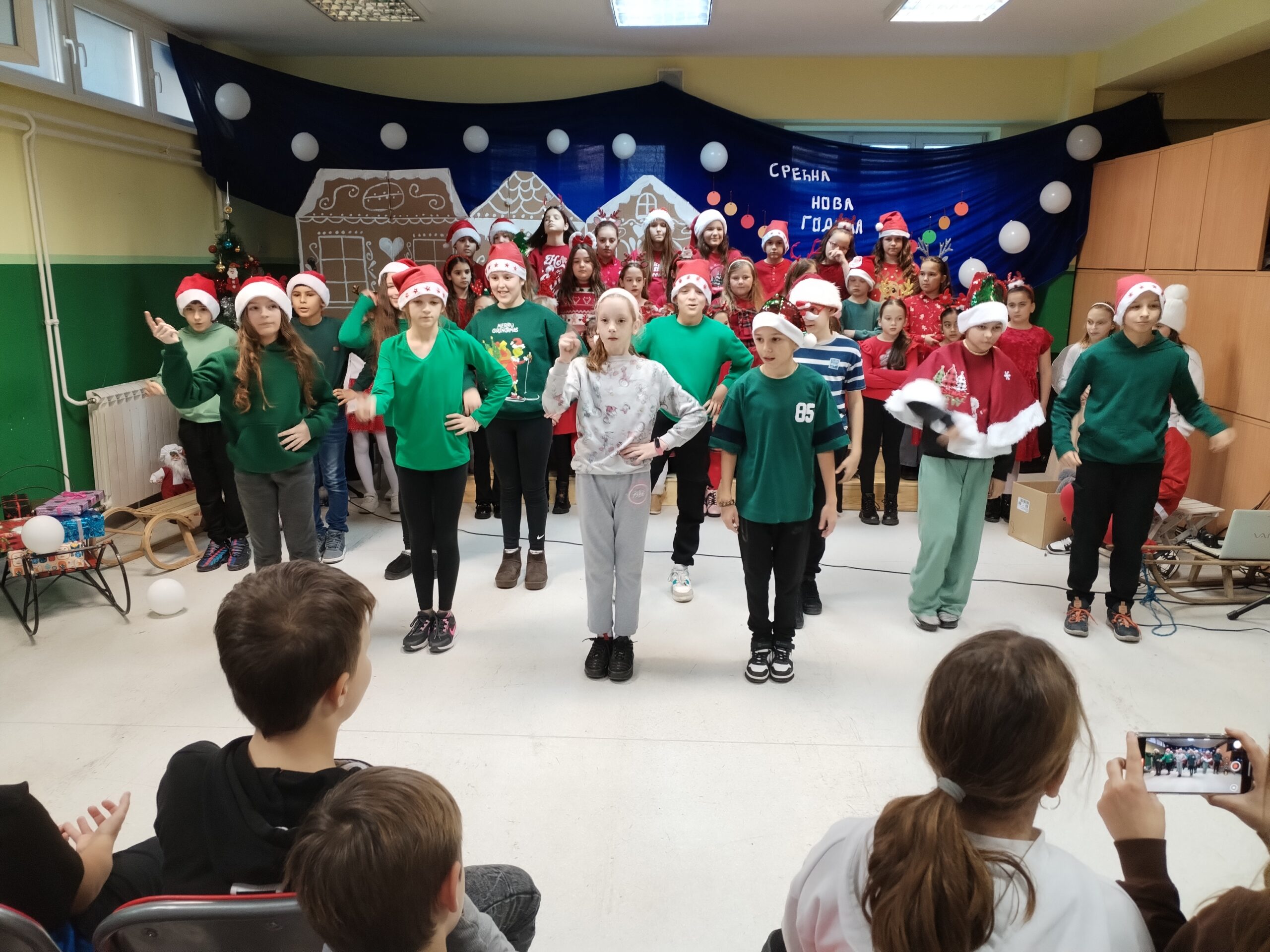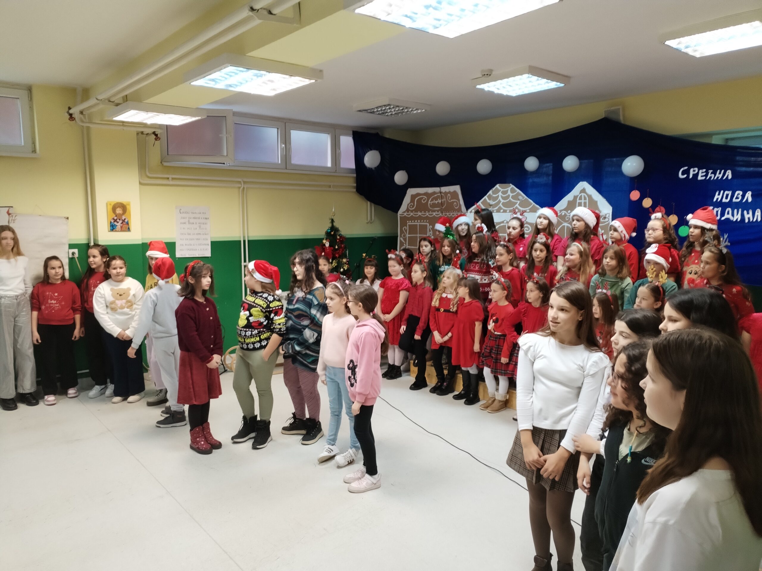 Новогодишње приредбе припремили су ученици четвртог разреда, чланови секције страних језика старијих разреда, као и хор ученика млађих разреда, који је наступио под диригентском палицом наставнице Марије Петровић.