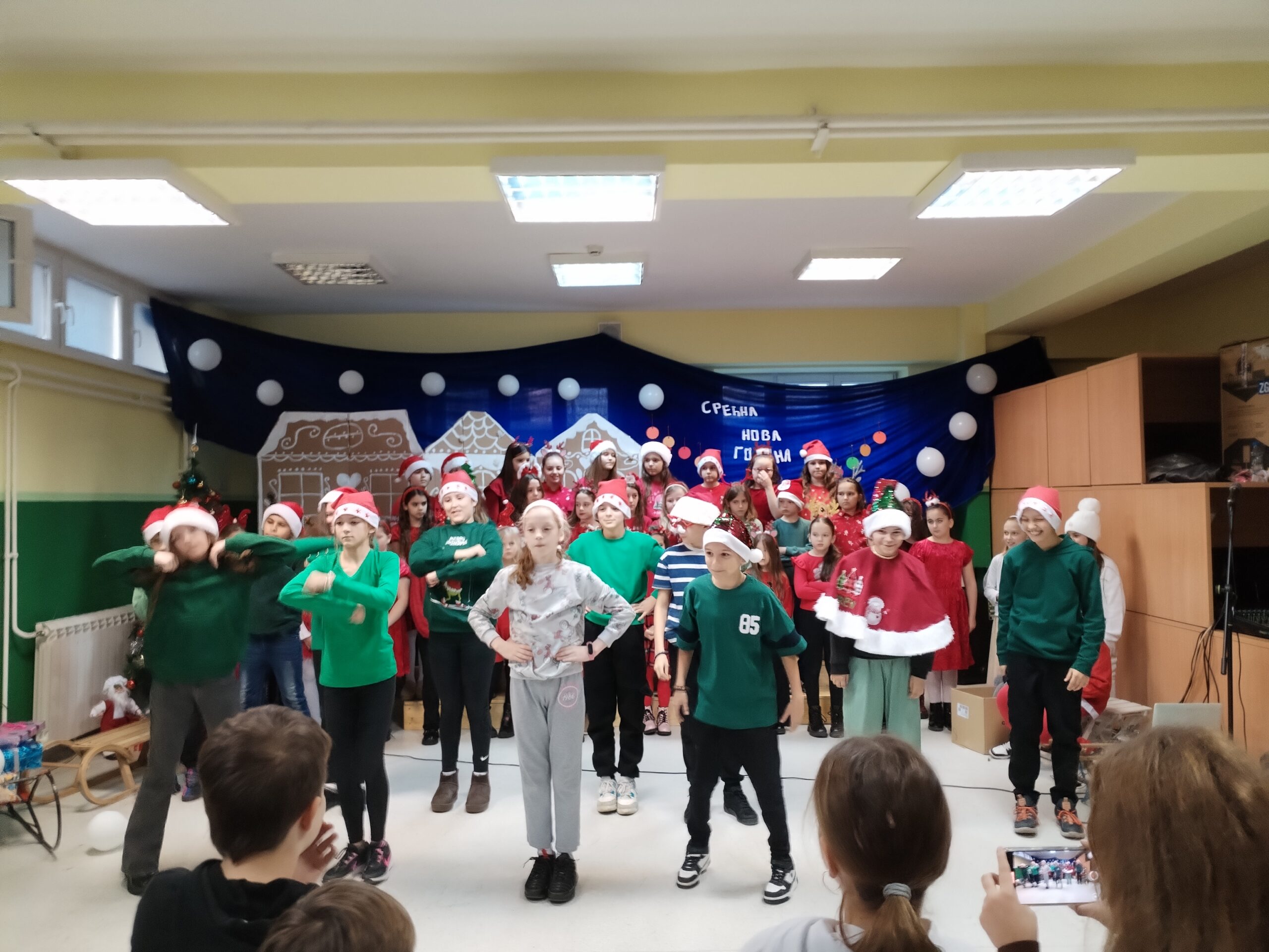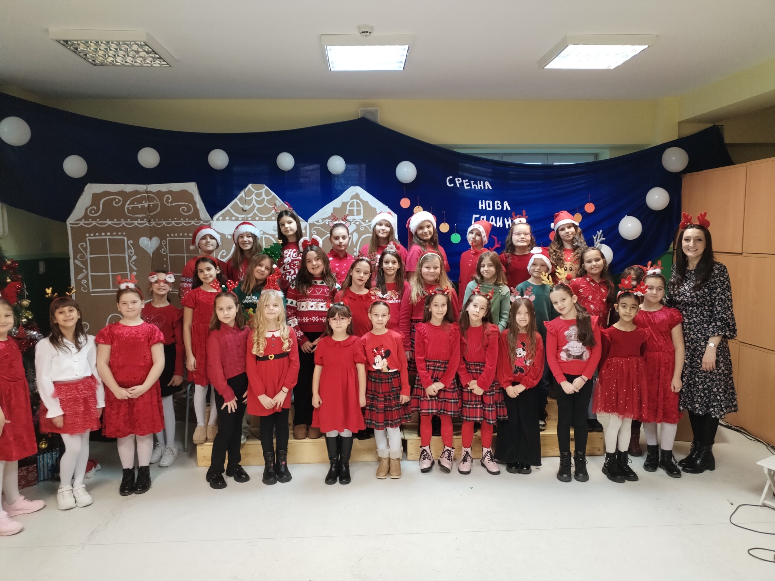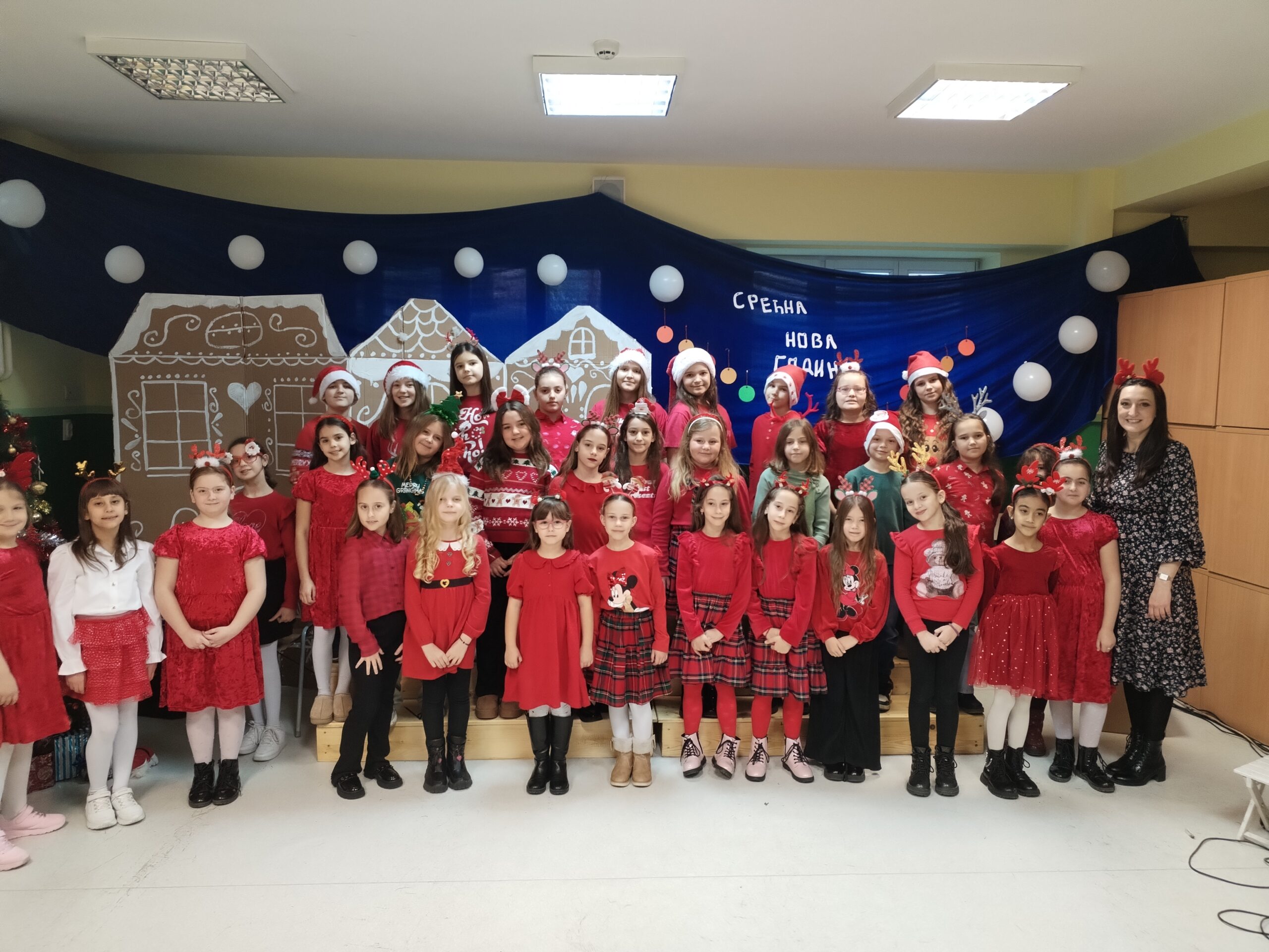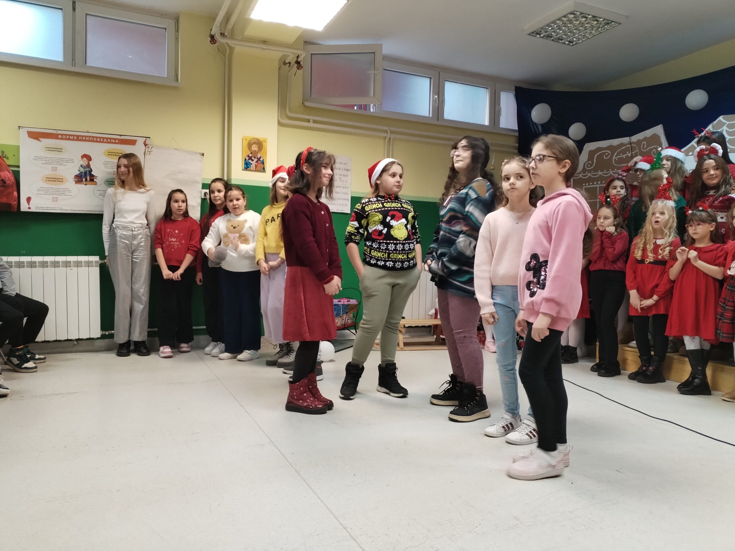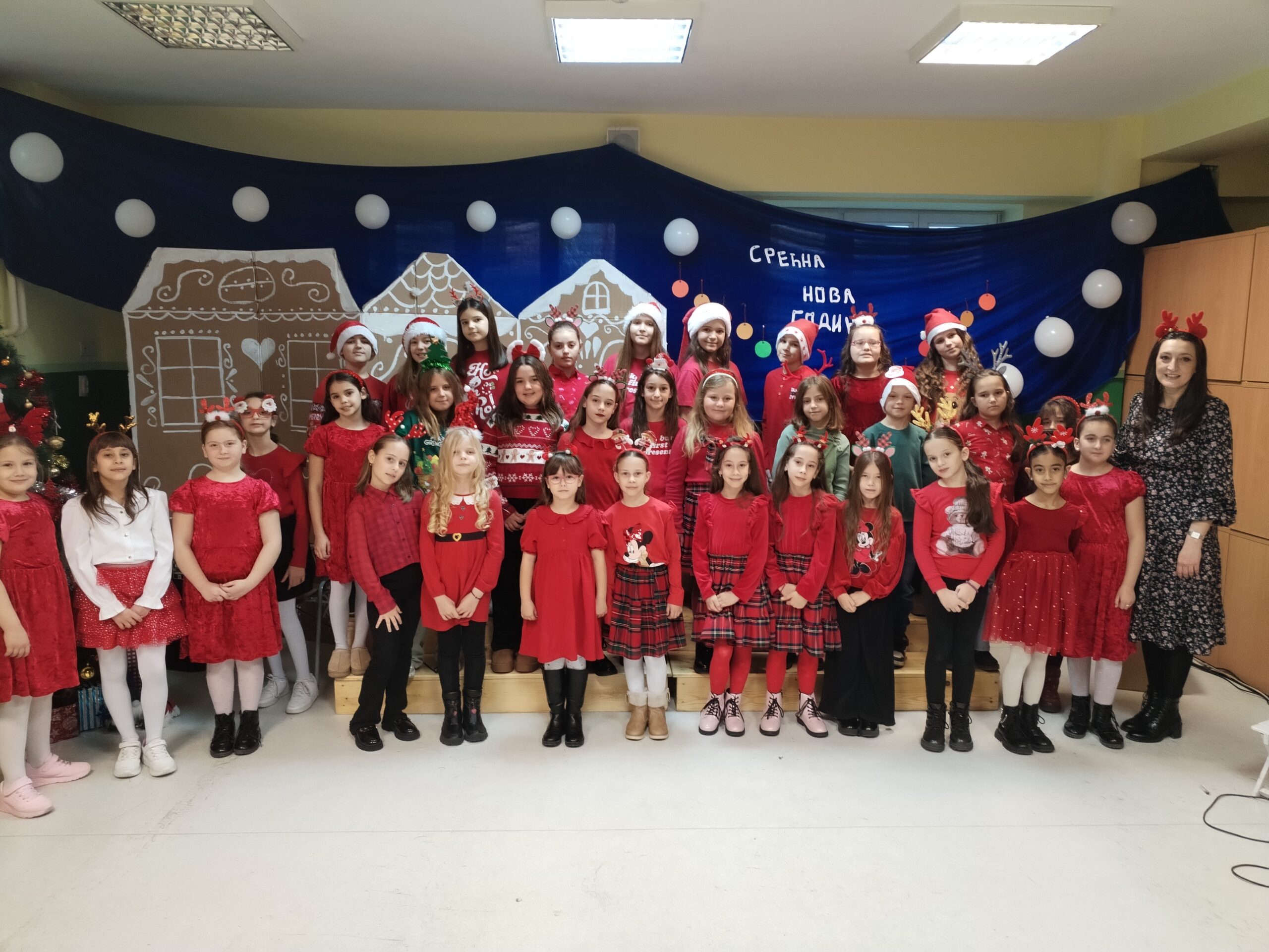 Новогодишње приредбе припремили су ученици четвртог разреда, чланови секције страних језика старијих разреда, као и хор ученика млађих разреда, који је наступио под диригентском палицом наставнице Марије Петровић.