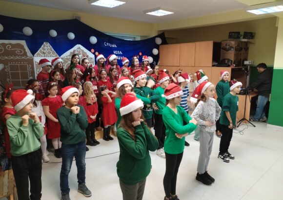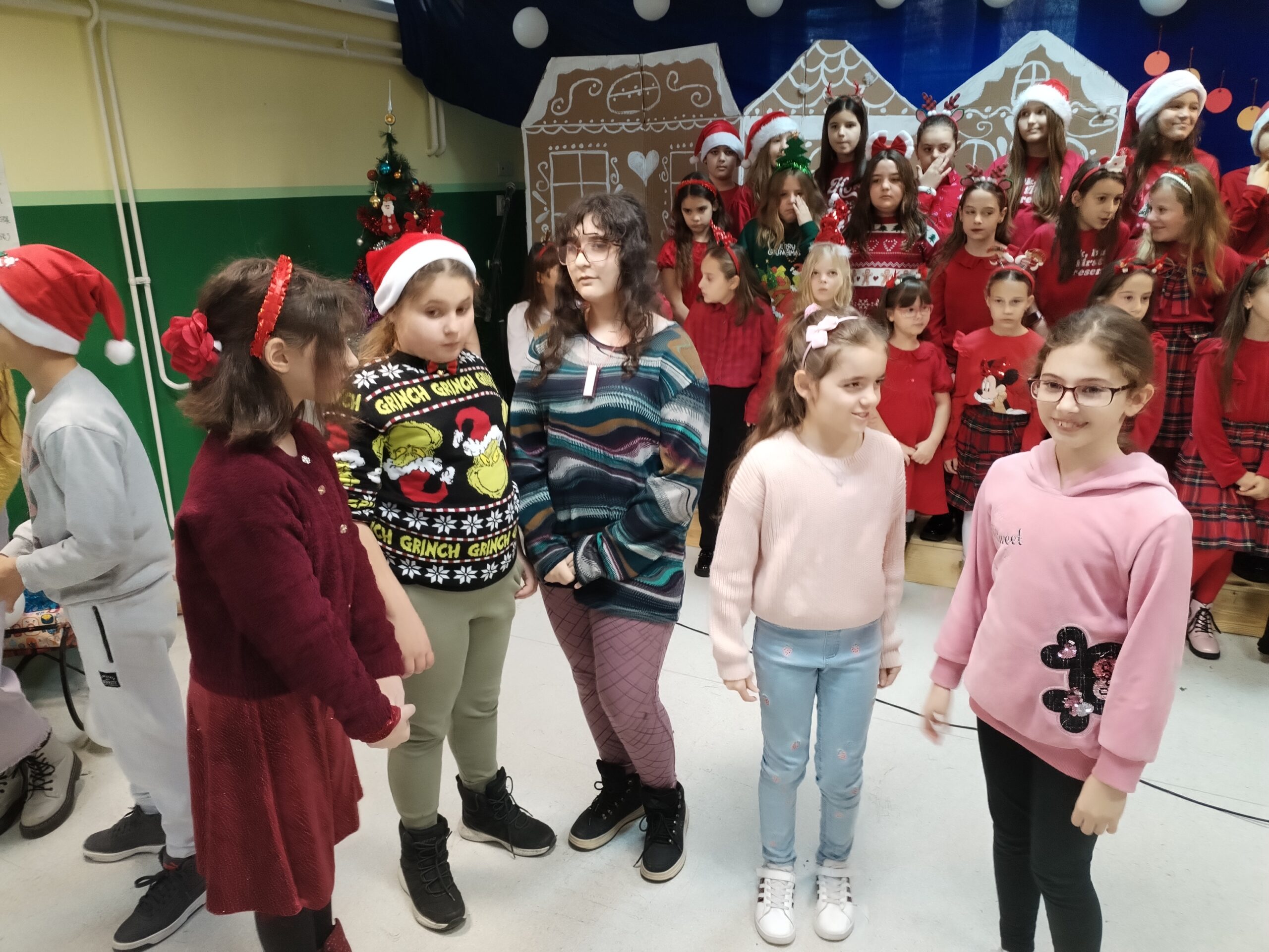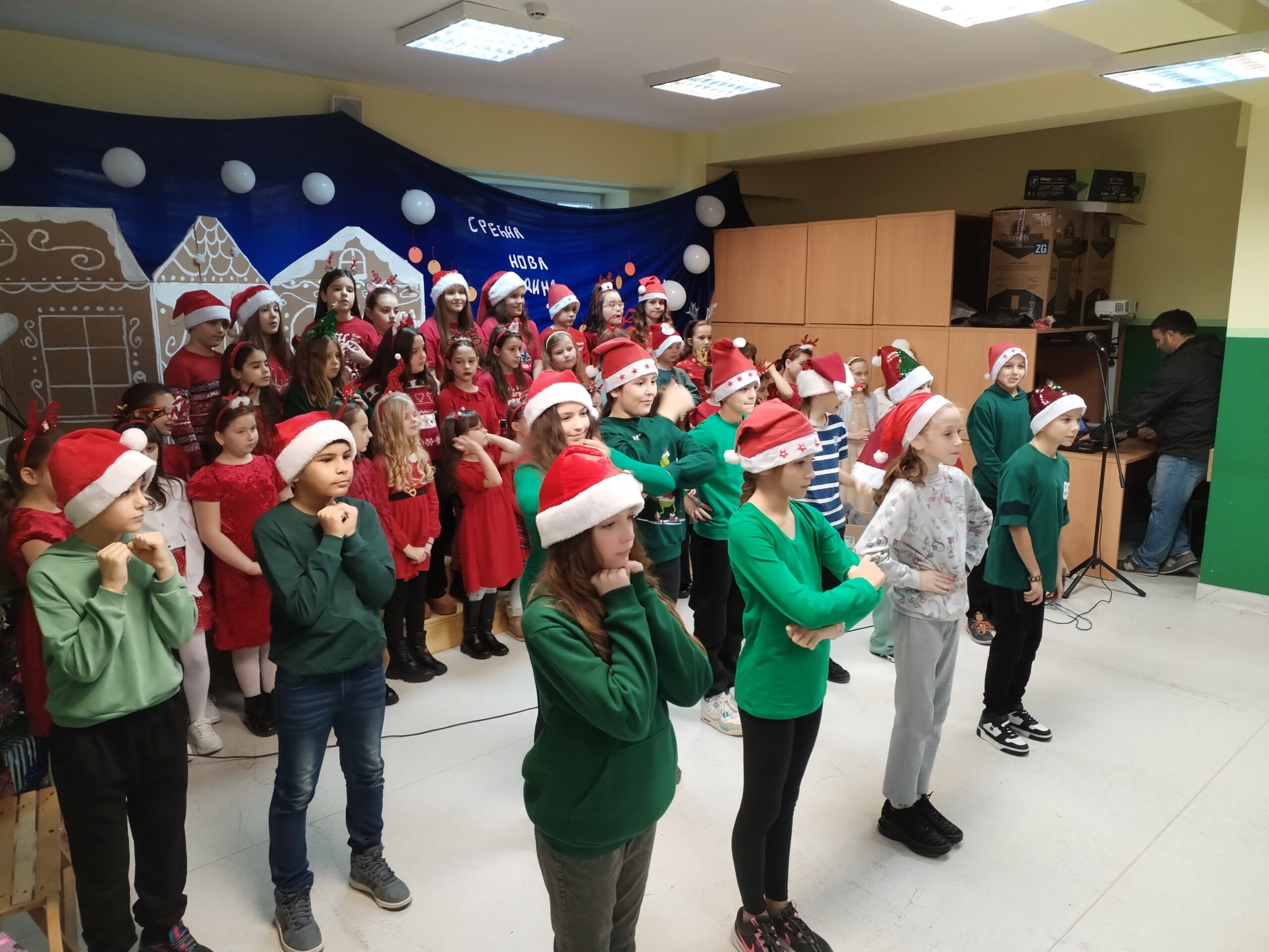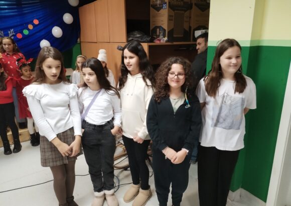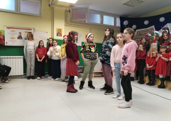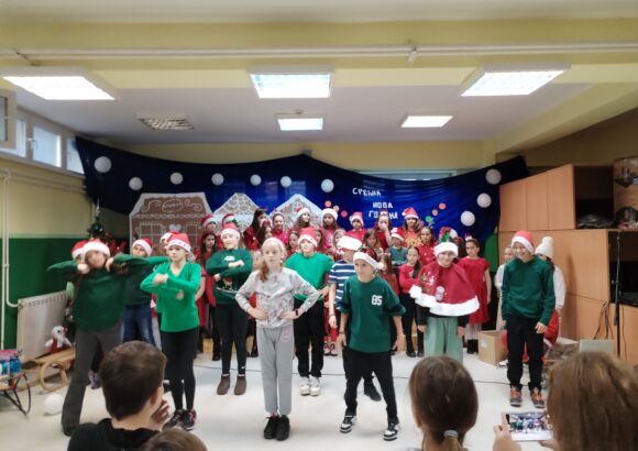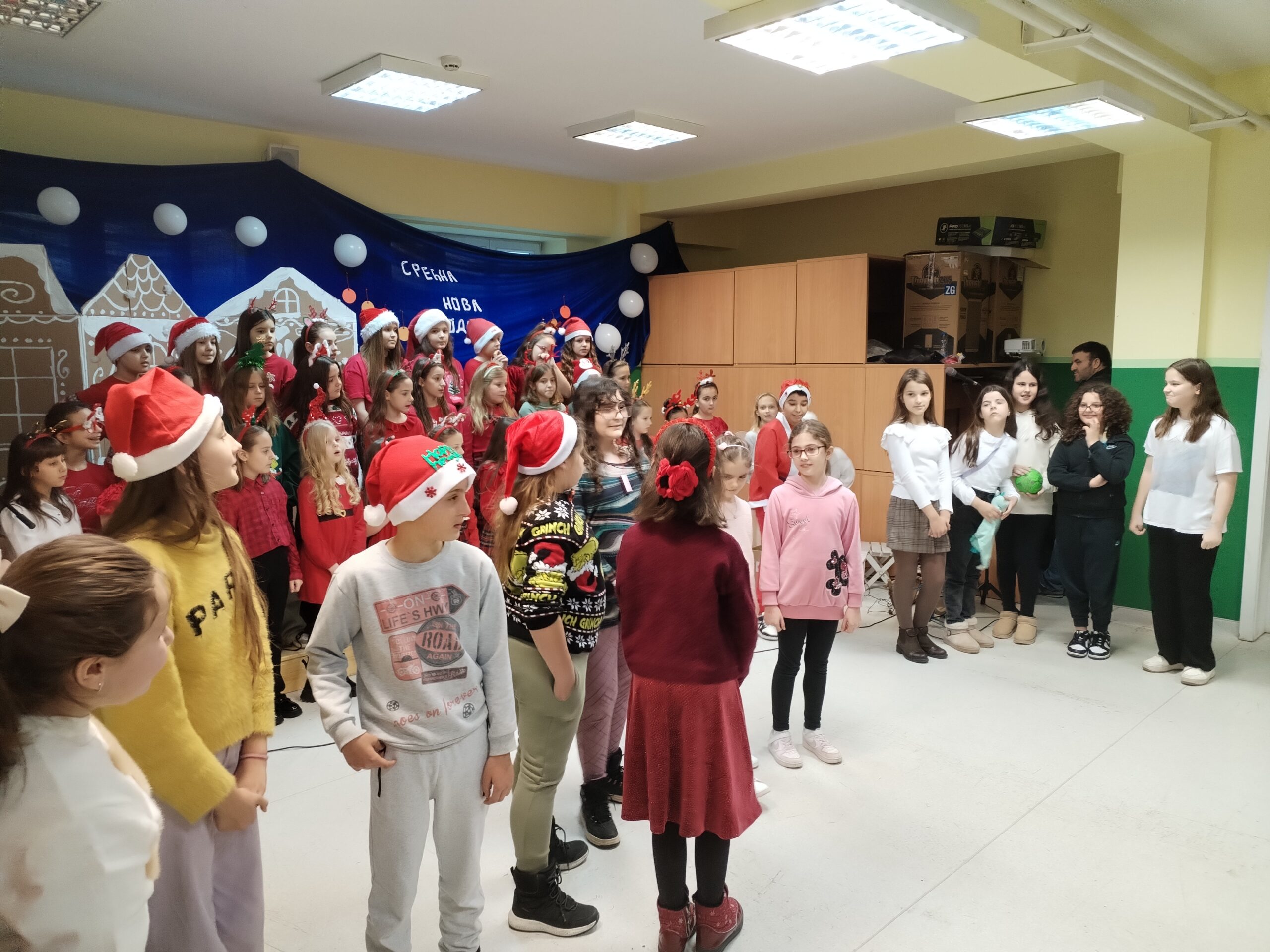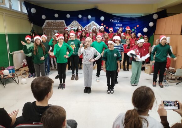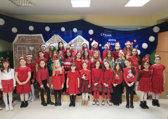 Новогодишње приредбе припремили су ученици четвртог разреда, чланови секције страних језика старијих разреда, као и хор ученика млађих разреда, који је наступио под диригентском палицом наставнице Марије Петровић.