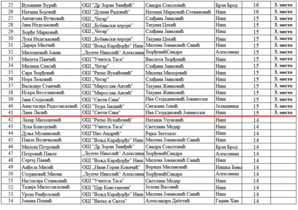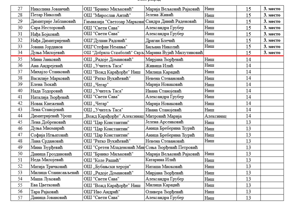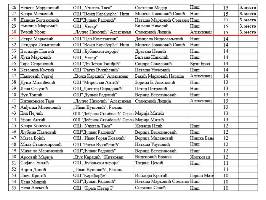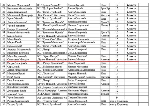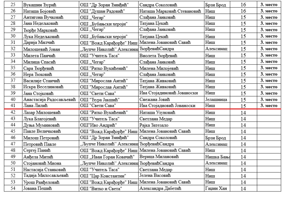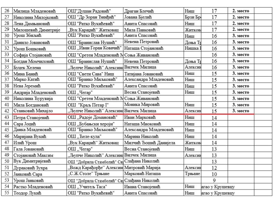 Са поносом истичемо да је изузетно велики број ученика наше школе остварио врхунске резултате, потврђујући висок ниво знања, посвећеност и љубав према матерњем језику. Овај успех није случајност – он је резултат дугогодишњег преданог рада. Посебно радује чињеница да се овакви резултати понављају из године у годину, чиме наша школа учвршћује своје место међу најуспешнијима у округу.