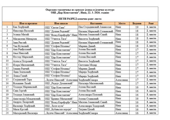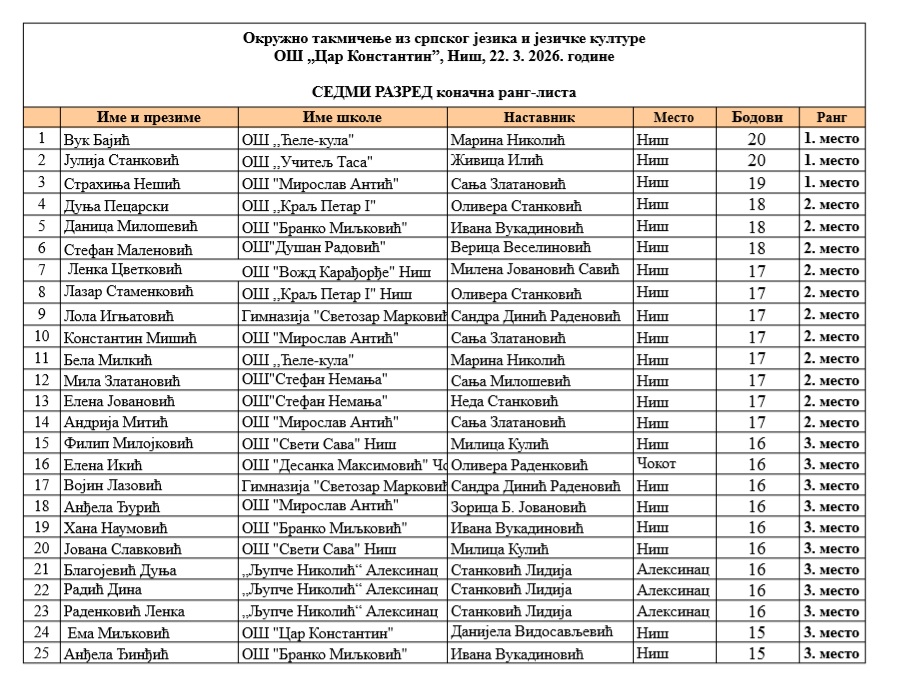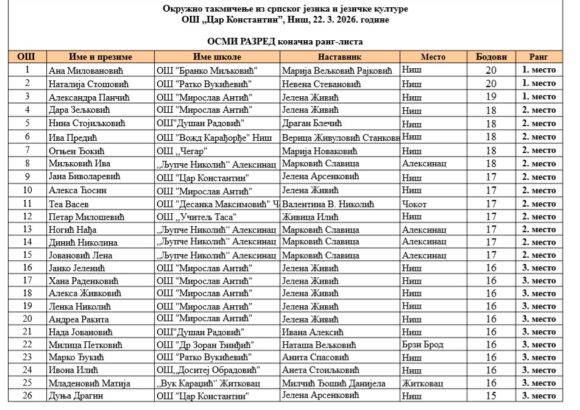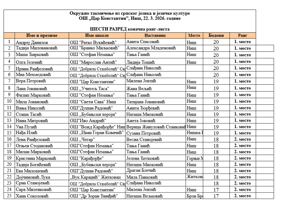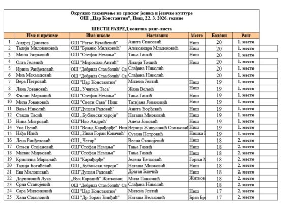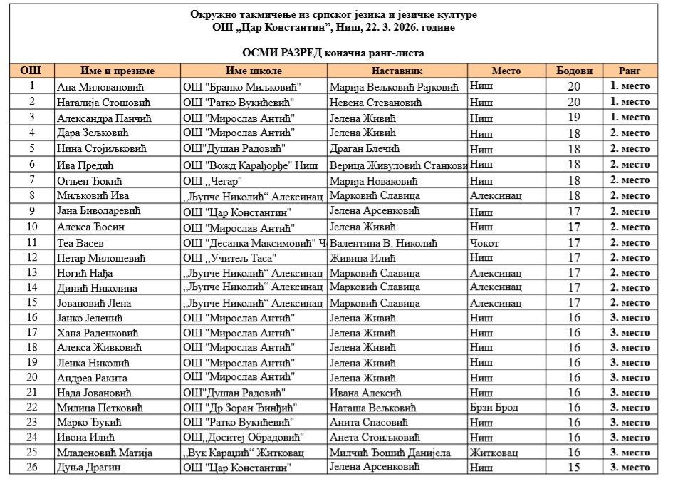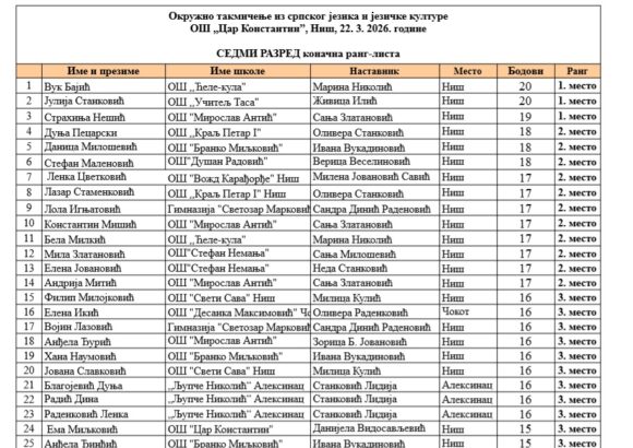 На Окружном такмичењу из српског језика и језичке културе, одржаном у Нишу 22.3, наши ученици поново су заблистали.