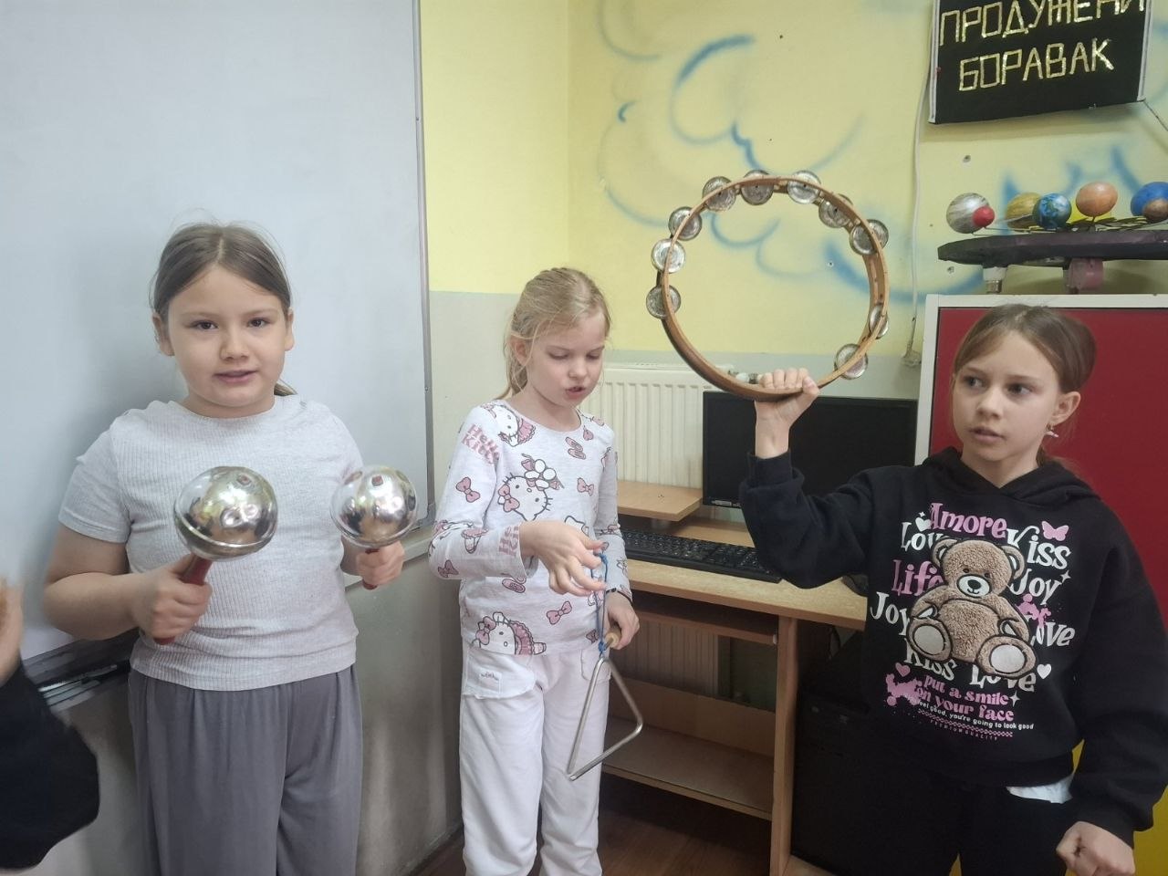 Креативна радионица изазвала је велико одушевљење међу ученицима, који су са радошћу украшавали и испробавали своје инструменте. У наставку активности, деца су се ближе упознала са ритмичким инструментима и имала прилику да их користе, откривајући богатство звука и ритма.