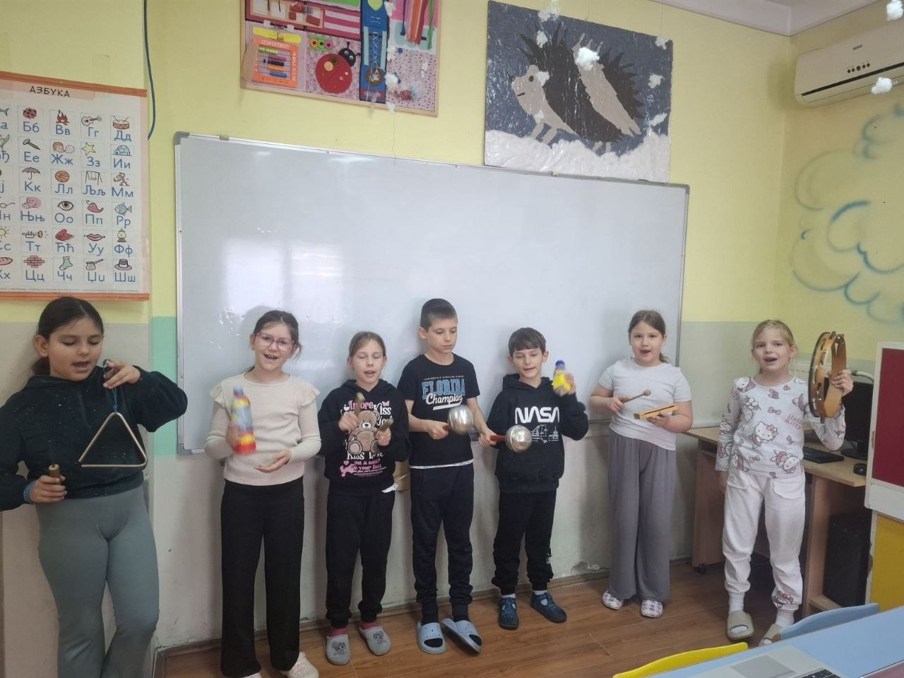 У продуженом боравку наше школе ученици су, заједно са учитељицом Тамаром Тонић, имали прилику да се упознају са Орфовим инструментаријумом. Након занимљиве презентације у PowerPoint-у, деца су са учитељицом приступила изради сопствених ритмичких инструмената – звечки од различитих материјала.
