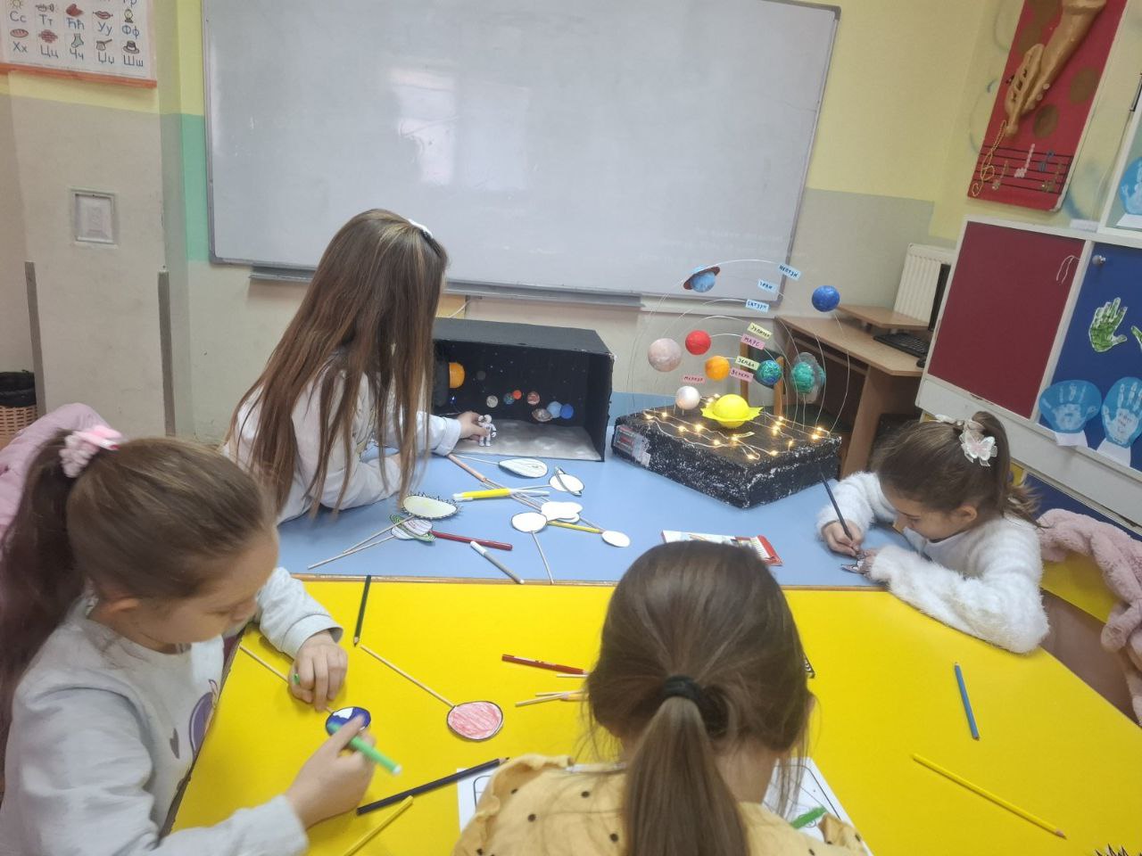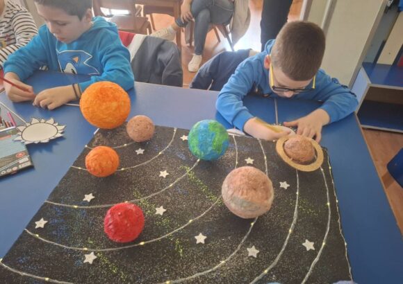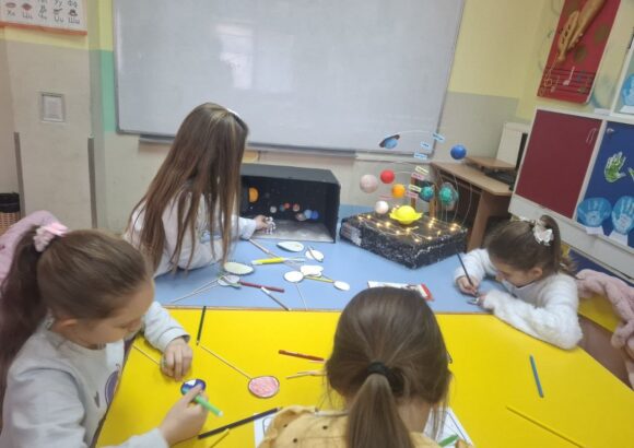 У продуженом боравку наше школе, код учитељице Тамаре Тонић, данас су боравили предшколци из Предшколске установе „Лане“. За њих је припремљена посебна активност – упознавање са планетама Сунчевог система.