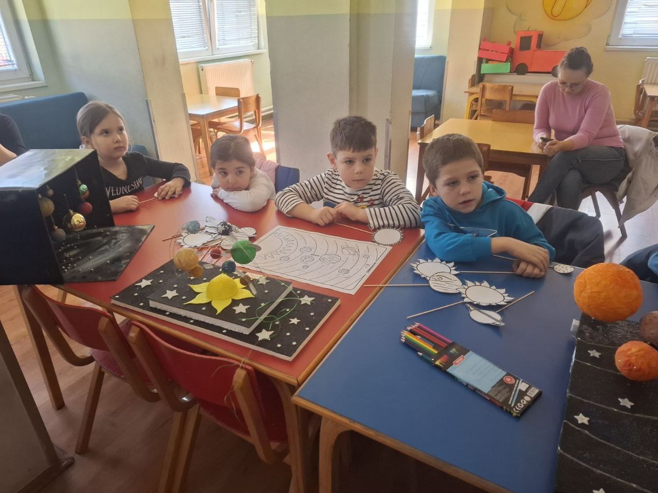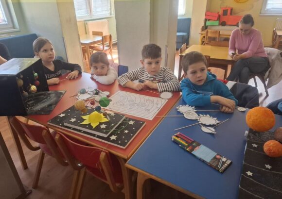 Кроз игру, разговор и занимљиве визуелне приказе, деца су научила како изгледају планете, по чему се разликују и зашто је Сунце важно за живот на Земљи. Са великим одушевљењем пратили су сваку причу.