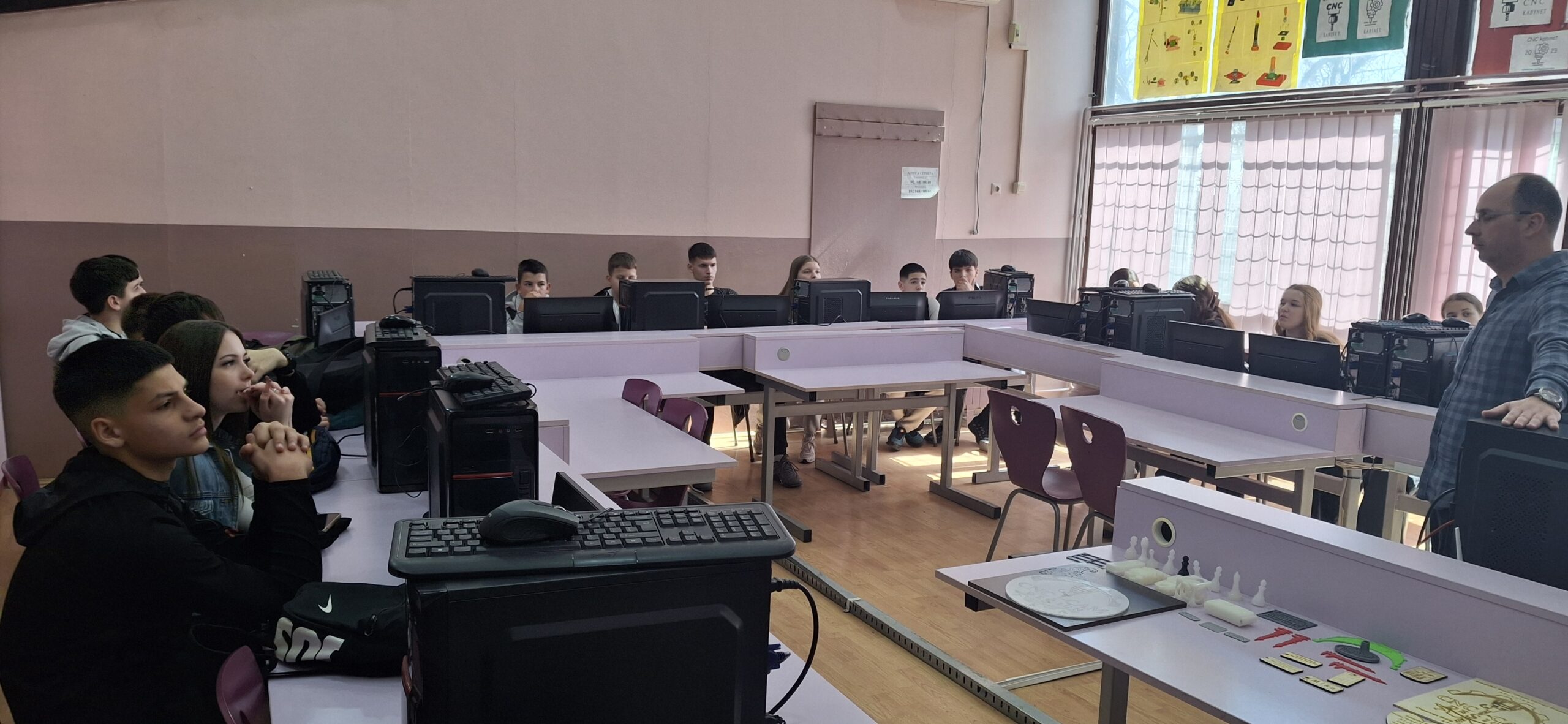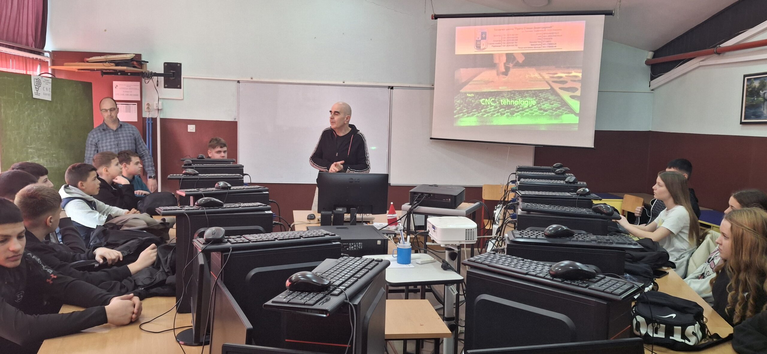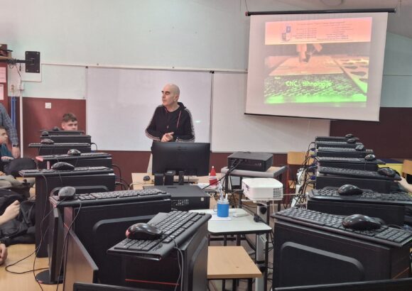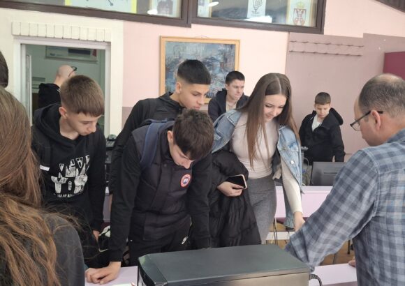 Група ученика осмог разреда наше школе је  дана 10.3.2026. год. посетила Техничку школу у оквиру планираних активности Тима за професионалну оријентацију ученика. Циљ ове посете био је да се ученици ближе упознају са образовним профилима које ова школа нуди, као и са могућностима даљег школовања након завршетка основне школе. Током посете ученике су дочекали професори Техничке школе који су их упознали са радом школе, наставним програмима и савременом опремом која се користи у настави. Осмаци су имали прилику да обиђу кабинете и радионице, где су могли да виде практичне радове ученика и демонстрације појединих занимања. Посебно интересовање ученици су показали за смерове који подразумевају практичан рад и примену савремених технологија.