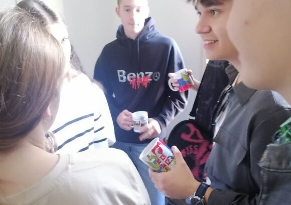 Ученици наше школе демонстрирали су поступак израде шољица и штампе на њима у оквиру Учeничке задруге, коју води наставник информатике Слободан Дамјановић.