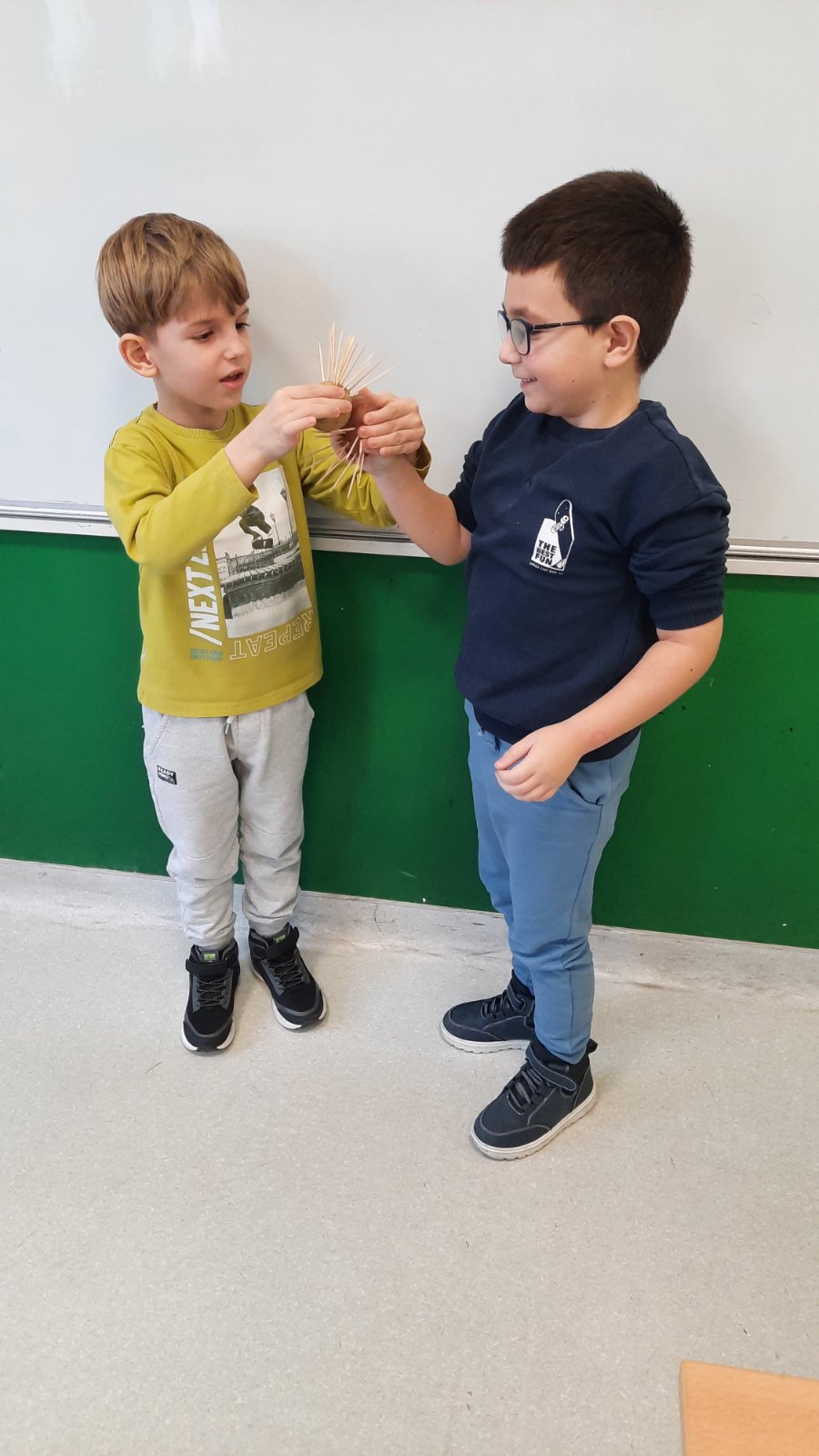 У наставку дружења, прваци и гости разговарали су о причи Артура Шопенхауера „Бодљикава прасад“, а затим су у паровима израђивали мале „бодљикаве прасади“ и кроз игру покушавали да пронађу начин како да се ове фигуре приближе једна другој, а да се не „повреде“. Активност је изазвала много радозналости, смеха и заједничких идеја.