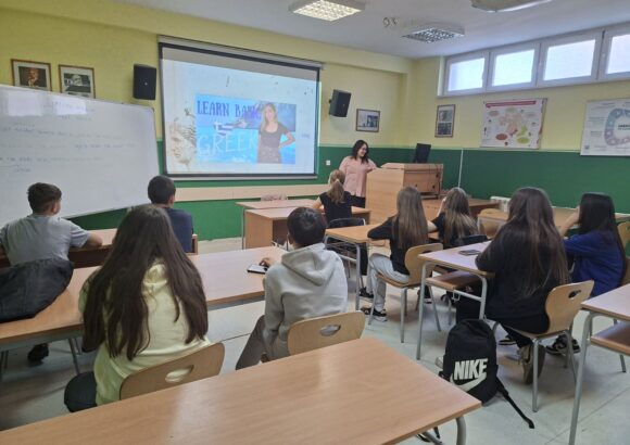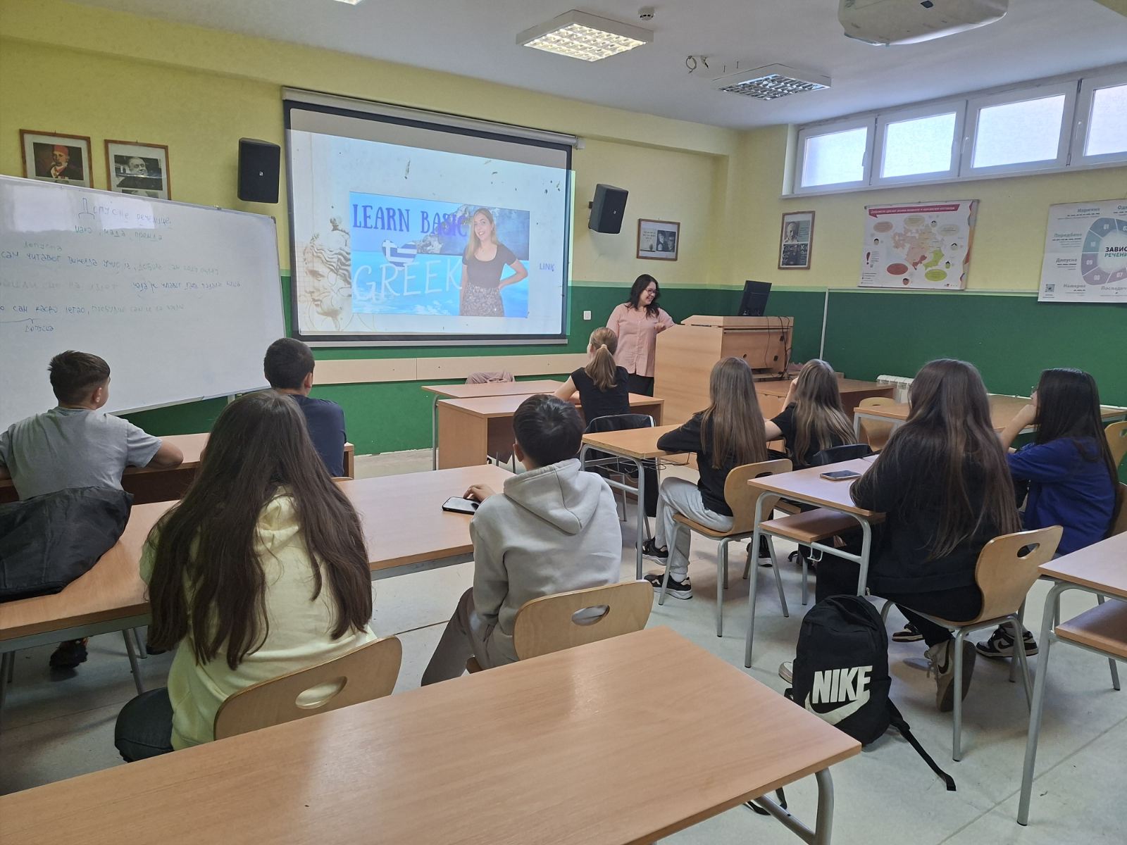 Финалном наставном часу су истовремено присуствовали сви учесници пројекта. Наставница је демонстрирала употребу мобилних апликација за комуникацију, навигацију и личну безбедност, које могу бити корисне како током пројекта, тако и у неким другим животним ситуацијама. Основама грчког језика научила нас је изворна говорница кроз Јутјуб снимак у ком смо чули најосновнији вокабулар и фразе. Да смо их делимично савладали и да је ученике одушевио језик доказали су они сами кроз вежбу писања дневника, која је уследила након језичке радионице.