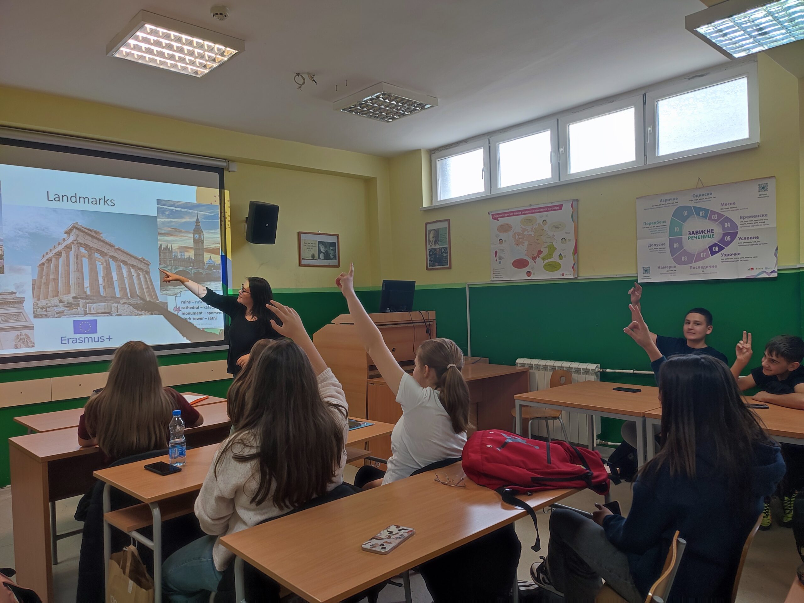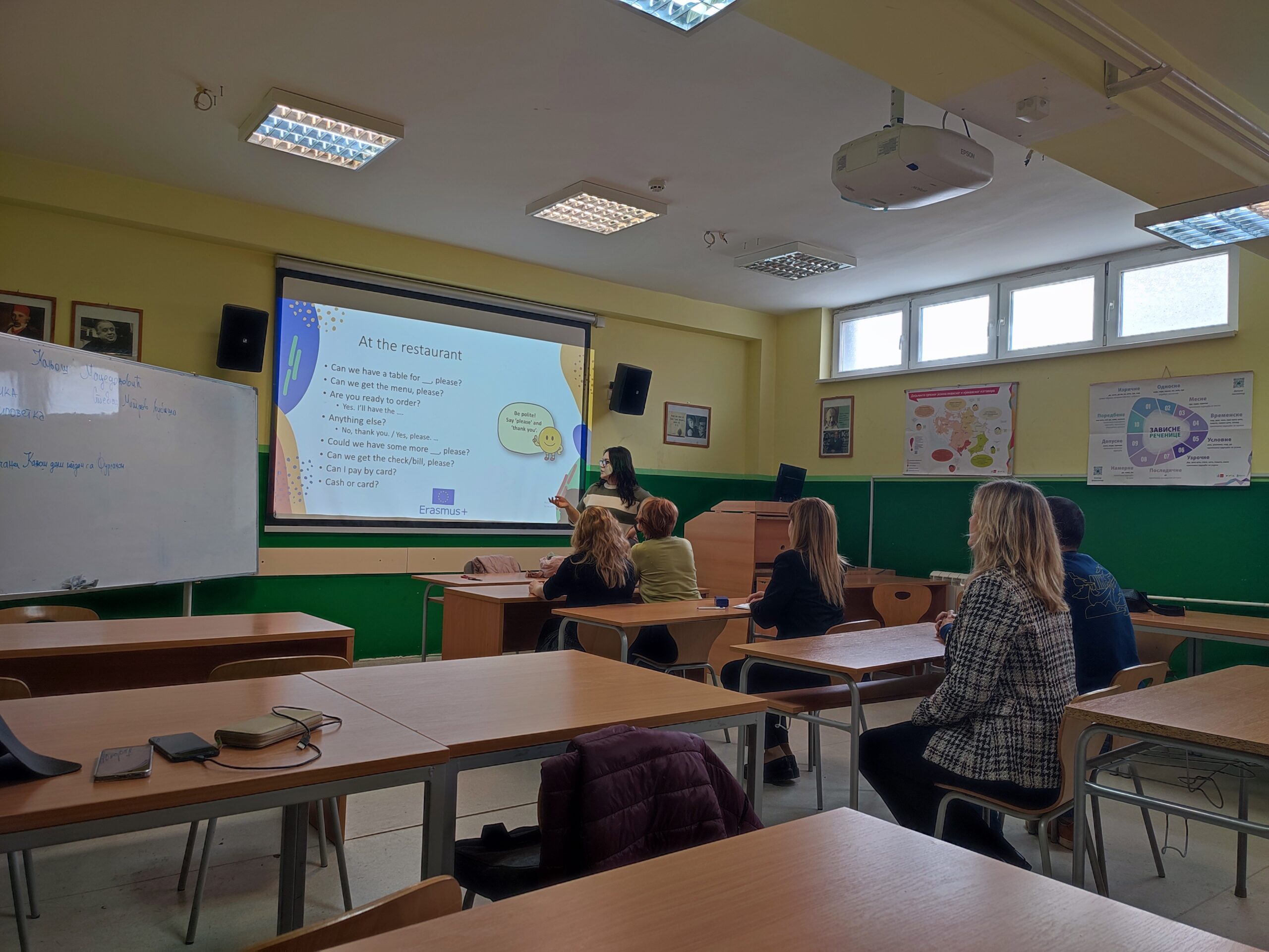 У протеклом периоду, уочи одласка на Еразмус студијско путовање, ученици и наставници који учествују у пројекту, имали су радионице енглеског језика са наставницом Анђелом Симић, такође чланицом наставног особља које за свега неколико дана одлази у посету Тринаестој основној школи у Глифади, која ће угостити ученике и наставнике наше школе на недељу дана.