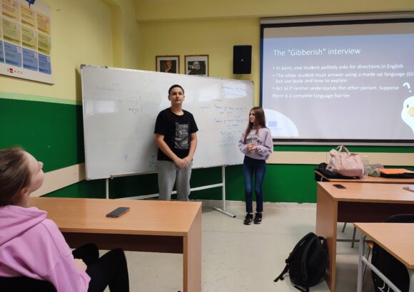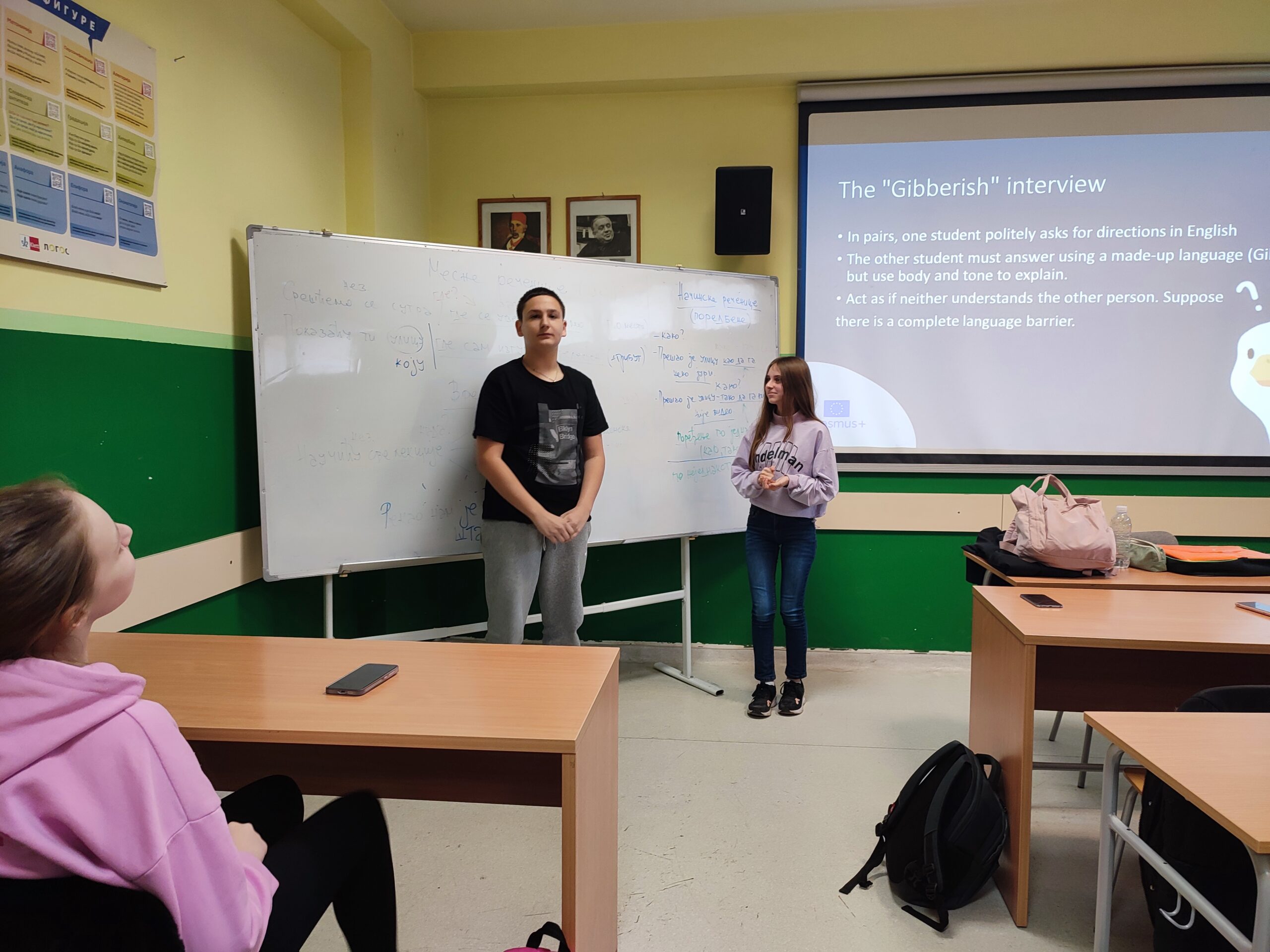 На првом припремном часу енглеског језика учесници пројекта подсетили су се уобичајених израза који се користе при упознавању нових људи, који ће им бити најкориснији по доласку, али и током целог боравка. Читали су и осмишљавали дијалоге, и вежбали представљање самог себе и других.