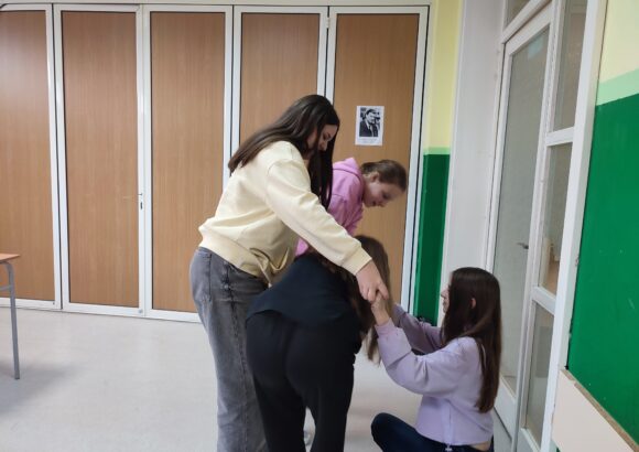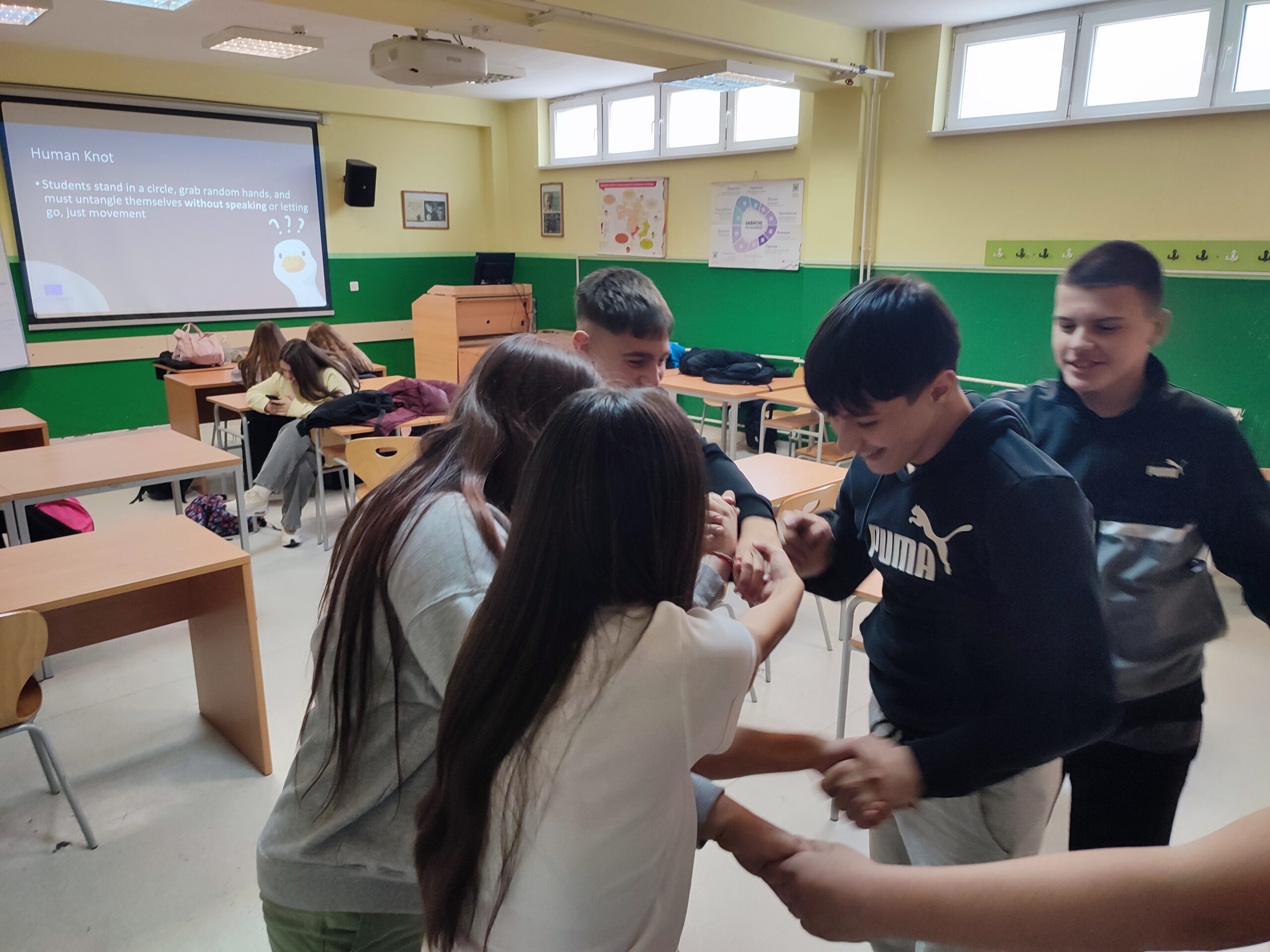 Трећа лекција обрађивала је мало другачији садржај. Тумачили смо језичко значење из контекста и говора тела, те и научили да је говор често и најмање важан део комуникације са саговорницима који говоре различитим језиком. Ученици нису само вежбали да самоувереније комуницирају са странцима, него су направили „људски чвор“ и успешно се размрсили без иједне речи, што их учи да се проблем може успешно решити и невербалним тимским радом.