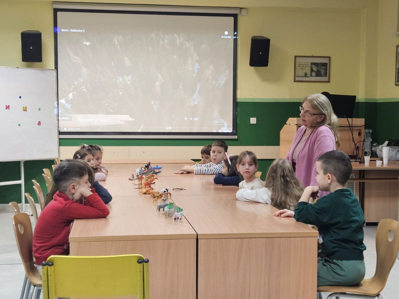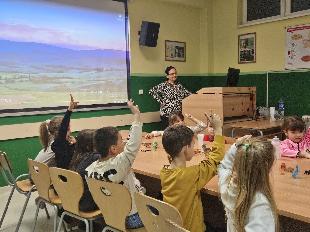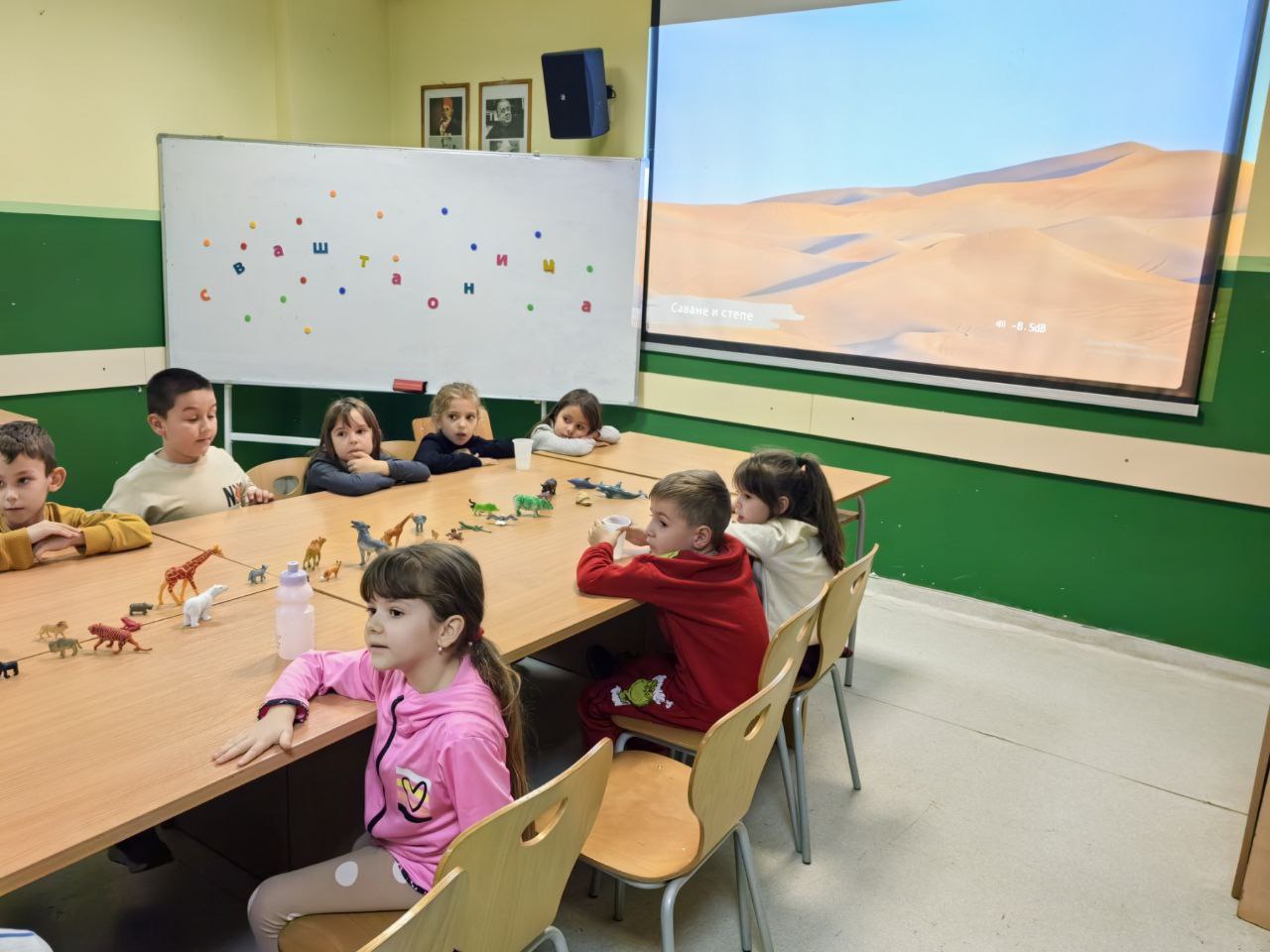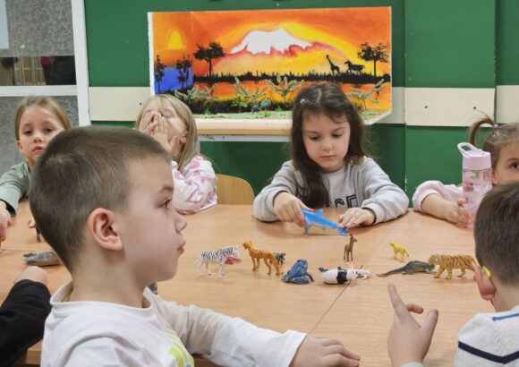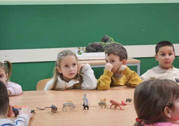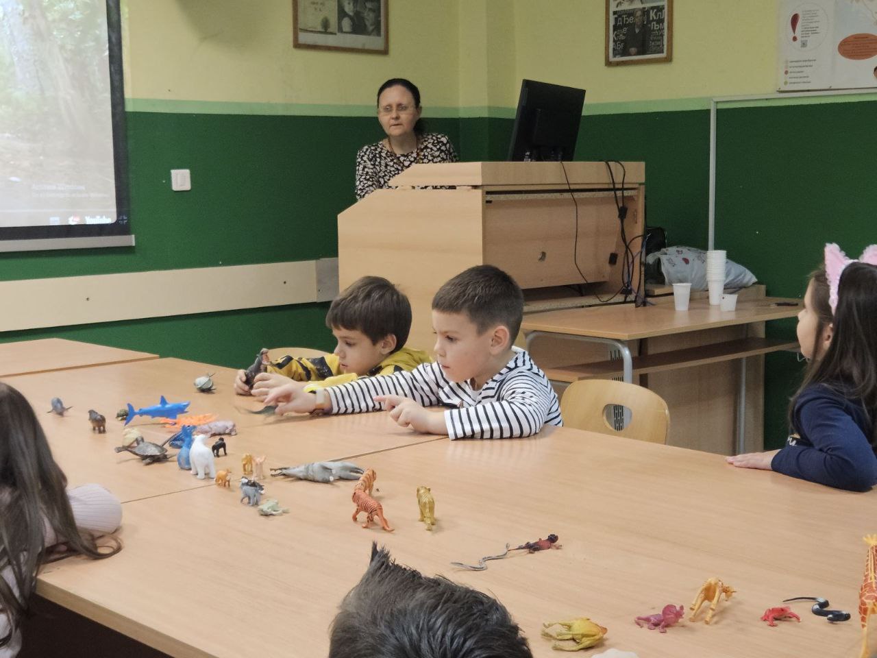 Игрa откривалице: на видео-биму смо полако откривали један по један део слике, а деца су погађала која се животиња крије иза квадратића. Смех, узбуђење и права мала такмичарска атмосфера!