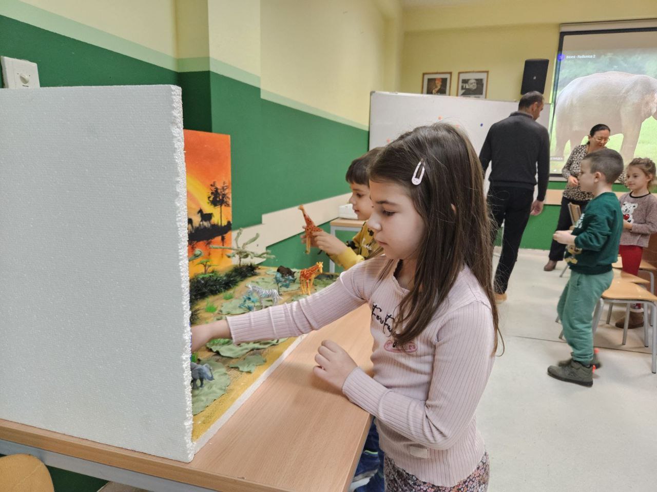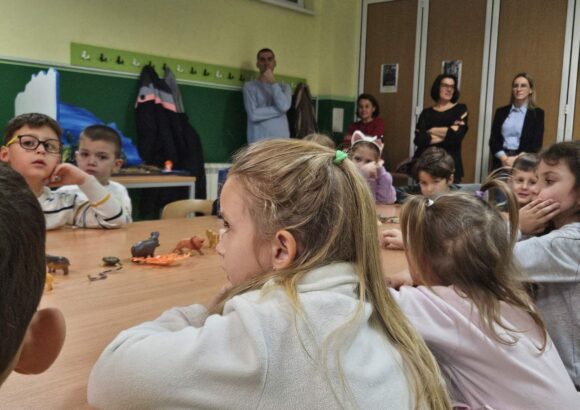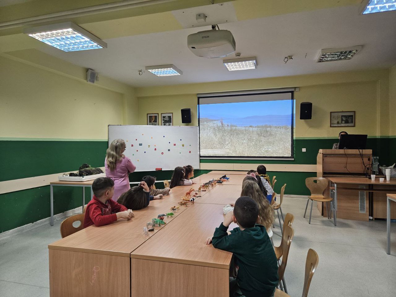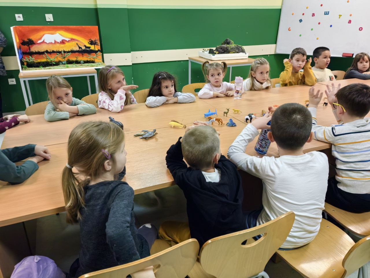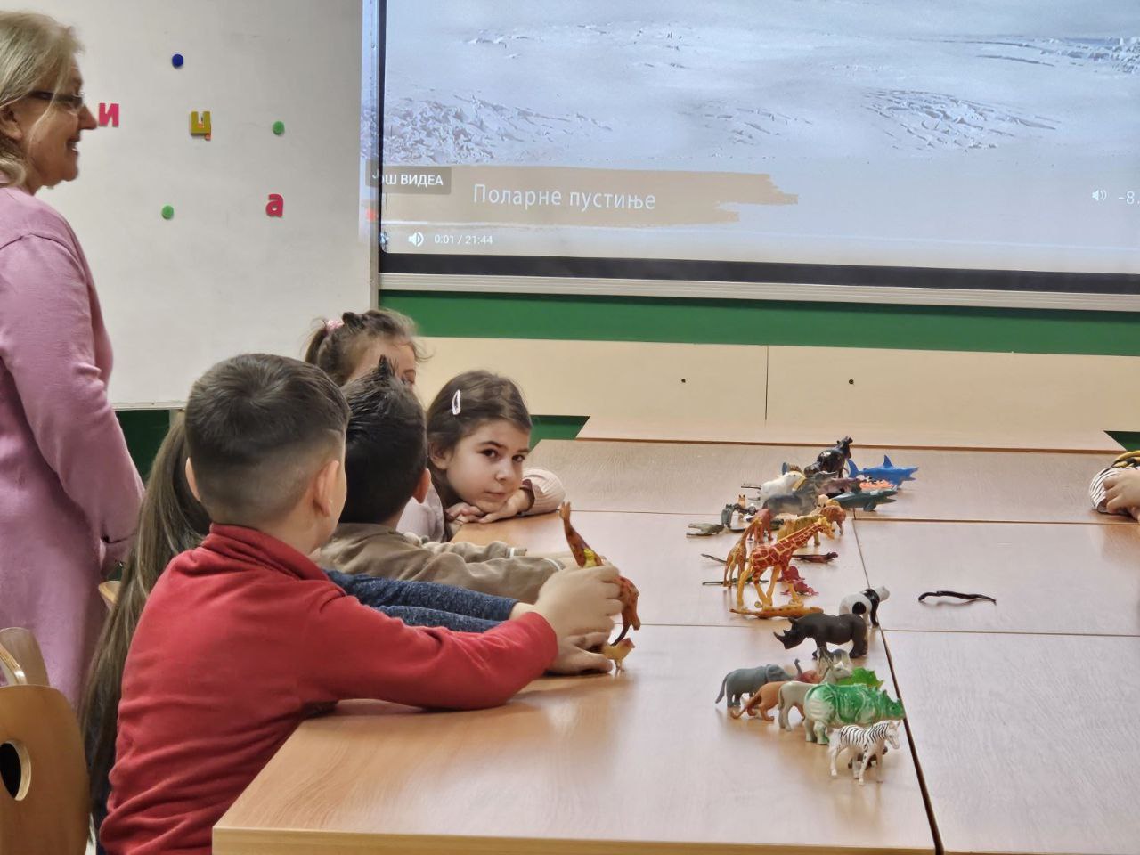 Игрa откривалице: на видео-биму смо полако откривали један по један део слике, а деца су погађала која се животиња крије иза квадратића. Смех, узбуђење и права мала такмичарска атмосфера!