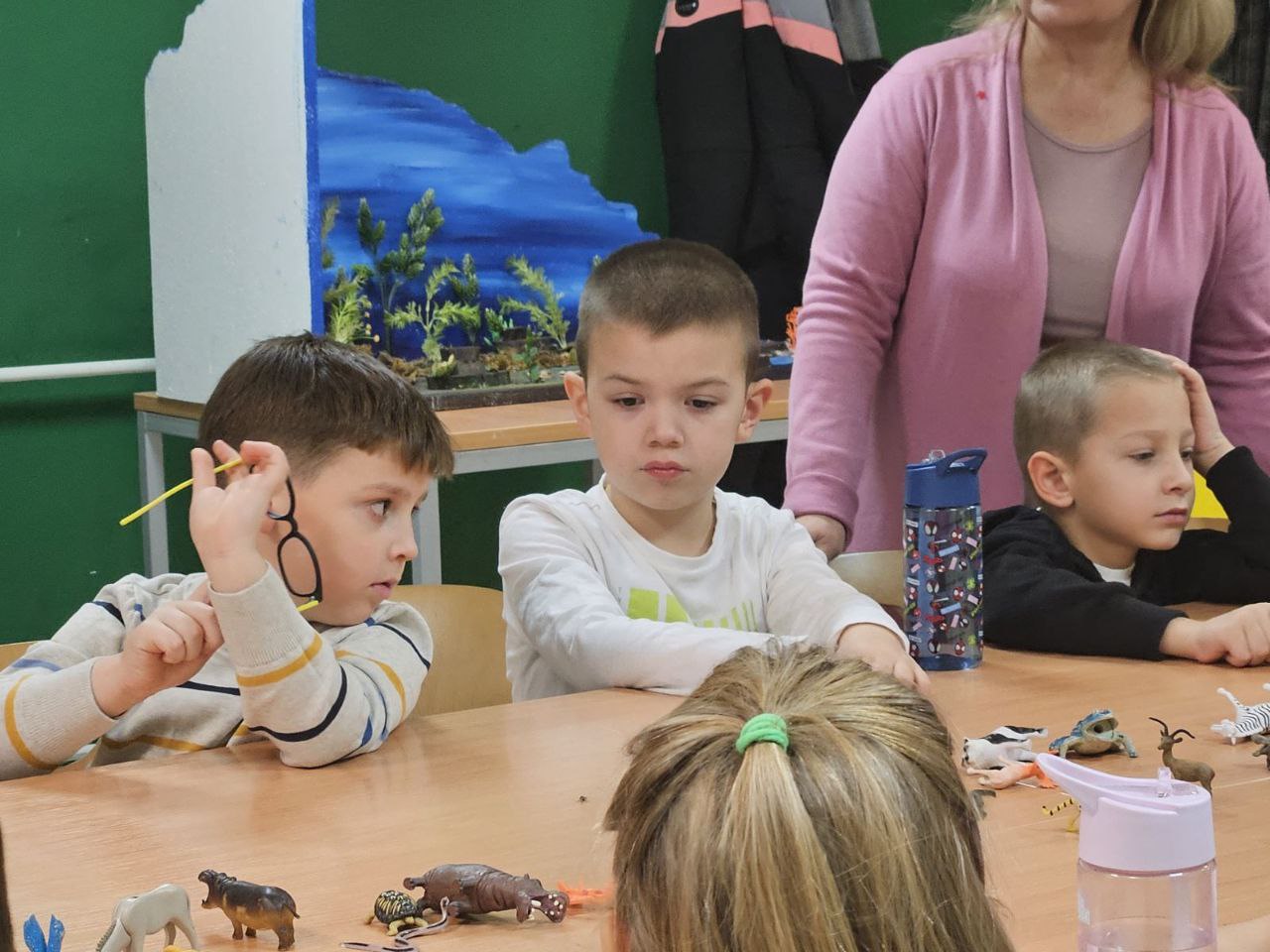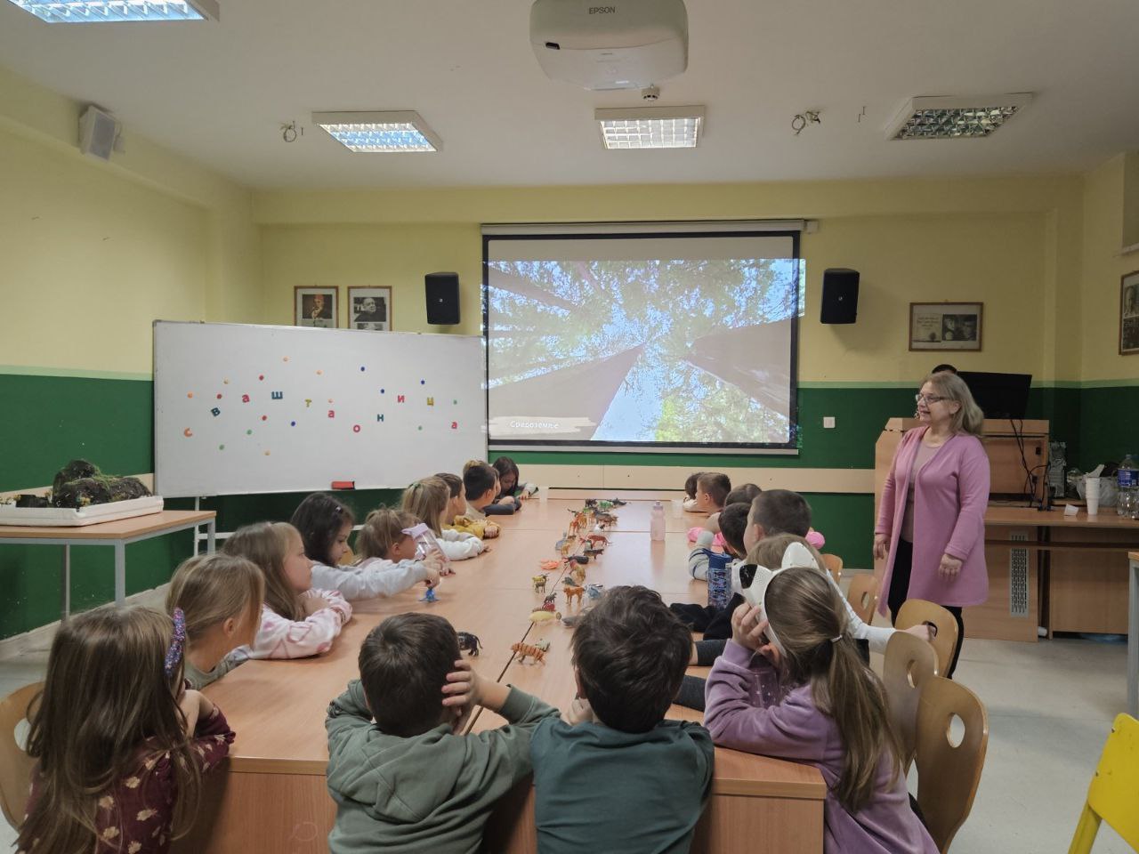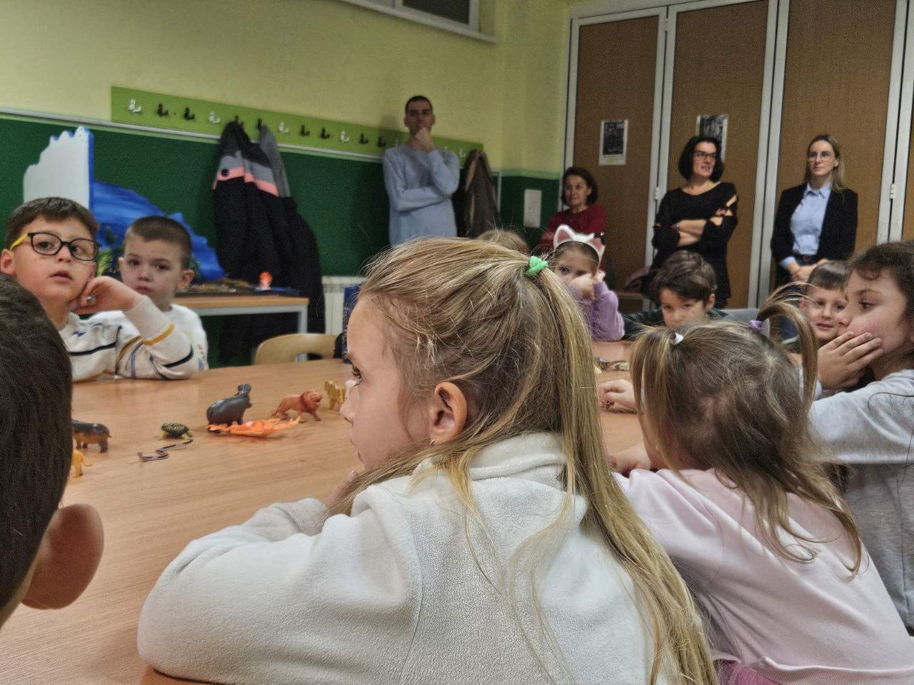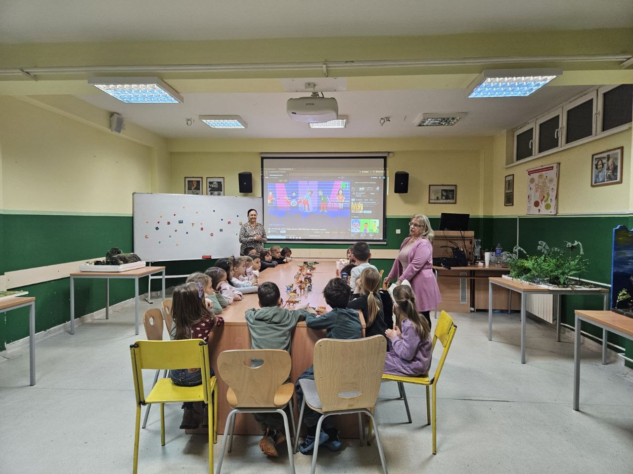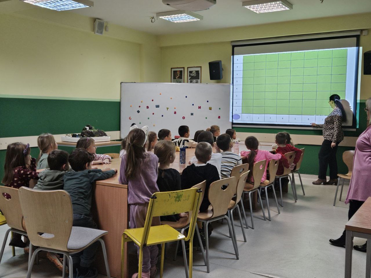 Игрa откривалице: на видео-биму смо полако откривали један по један део слике, а деца су погађала која се животиња крије иза квадратића. Смех, узбуђење и права мала такмичарска атмосфера!