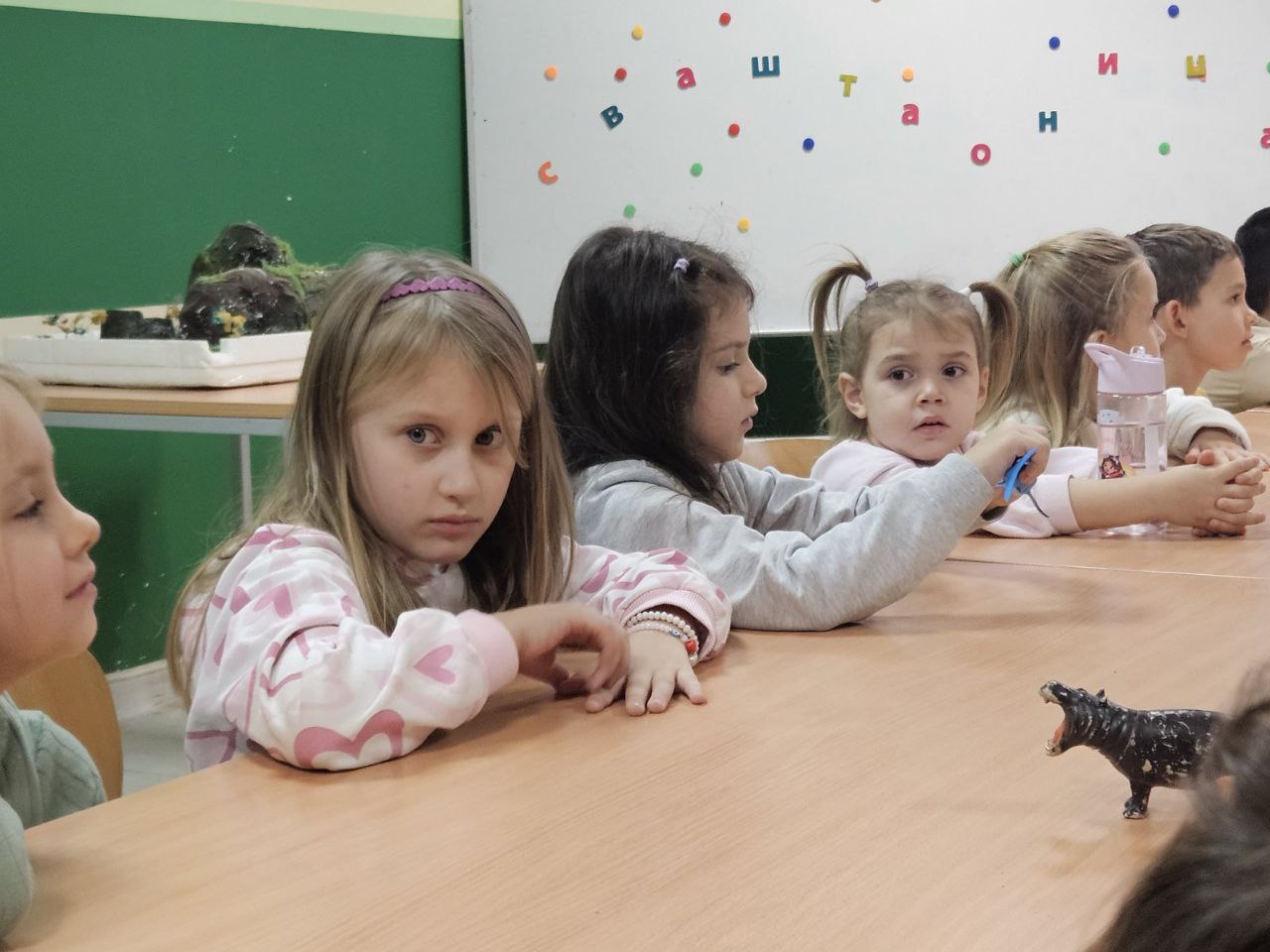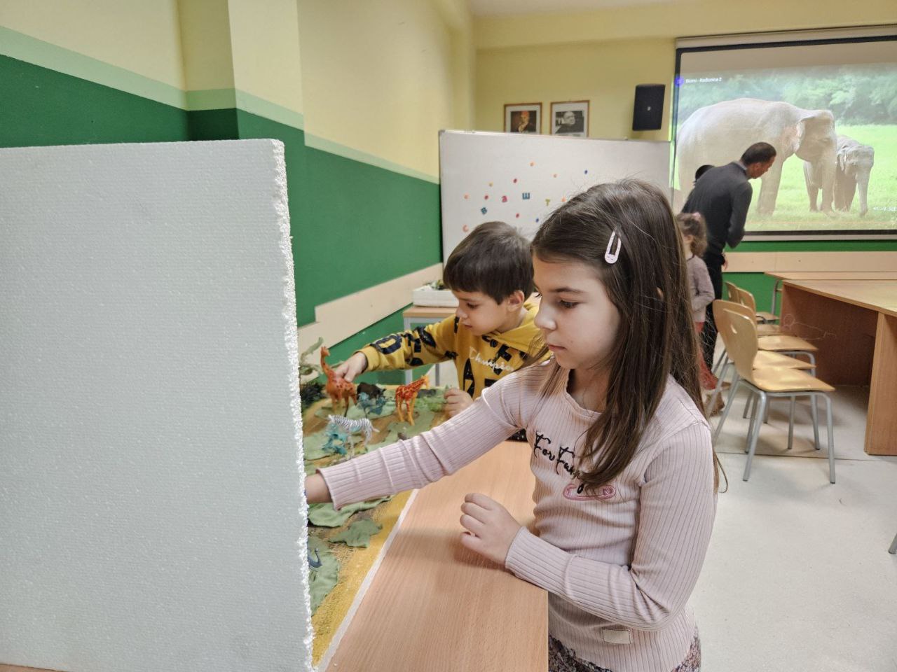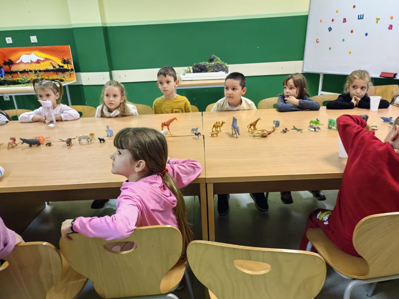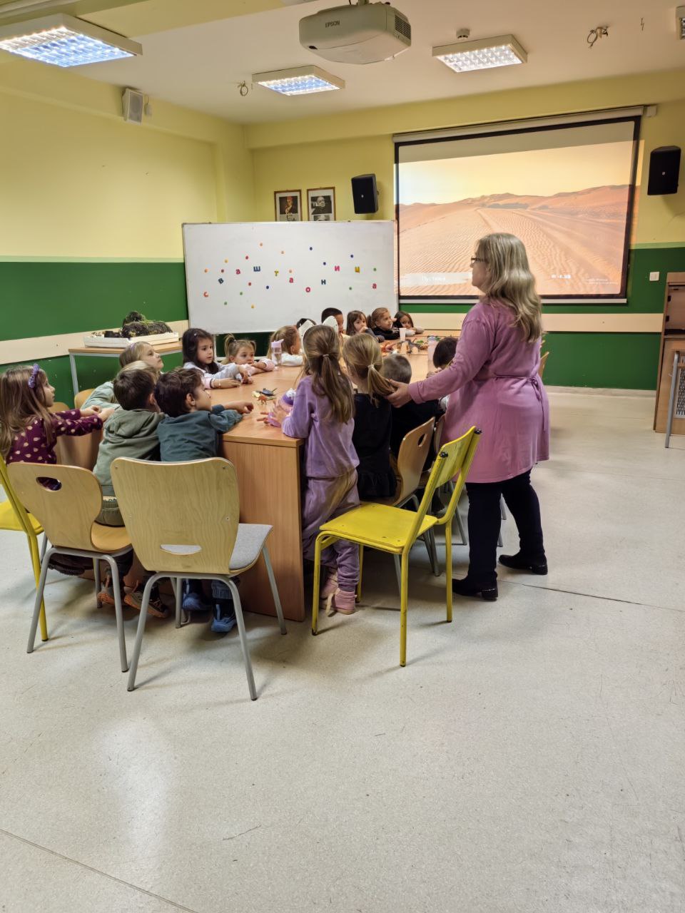 Игрa откривалице: на видео-биму смо полако откривали један по један део слике, а деца су погађала која се животиња крије иза квадратића. Смех, узбуђење и права мала такмичарска атмосфера!