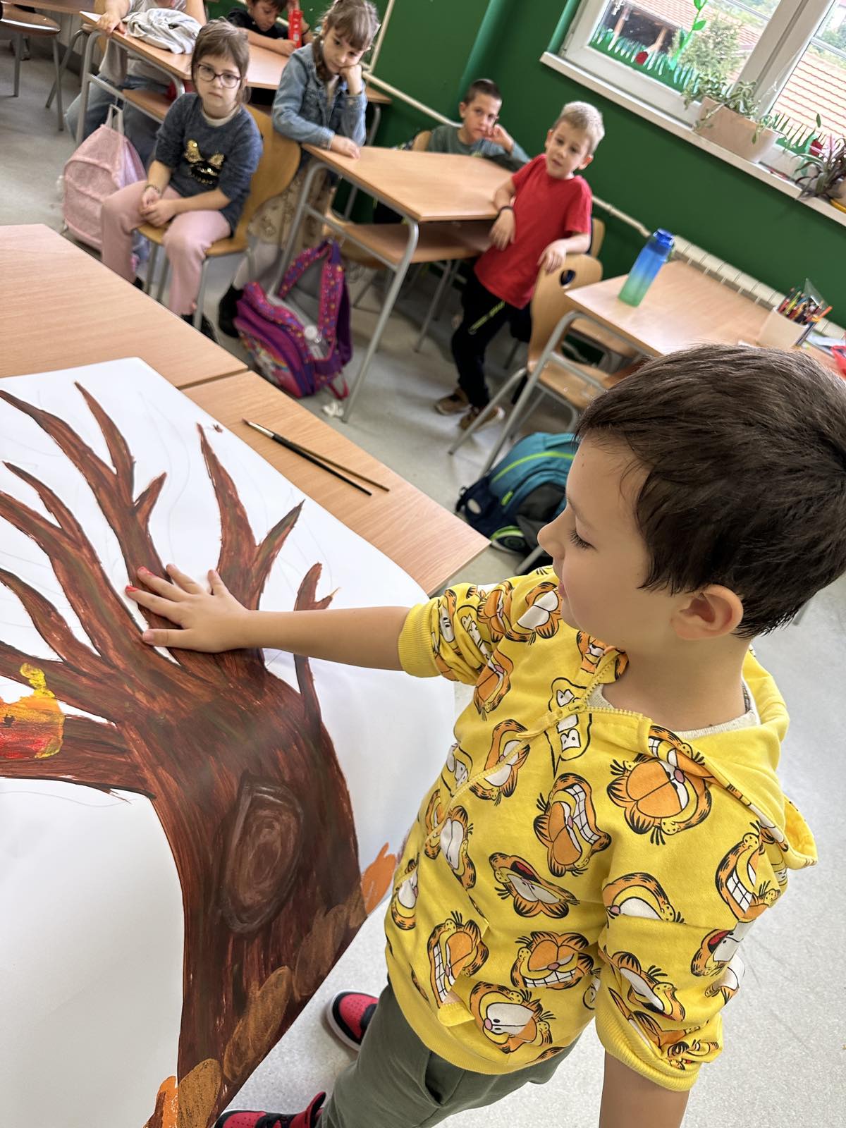 Дечја недеља се, традиционално, одржава сваке године у првој недељи октобра, па je тако и ове године обележена од 6. до 12. октобра под слоганом „Имам право да се играм, да се смејем, маштам, стварам и у бољи свет претварам”. Ученици првог разреда, са својим учитељицама Наташом, Јасном, Даницом и Мајом су били креативни и осликали су своје одељењско дрвеће својим прстићима уз разговор о лепим речима и начину како да се сви осећамо лепо и опуштено и како да направимо наш свет пун љубави и другарства.