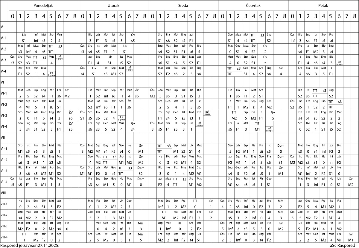 Први измењен режим коришћења учионица почиње од УТОРКА 2.12.2025. јер у понедељак крећу припремни радови.