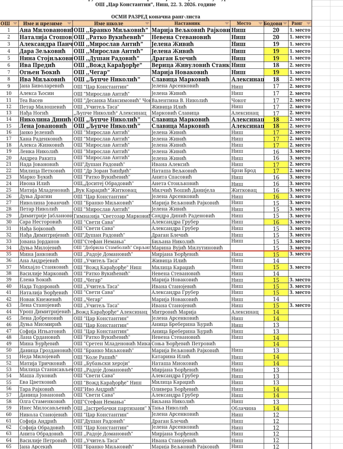 Са задовољством објављујемо лепе вести које су нас обрадовале. Након извршене ревизије тестова Друштва за српски језик са окружног нивоа такмичења, праг пролазности од 18 бодова, оствариле су чак три ученице наше школе изборивши пласман на републичко такмичење. Овај резултат представља потврду њиховог знања, труда и посвећености.