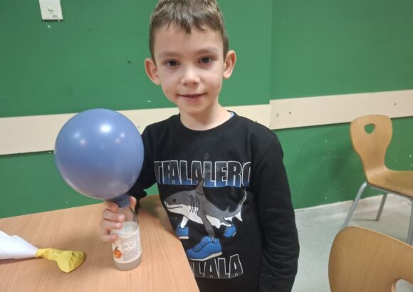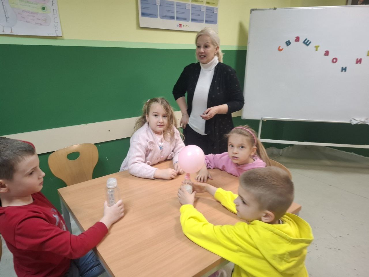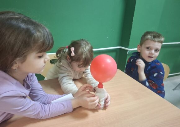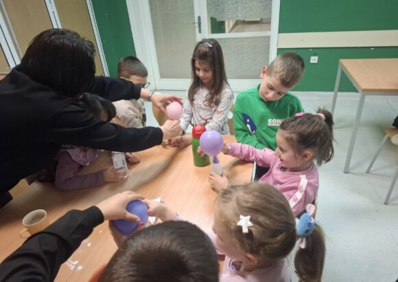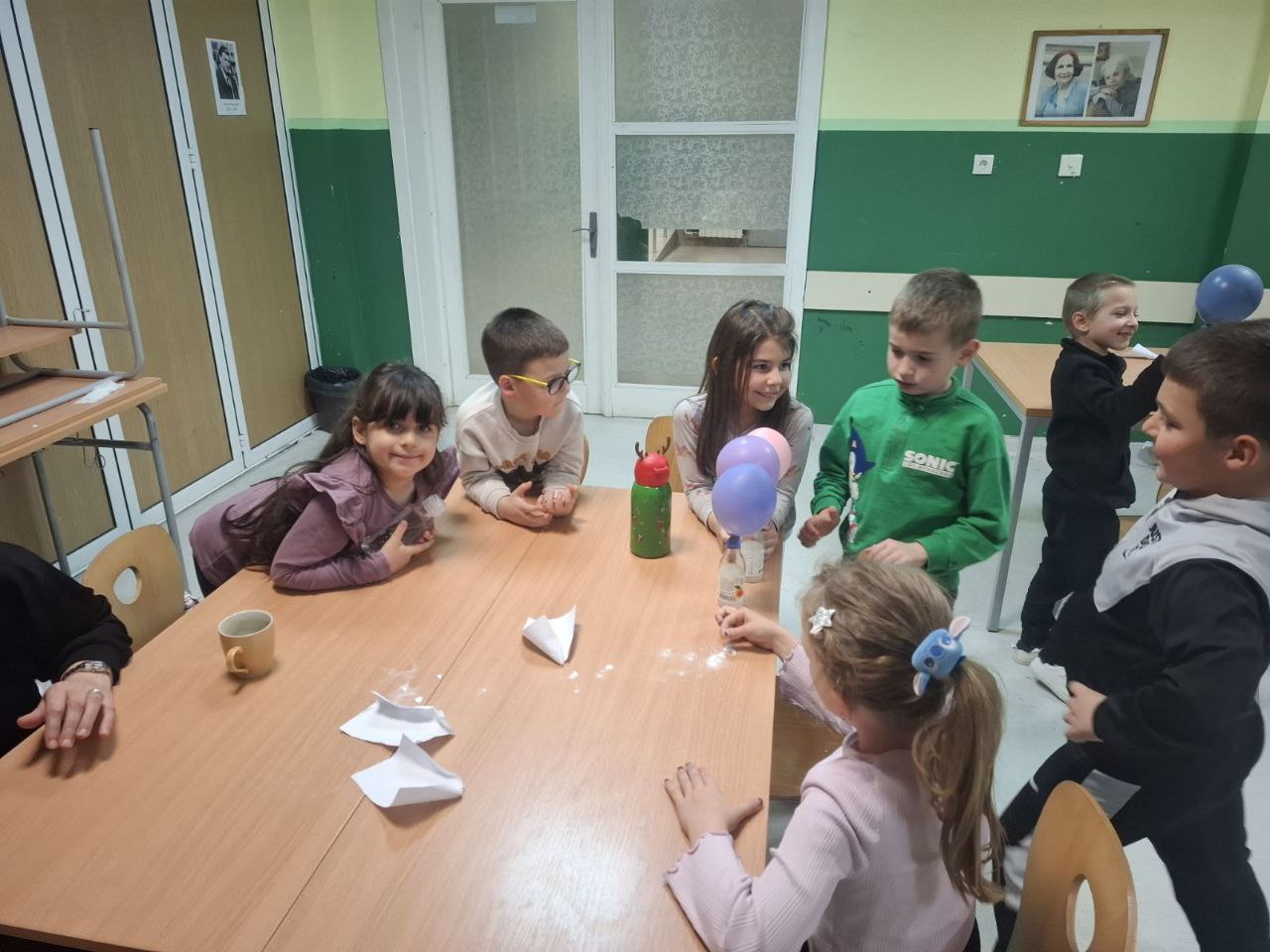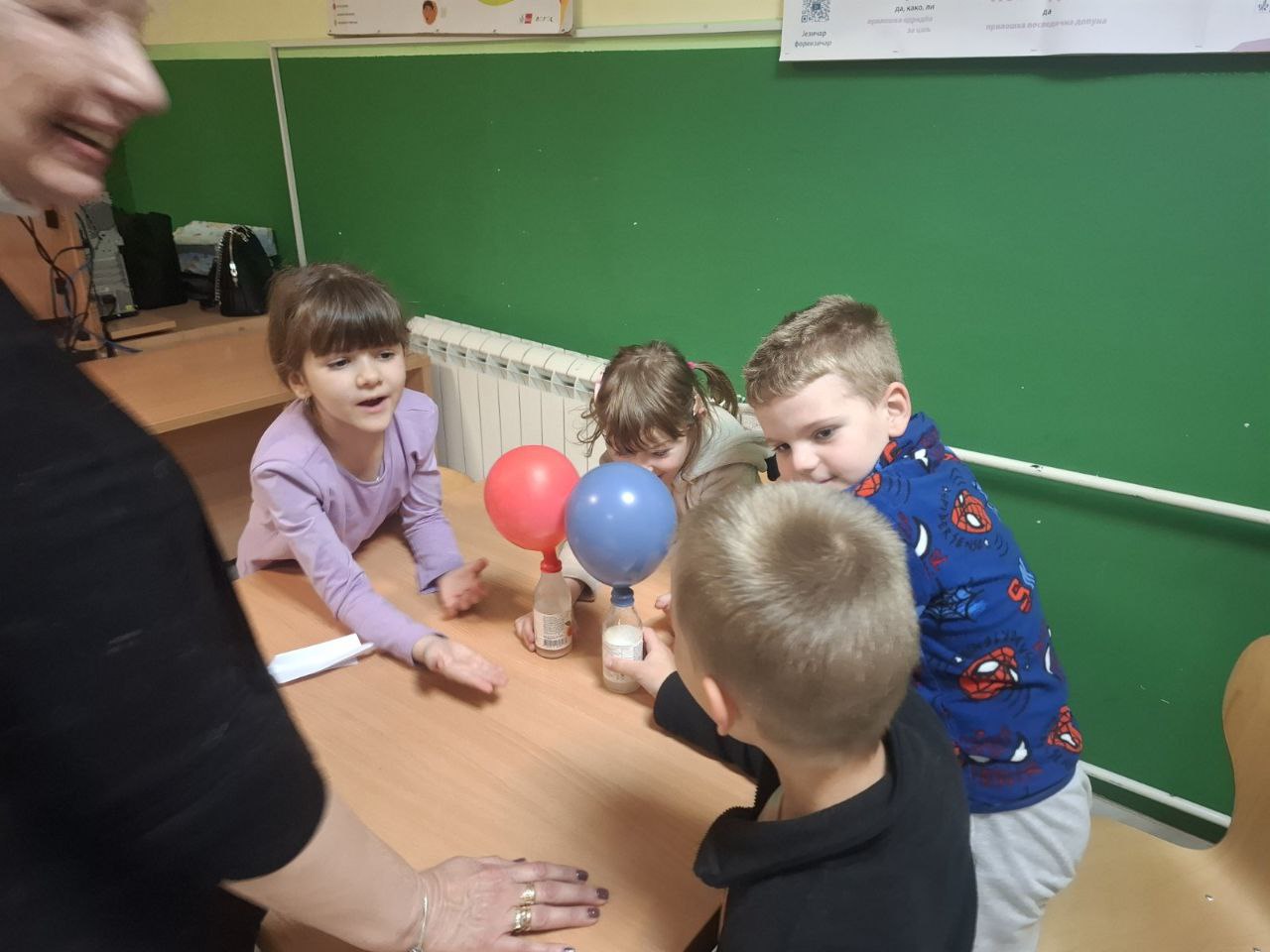 Посебну пажњу посветили смо „невидљивим јунацима“ из ваздуха – кисеонику и угљен-диоксиду. Кроз огледе смо откривали ко ствара кисеоник, зашто нам је неопходан за живот и како помаже сагоревању, иако сам не гори. Са друге стране, угљен-диоксид нас је изненадио својом „супермоћи“ – њиме смо гасили пламен и пунили балоне! Уз много смеха и узбуђења, сваштаоничари су научили да и оно што не видимо може бити веома важно.