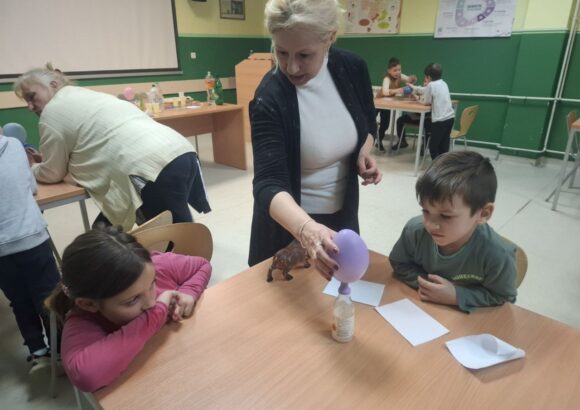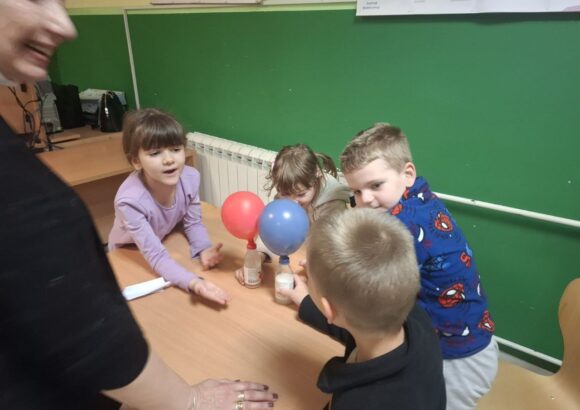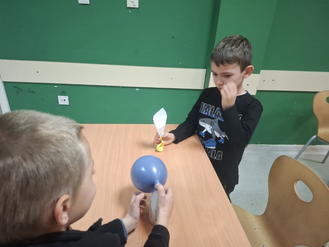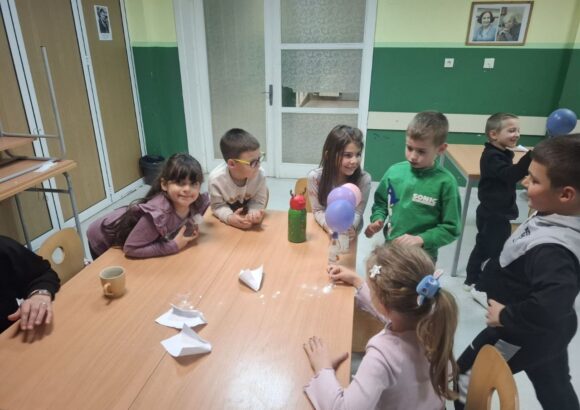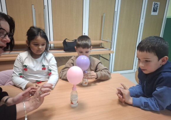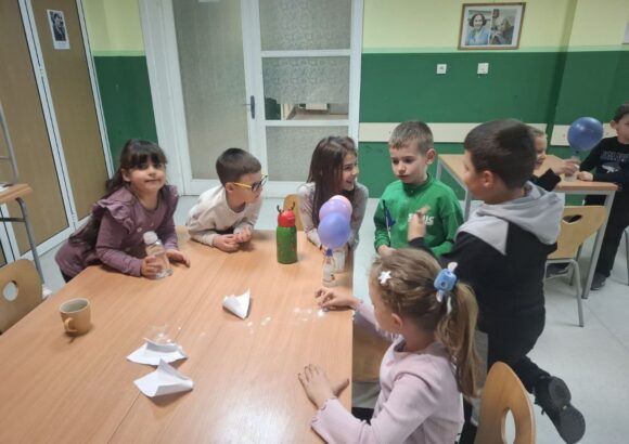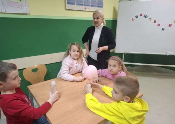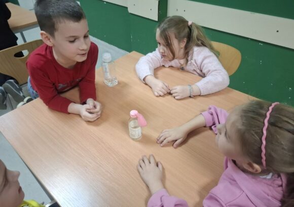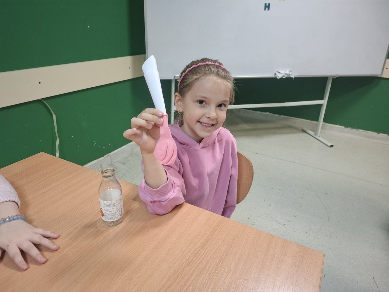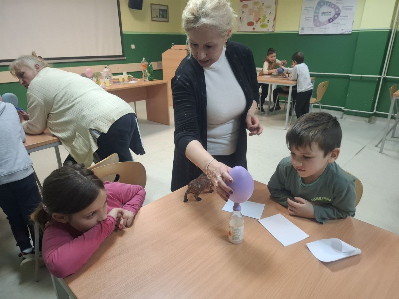 Посебну пажњу посветили смо „невидљивим јунацима“ из ваздуха – кисеонику и угљен-диоксиду. Кроз огледе смо откривали ко ствара кисеоник, зашто нам је неопходан за живот и како помаже сагоревању, иако сам не гори. Са друге стране, угљен-диоксид нас је изненадио својом „супермоћи“ – њиме смо гасили пламен и пунили балоне! Уз много смеха и узбуђења, сваштаоничари су научили да и оно што не видимо може бити веома важно.