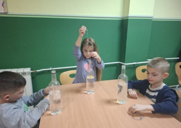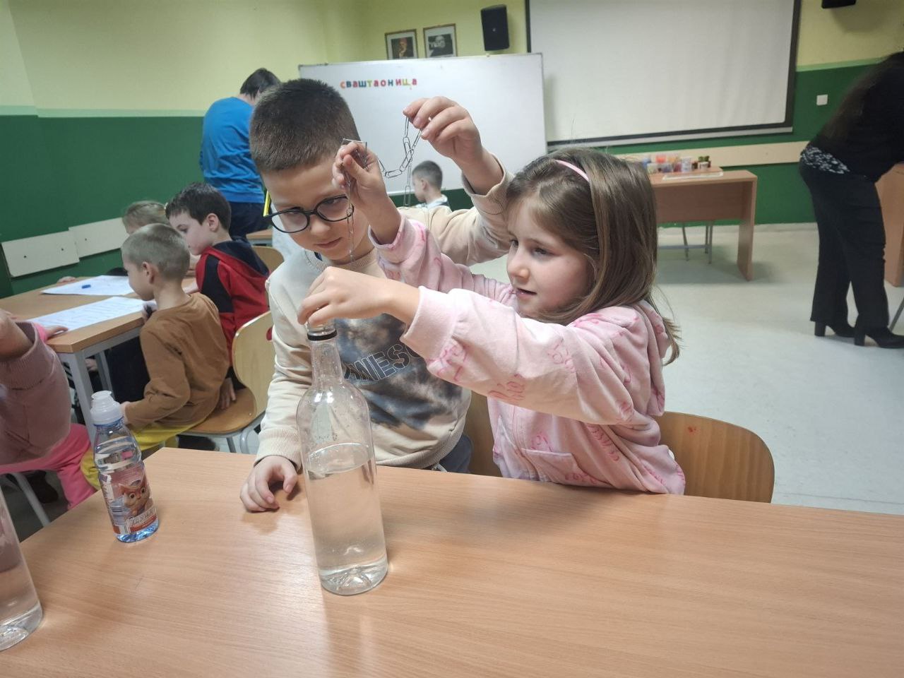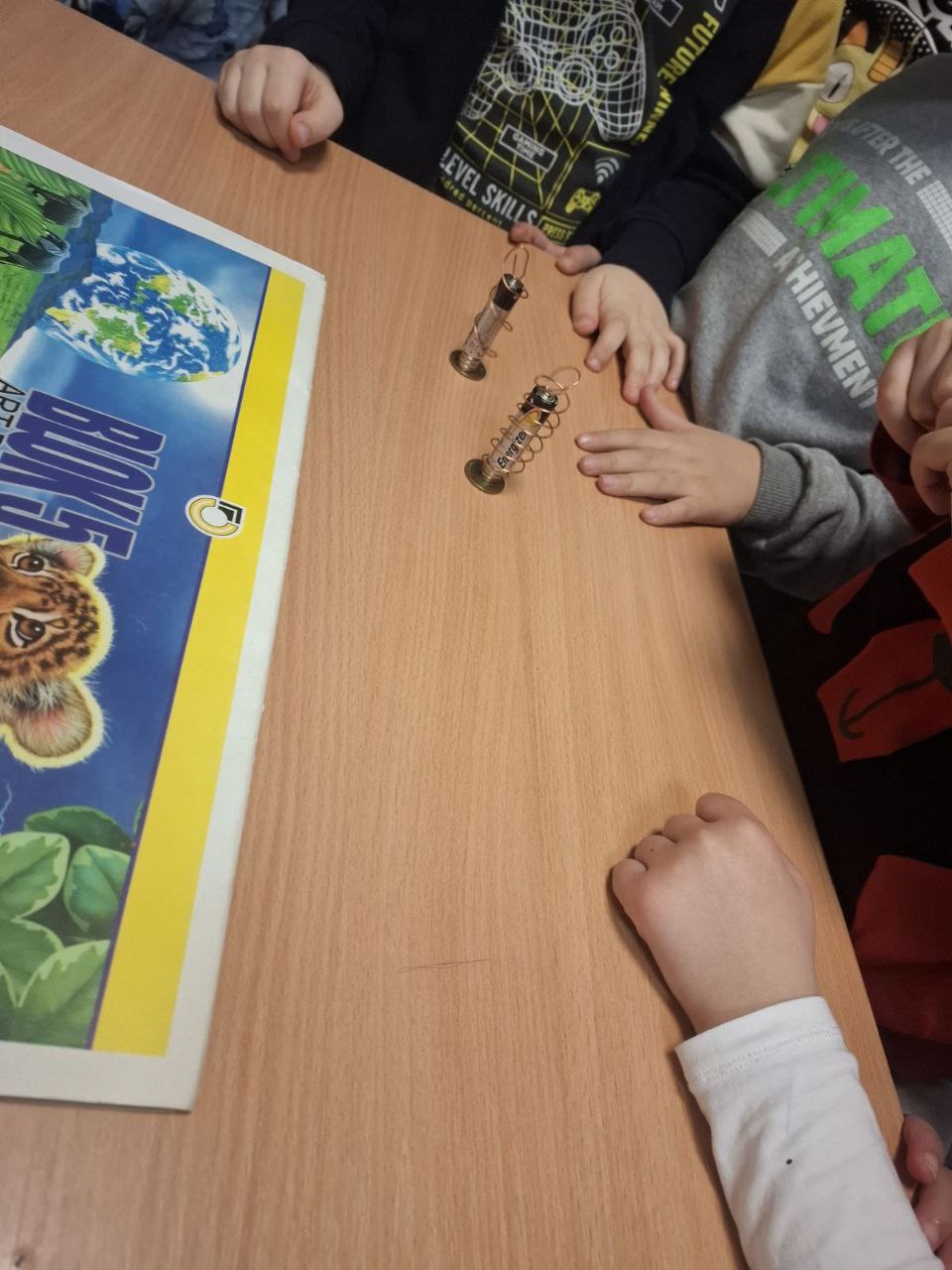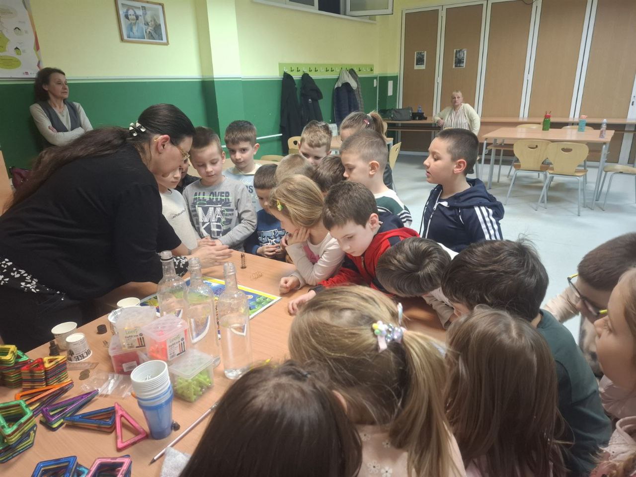 Разговарали смо о томе шта су магнети, како настаје магнетно поље, шта су магнетни полови, зашто се неки предмети привлаче, а неки не реагују на магнет. Посебно занимљиво било је откриће да магнети могу да делују кроз ваздух, воду, па чак и кроз чврсте предмете, што смо одмах проверили кроз низ малих огледа и практичних задатака.
