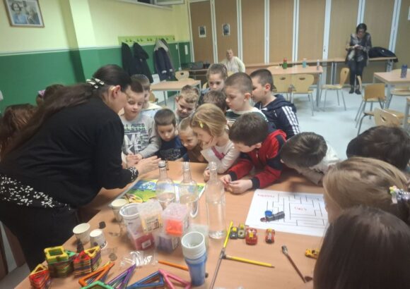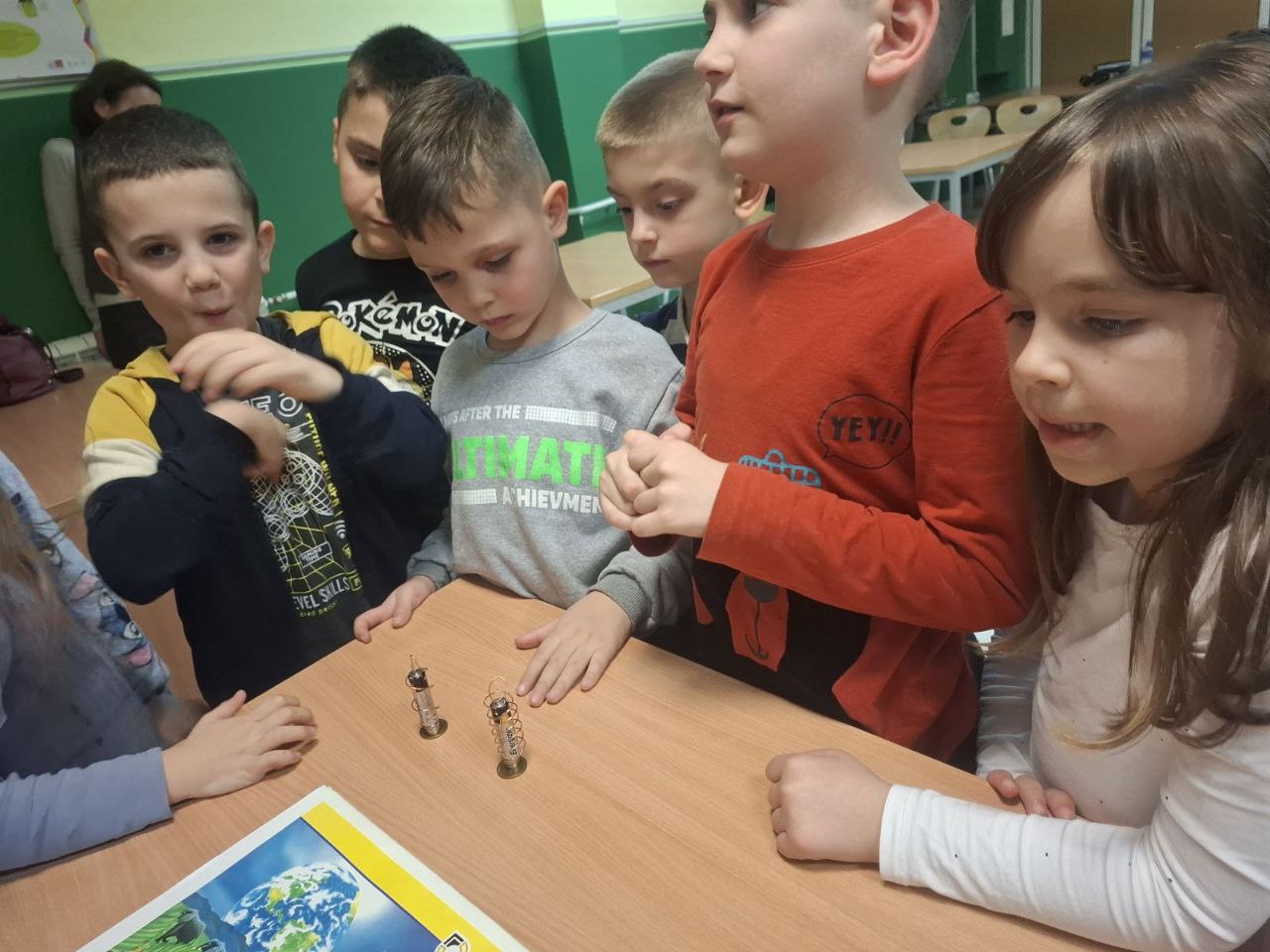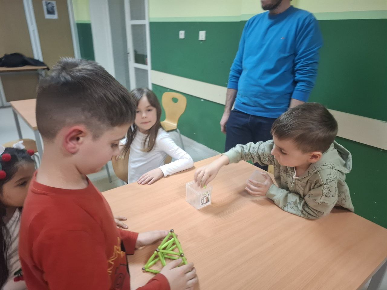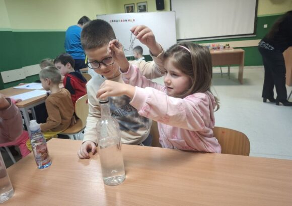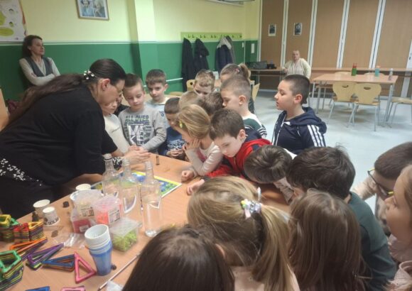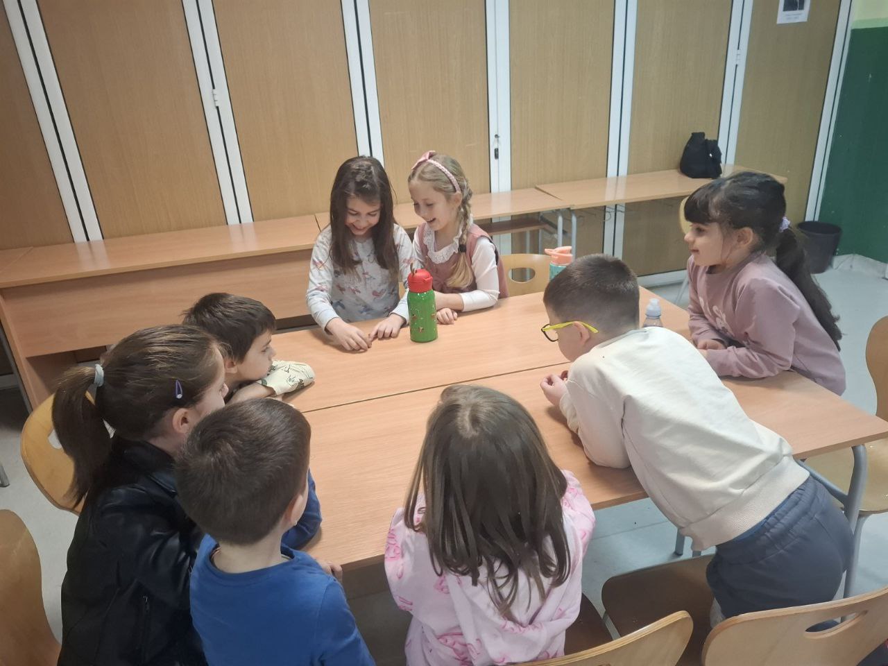 Разговарали смо о томе шта су магнети, како настаје магнетно поље, шта су магнетни полови, зашто се неки предмети привлаче, а неки не реагују на магнет. Посебно занимљиво било је откриће да магнети могу да делују кроз ваздух, воду, па чак и кроз чврсте предмете, што смо одмах проверили кроз низ малих огледа и практичних задатака.