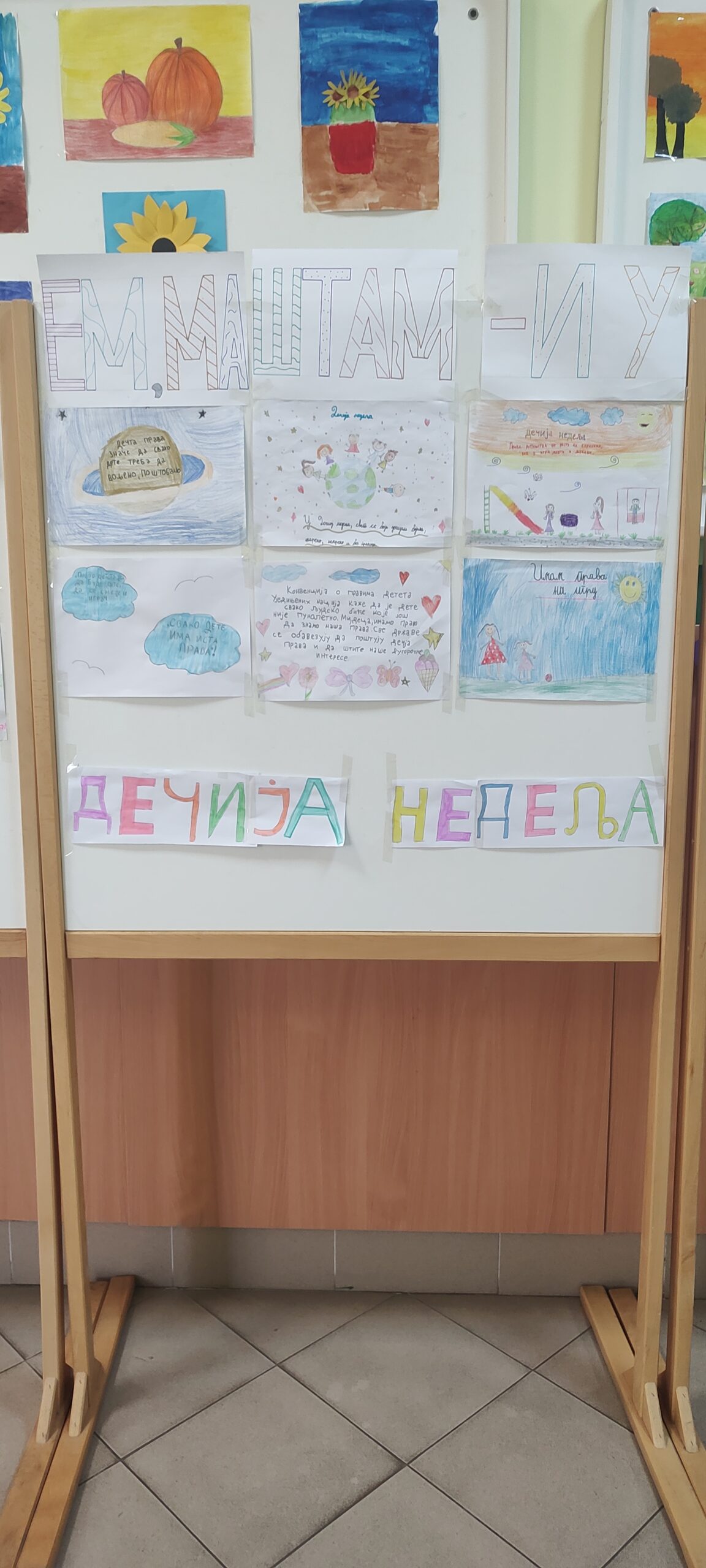 Ученички парламент обележио је Дечију недељу кроз две активности. Прва је била хуманитарна акција. Играчке, дечију гардеробу и обућу донирали су Црвеном крсту у Алексинцу. Ученици чланови парламента су посетили Црвени крст у уторак 07.10.2025 са координатором Ученичког парламента, Милицом Јовановић, и овом приликом су се ближе упознали са радом ове институције. Друга активност била је радионица са ученицима другог разреда коју су организовали координатор Ученичког парламента, педагог школе и учитељице другог разреда. Продукт ове радионице били су ликовни радови од којих је направљена изложба у школи.