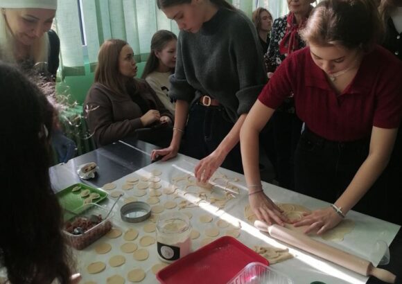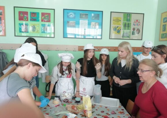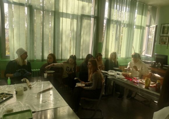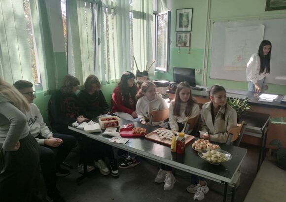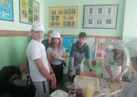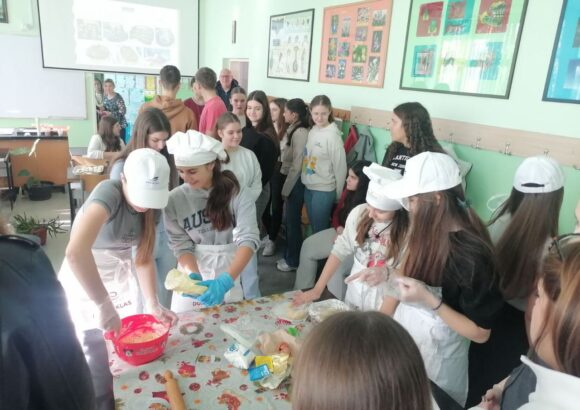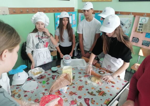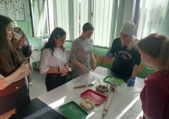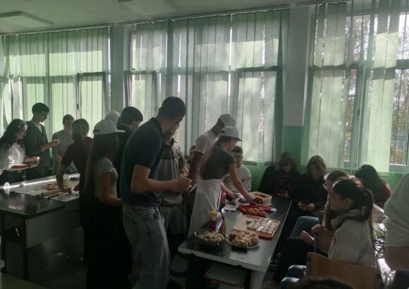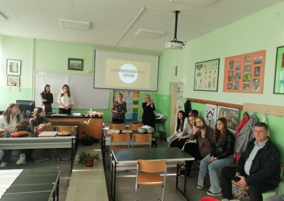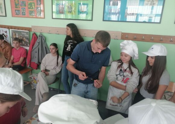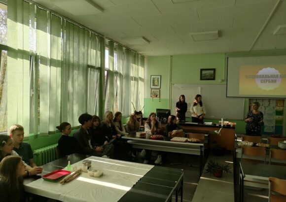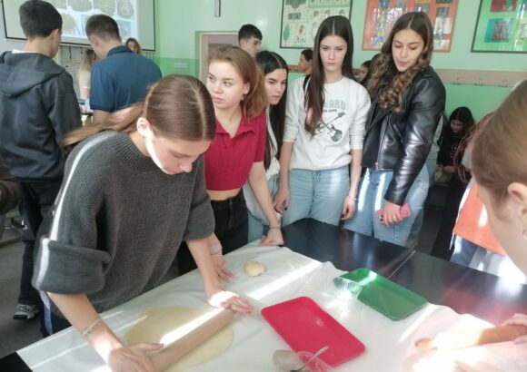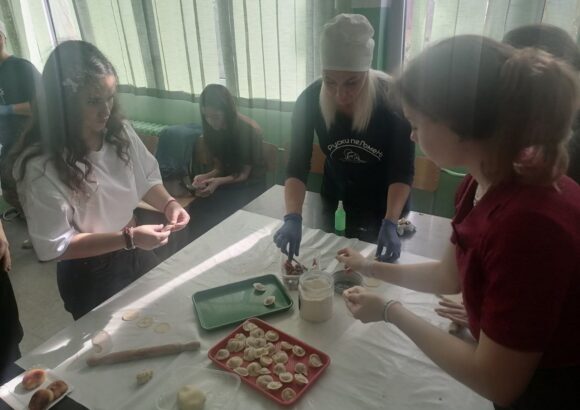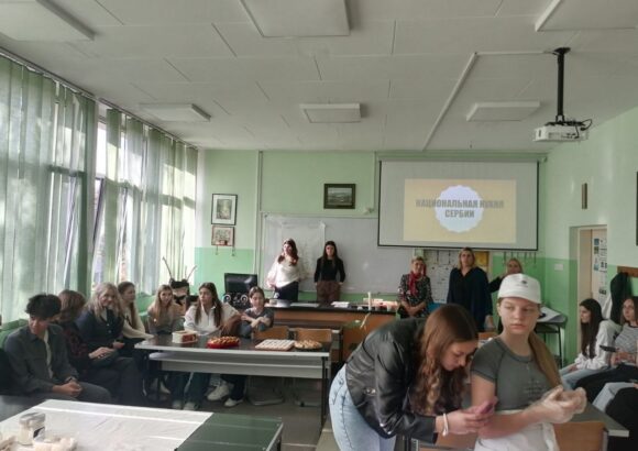На изузетно занимљивој радионици, ученике је поздравила у име домаћина професор руског језика Оливера Војиновић, а затим је одржана кратка презентација о традиционалној храни и јелима српске кухиње. Потом се прешло на практични део – припрему јела. Ученици су кроз међусобну сарадњу, помоћ и размену искуства спремали пељмење, као типично јело руске кухиње, а затим су припремали ванилице – слатко јело српске кухиње.
