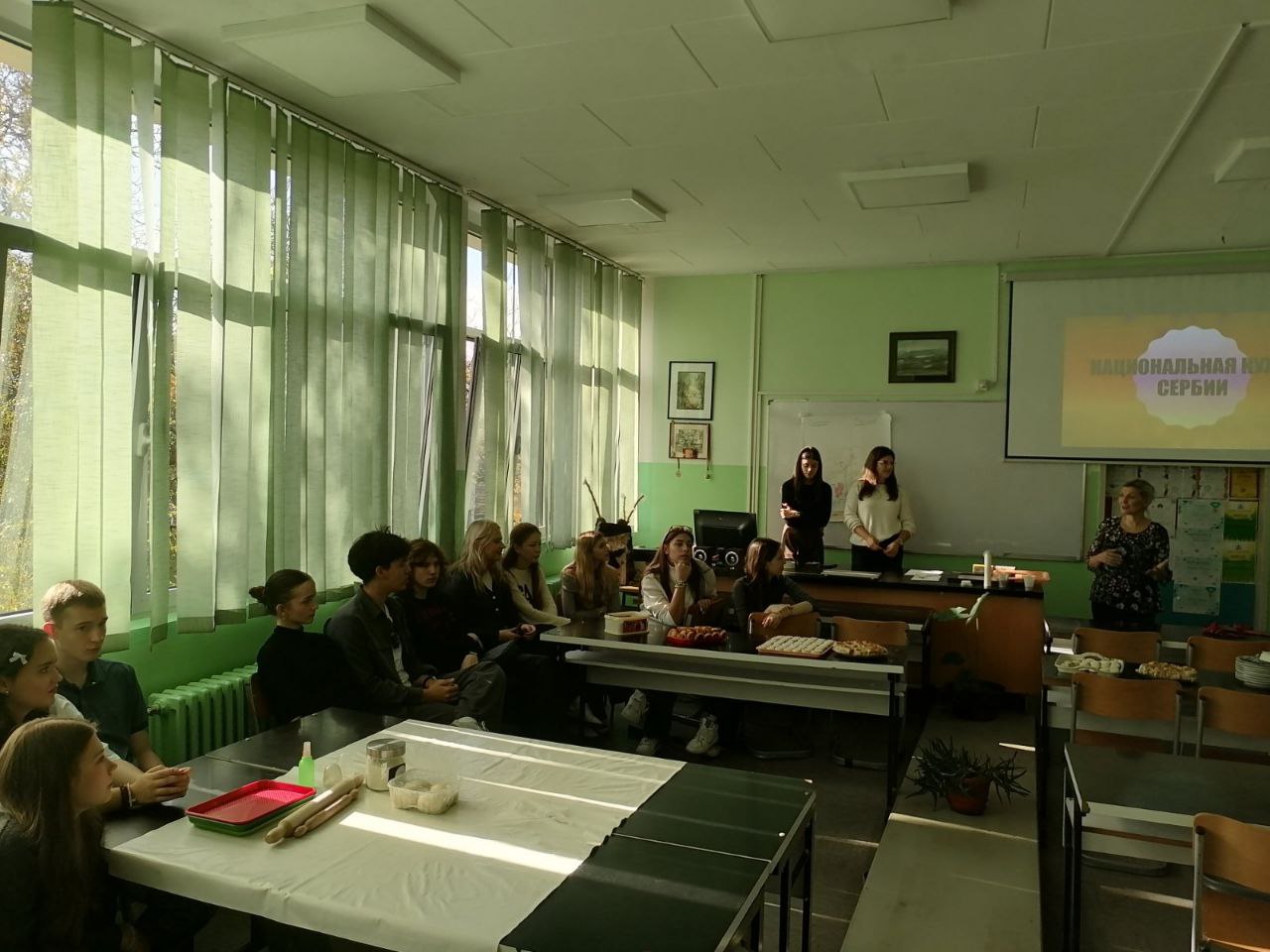 Ученици наше школе, заједно са ученицима из билингвалног одељења Алексиначке гимназије и ученицима који уче српски језик из руског града Нојабрска, који су у радној посети Алексинцу, одржали су данас заједничку радионицу на тему српске и руске кухиње. Помоћ при реализацији радионице пружили су и родитељи ученика наше школе, Марија и Јулија, а који се баве израдом специјалитета руске кухиње.